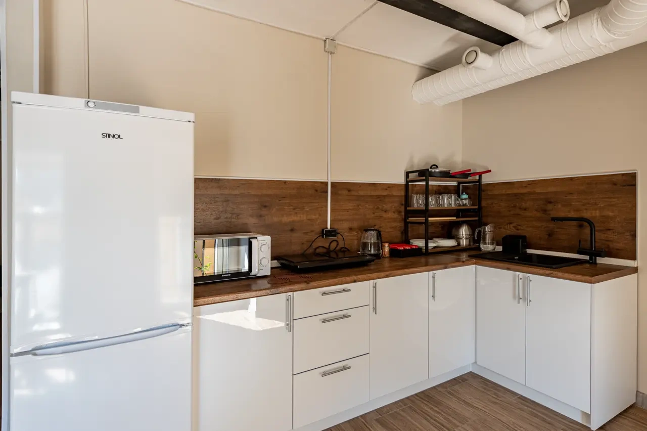 Barch rooms. Отдельный уютный двухместный номер с двуспальной кроватью. В номере есть окно, тумба, крючки для одежды. В общей зоне имеются кухня и санузлы с душевыми кабинами., стиральная машина. Интернет на всей территории отеля.