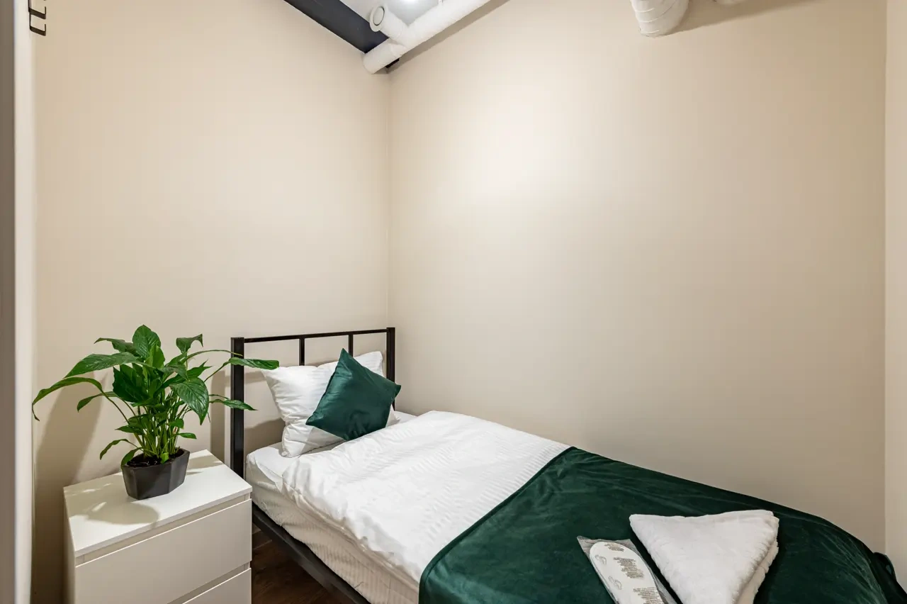 Barch rooms. Номер на одного человека с окном. Небольшой уютный номер для одного гостя включает в себя: место для хранения багажа, тумбочку для мелочей, розетки, белоснежную мягкую постель, комплект полотенец.