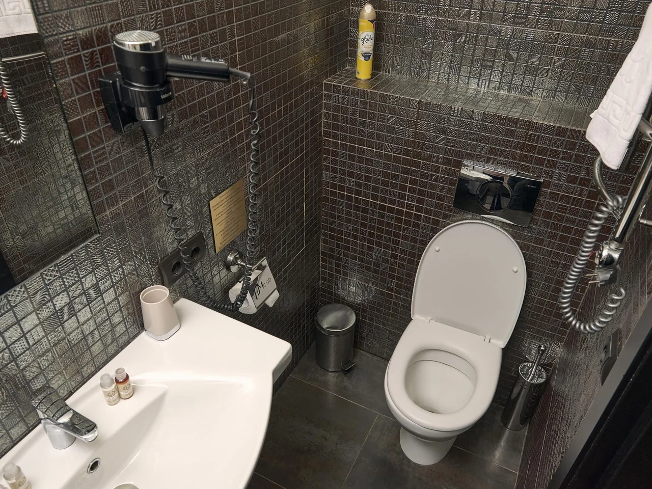 Номер с кондиционером и телевизором с плоским экраном. В ванной комнате установлен душ. Гостям предоставляются тапочки, фен и бесплатные туалетно-косметические принадлежности.