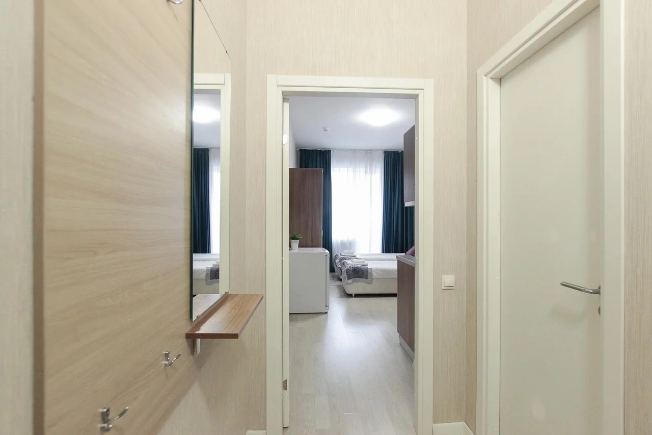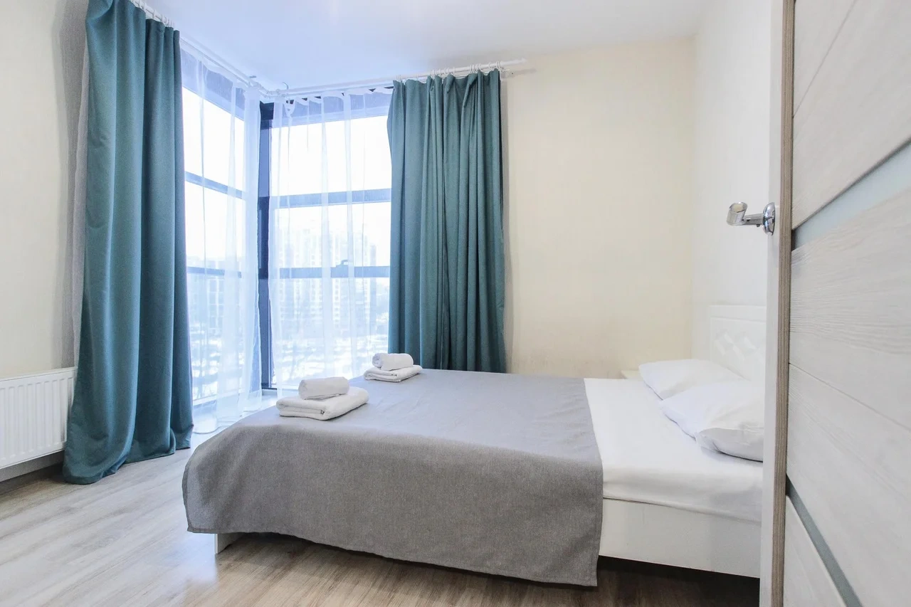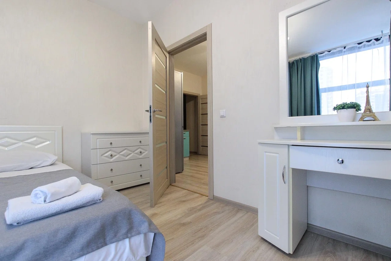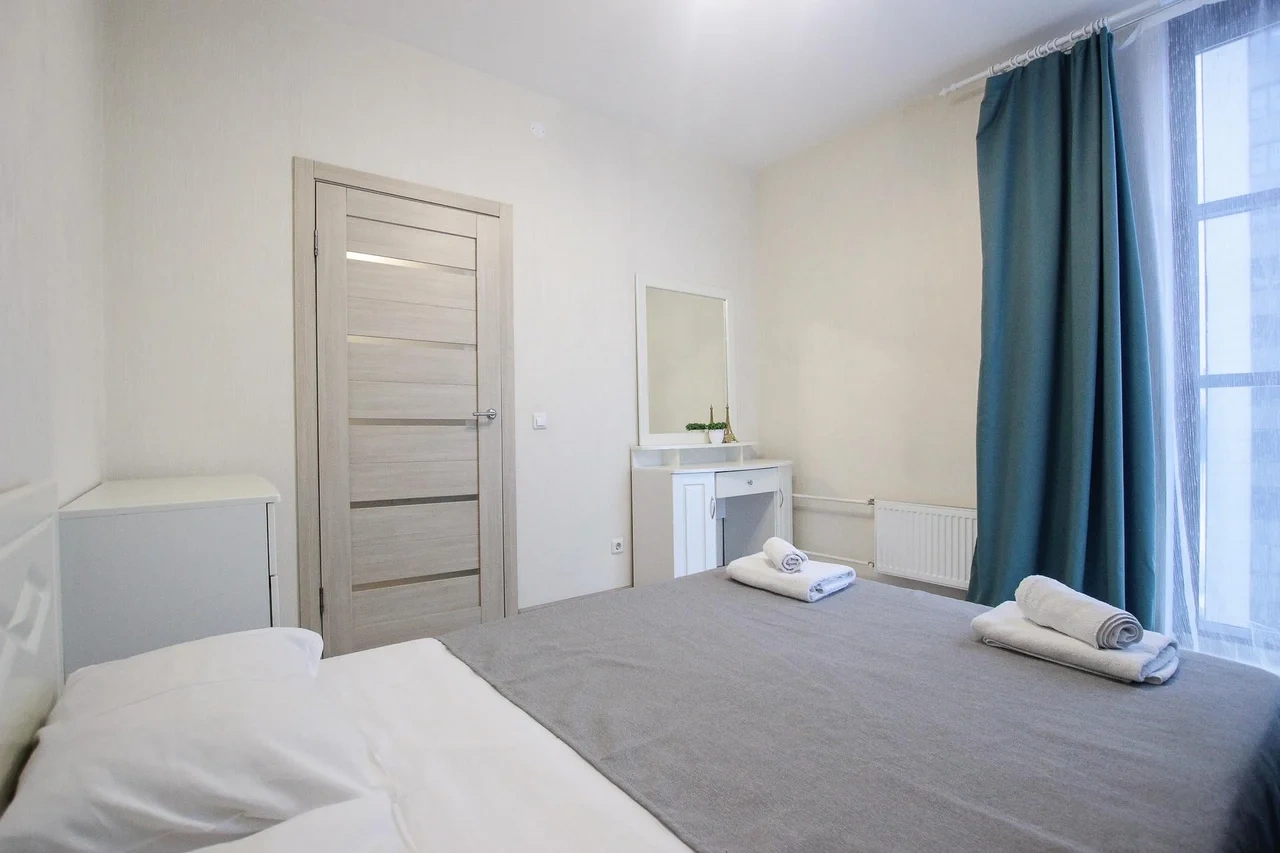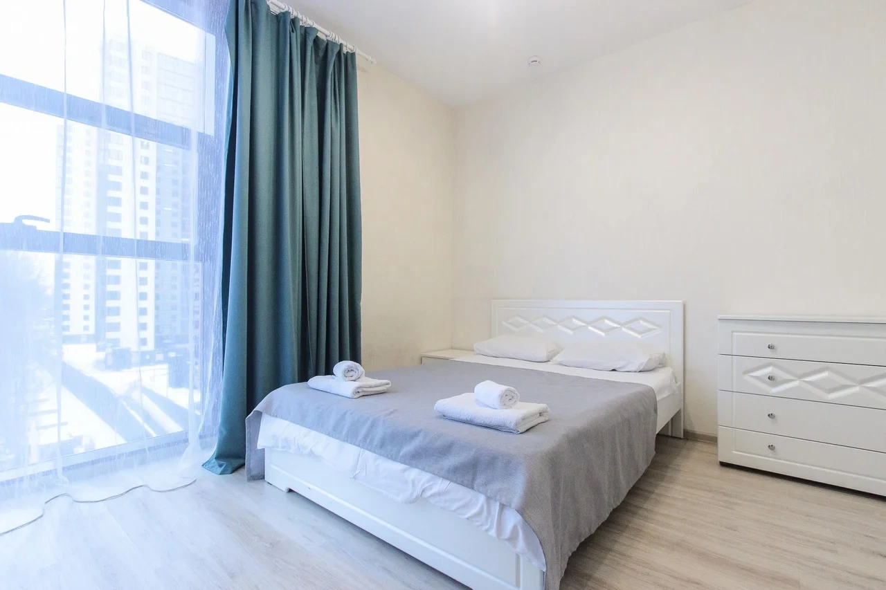 предлагает комфортабельный, современный двухкомнатный номер- уютное место для Вашего отдыха . В квартире есть все необходимое для комфортного проживания: — кровать с ортопедическим матрасом; — разборный диван; — постельное белье и полотенца; — гигиенические принадлежности, косметические средства и тапочки; — холодильник, электрическая плита, электрочайник, микроволновая печь; — водонагреватель; — телевизор; — кондиционер; — стиральная машина; — утюг с гладильной доской, фен, сушилка для белья; — электроплита; — посуда, моющие средства; — чай, кофе, сахар; — скоростной Wi-Fi. Комплекс с развитой и комфортной инфраструктурой: имеется все необходимое для комфортного и безопасного проживания. Круглосуточные магазины, пешеходные зоны для отдыха и прогулок (оборудованные фонарями и скамейками), аптеки, кафе, рестораны и кальянные. Рядом с домом есть места для парковки авто, а при необходимости, на нулевом этаже, расположена охраняемая подземная платная парковка. Финишная уборка включена в стоимость (при длительном проживании обязательна еженедельная уборка с заменой белья). Будем ждать вас в гости! Вам понравится.