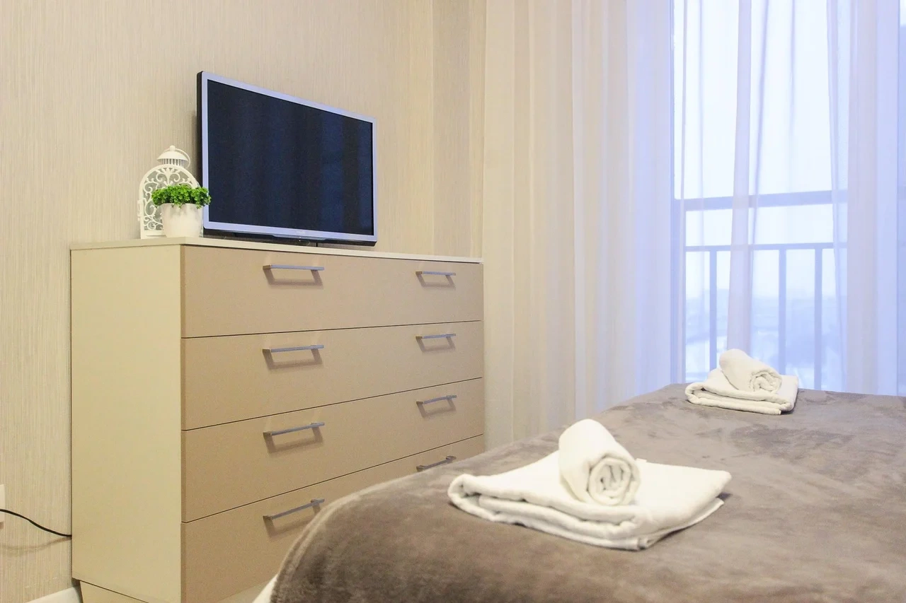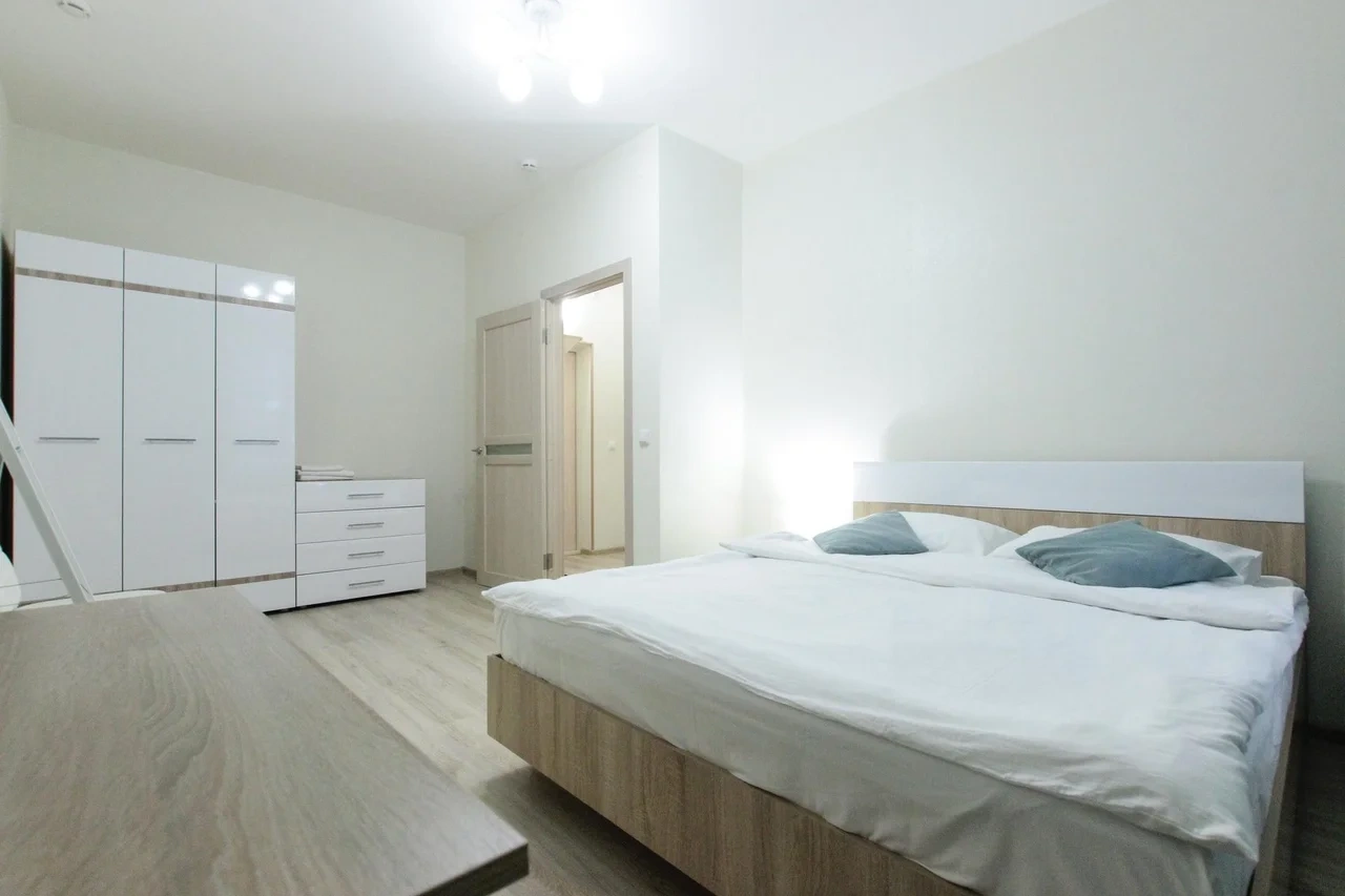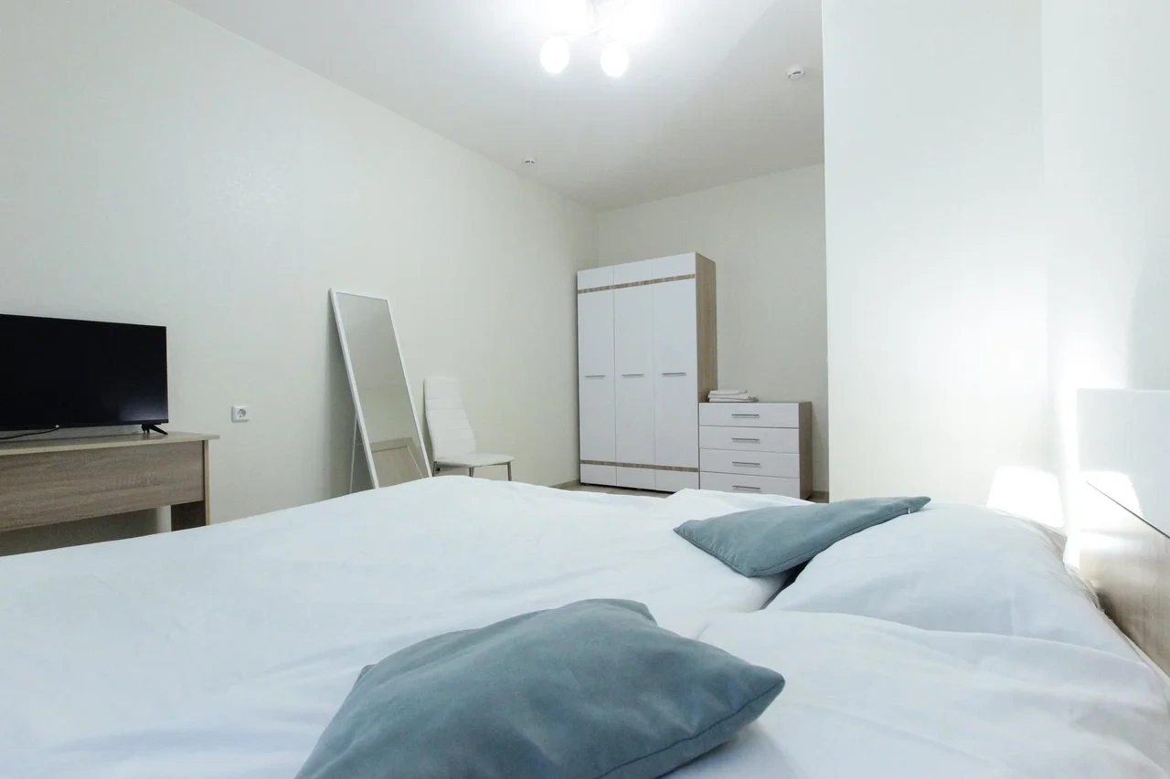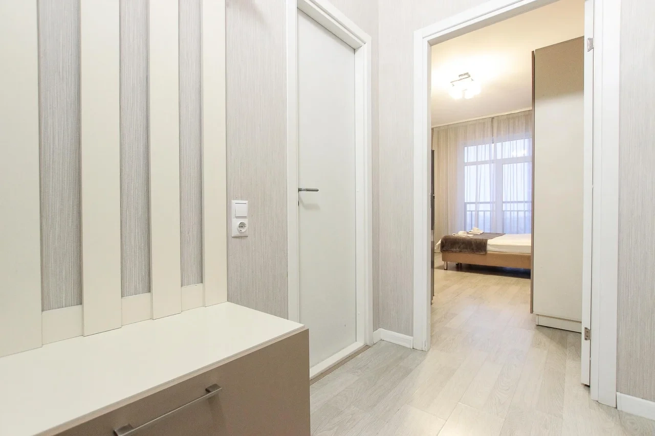 предлагает комфортабельный, современный двухкомнатный номер- уютное место для Вашего отдыха . В квартире есть все необходимое для комфортного проживания: — кровать с ортопедическим матрасом; — разборный диван; — постельное белье и полотенца; — гигиенические принадлежности, косметические средства и тапочки; — холодильник, электрическая плита, электрочайник, микроволновая печь; — водонагреватель; — телевизор; — кондиционер; — стиральная машина; — утюг с гладильной доской, фен, сушилка для белья; — электроплита; — посуда, моющие средства; — чай, кофе, сахар; — скоростной Wi-Fi. Комплекс с развитой и комфортной инфраструктурой: имеется все необходимое для комфортного и безопасного проживания. Круглосуточные магазины, пешеходные зоны для отдыха и прогулок (оборудованные фонарями и скамейками), аптеки, кафе, рестораны и кальянные. Рядом с домом есть места для парковки авто, а при необходимости, на нулевом этаже, расположена охраняемая подземная платная парковка. Финишная уборка включена в стоимость (при длительном проживании обязательна еженедельная уборка с заменой белья). Будем ждать вас в гости! Вам понравится.