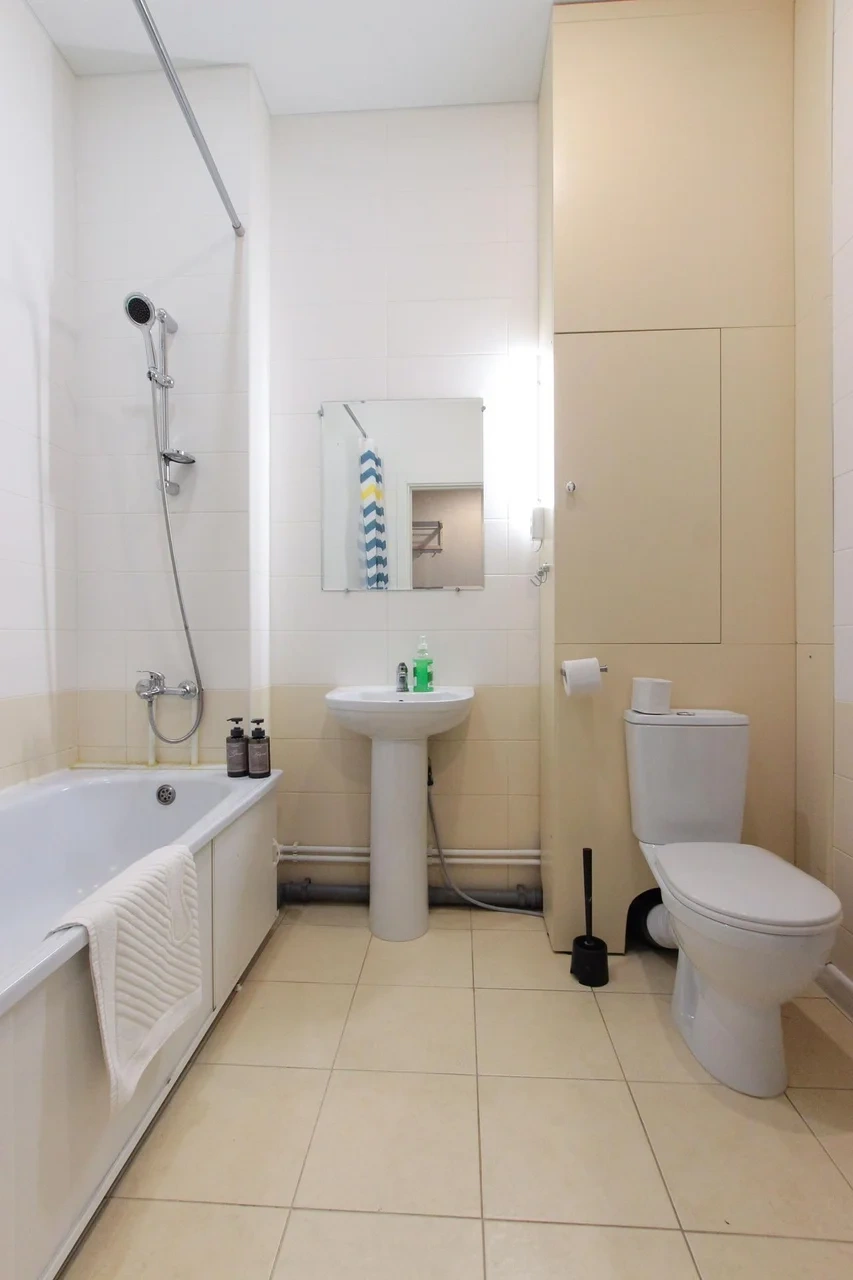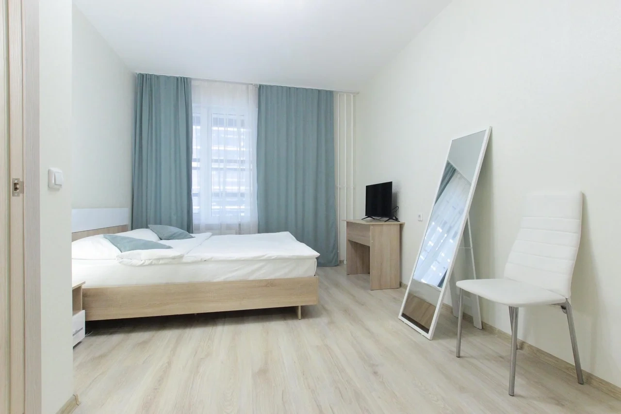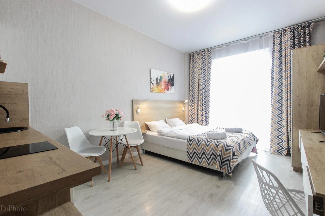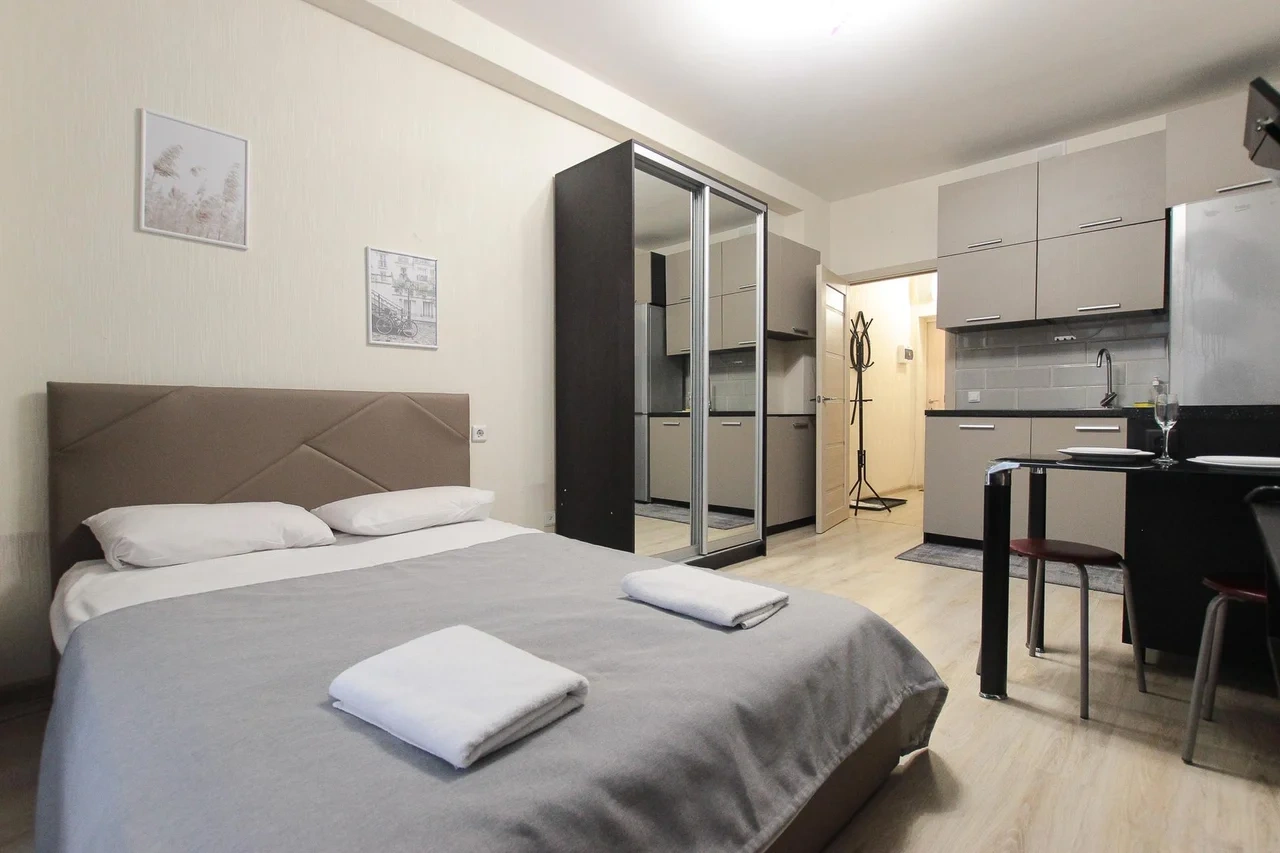 предлагает комфортабельную, современную студию - уютное место для Вашего отдыха . В квартире есть все необходимое для комфортного проживания: — кровать с ортопедическим матрасом; — постельное белье и полотенца; — гигиенические принадлежности, косметические средства и тапочки; — холодильник, электрическая плита, электрочайник, микроволновая печь; — водонагреватель; — телевизор; — кондиционер; — стиральная машина; — утюг с гладильной доской, фен, сушилка для белья; — электроплита; — посуда, моющие средства; — чай, кофе, сахар; — скоростной Wi-Fi. Комплекс с развитой и комфортной инфраструктурой: имеется все необходимое для комфортного и безопасного проживания. Круглосуточные магазины, пешеходные зоны для отдыха и прогулок (оборудованные фонарями и скамейками), аптеки, кафе, рестораны и кальянные. Рядом с домом есть места для парковки авто, а при необходимости, на нулевом этаже, расположена охраняемая подземная платная парковка. Финишная уборка включена в стоимость (при длительном проживании обязательна еженедельная уборка с заменой белья). Будем ждать вас в гости! Вам понравится.