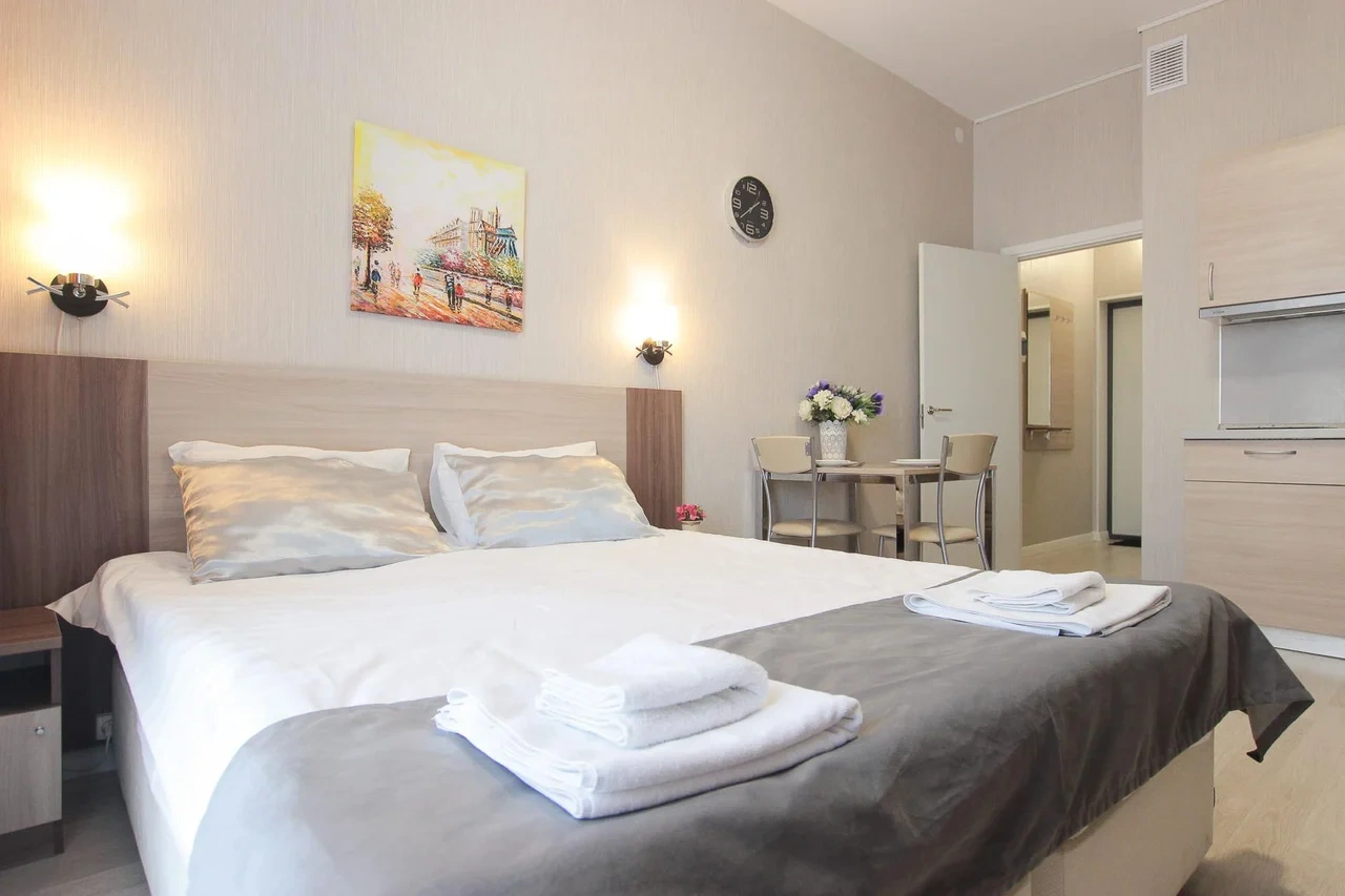 Апартаменты находятся в Санкт-Петербурге, рядом с благоустроенным и просторным Пулковским парком. Интерьер апартаментов выполнен в современном стиле, они обустроены мебелью с комфортом для приятного отдыха гостей. В числе удобств имеется Wi-fi, ЖК-телевизор, собственная ванная комната, набор постельного белья. Одним из преимуществ является наличие панорамного балкона, откуда видно город. Кухня оборудована бытовой техникой и посудой. Перекусить или попробовать новые блюда гости смогут в ресторане «Пулково Парк» или «Лофт». Апарт-отель «Luna Pulkovo Apart» расположен в Московском районе Санкт-Петербурга. Представленные 25 номеров в светлых тонах, с комфортной мягкой мебелью имеют все необходимые удобства для уютного проживания или ночлега, в том числе и собственную ванную комнату c комплектом полотенец и тапочек, средствами личной гигиены. На кухне есть холодильник, микроволновая печь. В этом доме есть магазин «Магнит», «Пятёрочка», «Fix Price». Дом располагается в парковой зоне, где гости могут заняться пешей ходьбой, бегом. Ближайшее метро «Звёздная» - 1,23 км. Расстояние до жд вокзала — 8,6 км, до аэропорта — 3,1 км. В номере: спальня, кухня, двуспальная кровать, вешалка, центральное отопление, гладильные принадлежности, розетка возле кровати, деревянный или паркетный пол, услуга «звонок-будильник», неперьевая подушка, корзины для мусора, белье, гипоаллергенная подушка, гипоаллергенный, телевизор, кабельное телевидение, посуда, микроволновая печь, электрочайник, газовая плита, кофемашина, холодильник, кухня, бутилированная вода, обеденный уголок, бокалы для вина, высокий стул для ребенка, рабочий стол, гардероб, детские кроватки, вентилятор, утюг, сушилка для одежды, балкон, вид на город, красивый вид, вид во внутренний дворик, вид на озеро, вид на сад, антибактериальный гель для рук, вход по ключу, датчик дыма. В ванной: туалет, ванна, душ, средства личной гигиены, тапочки, фен, стиральная машина, набор полотенец, шампунь, чистящие средства, туалетная бумага, мыло, зубная щетка, высокий туалет, низкая раковина. Стильные апартаменты выполнены в светлых и спокойных тонах и оснащены всем необходимым для комфортного проживания. Среди удобств плазменный телевизор, бесплатный Wi-Fi и собственная ванная комната. Современная кухня оборудована индукционной плитой, холодильником и микроволновой печью. В распоряжении гостей удобная обеденная зона и набор посуды. В ближайших зданиях находятся разнообразные кафе и рестораны. В 300 метрах располагается «Пулковский парк», в 750 метрах - «Сквер Раисы Штрейс», а в 400 метрах - торговый центр. До железнодорожной станции «Предпортовая» - 3 километра, до аэропорта «Пулково» - 8 километров.