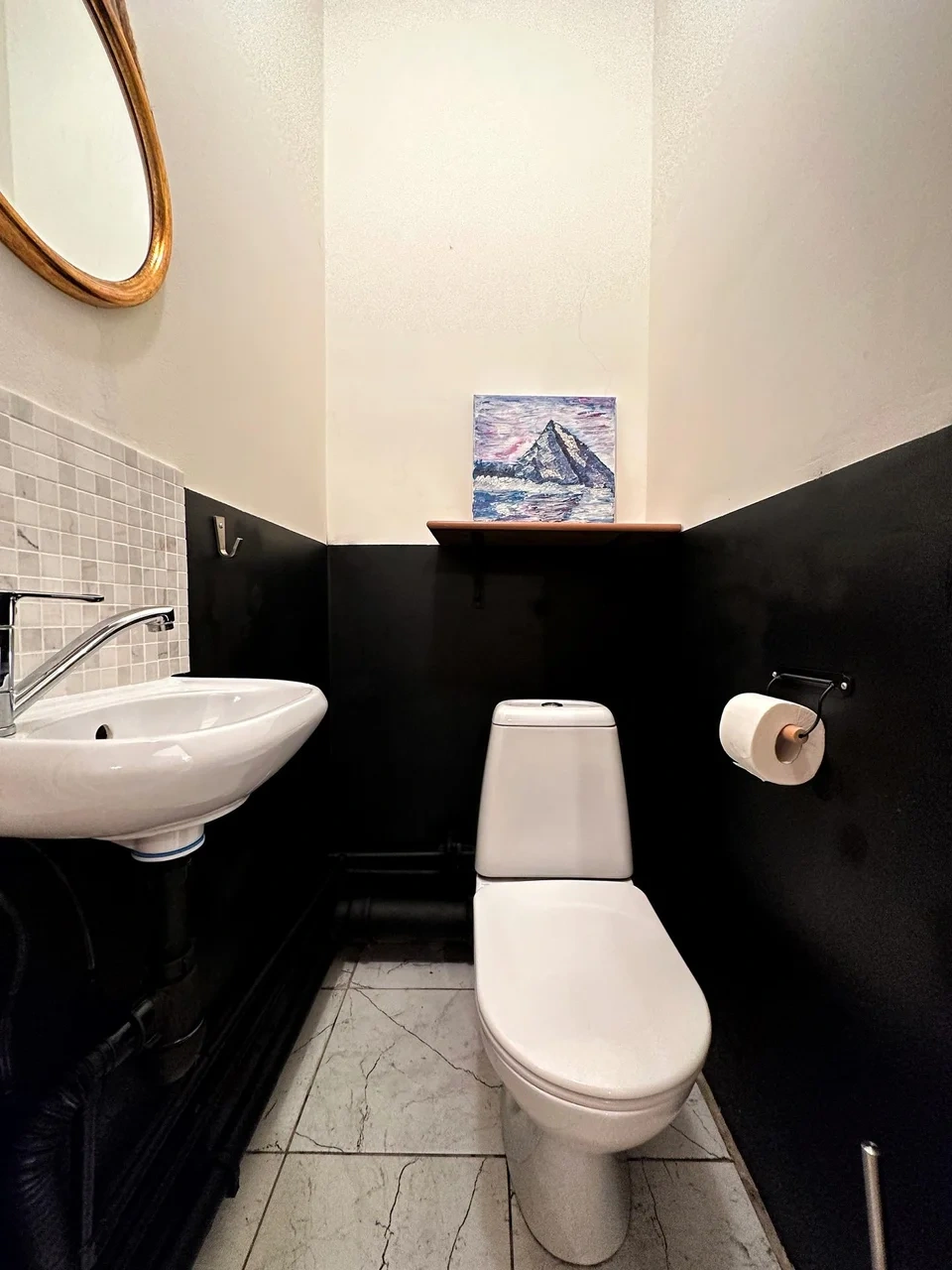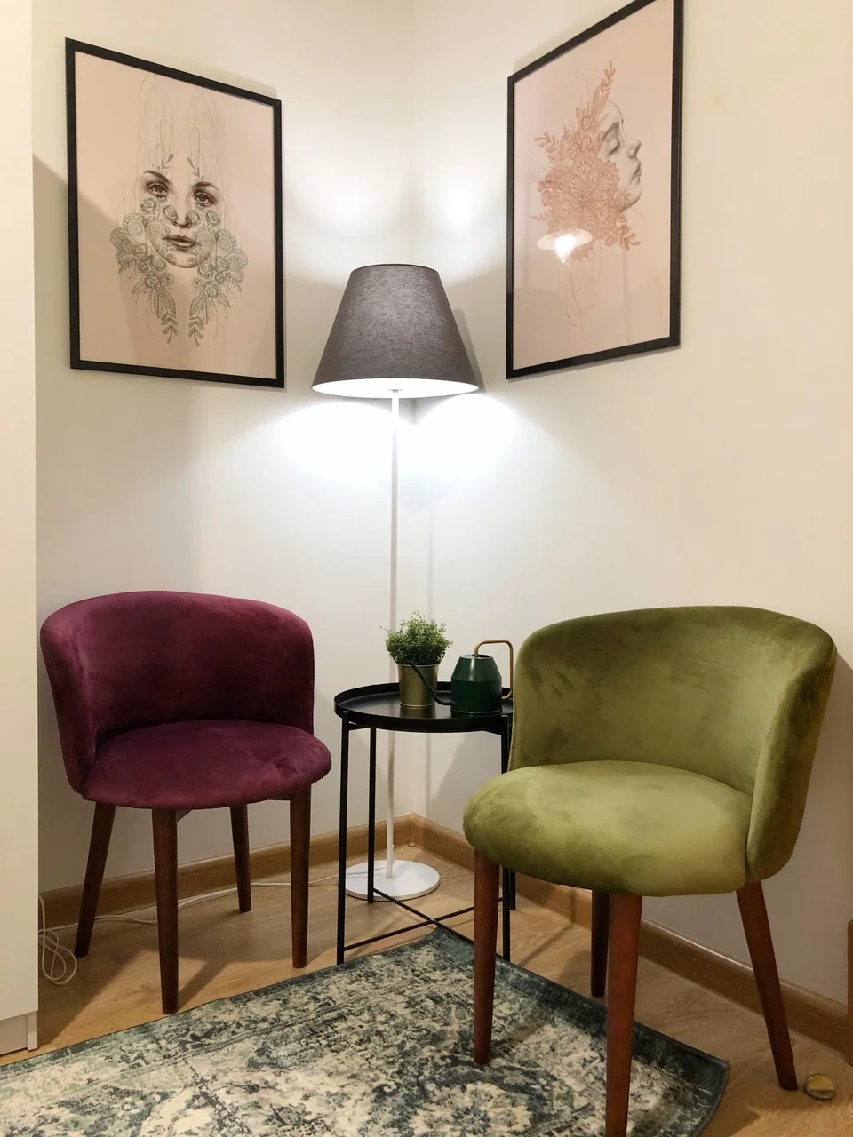 Просторный номер отличается воздушным дизайном и функциональностью. В номере есть 2 слипбокса, которые при желании превращаются в 1 большую кровать king-size. Также имеется кофейная зона, комод, шкаф, зеркало, полочки. Освещение включает: основной свет и торшер. Гостям предоставляется бесплатный WI-FI, постельное белье и полотенца. Душ и туалет в общем доступе.