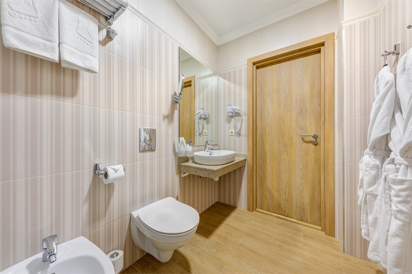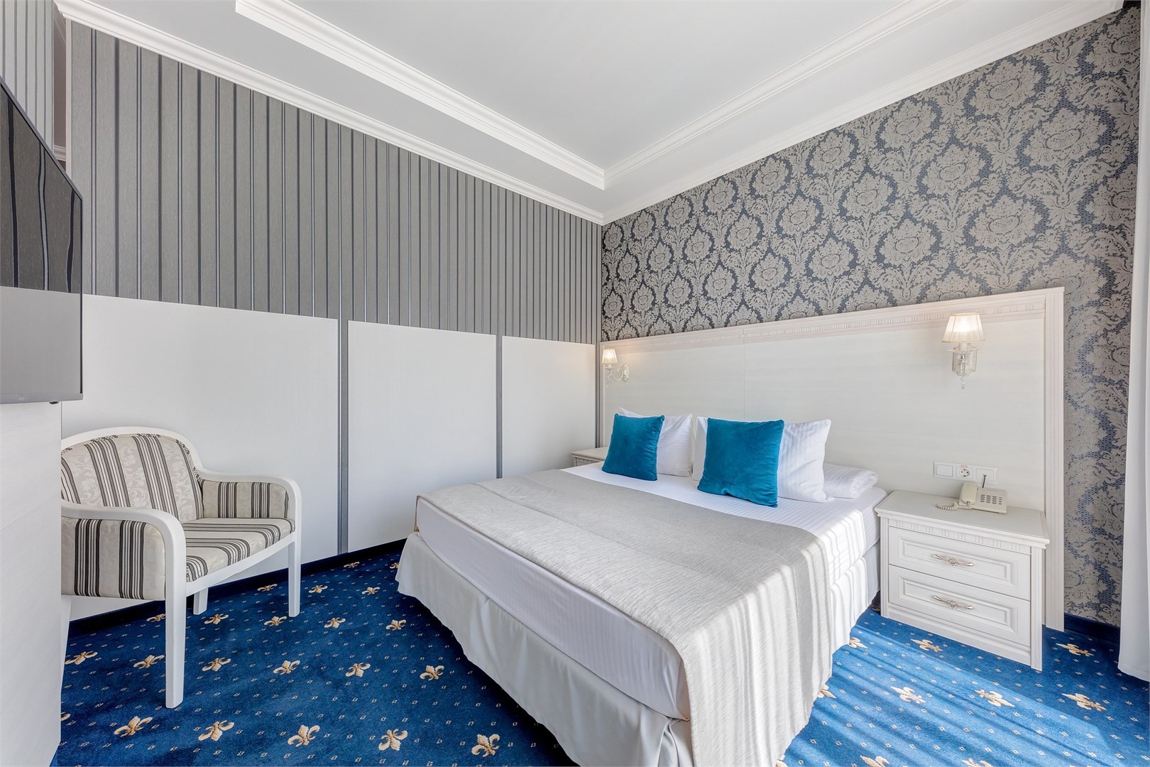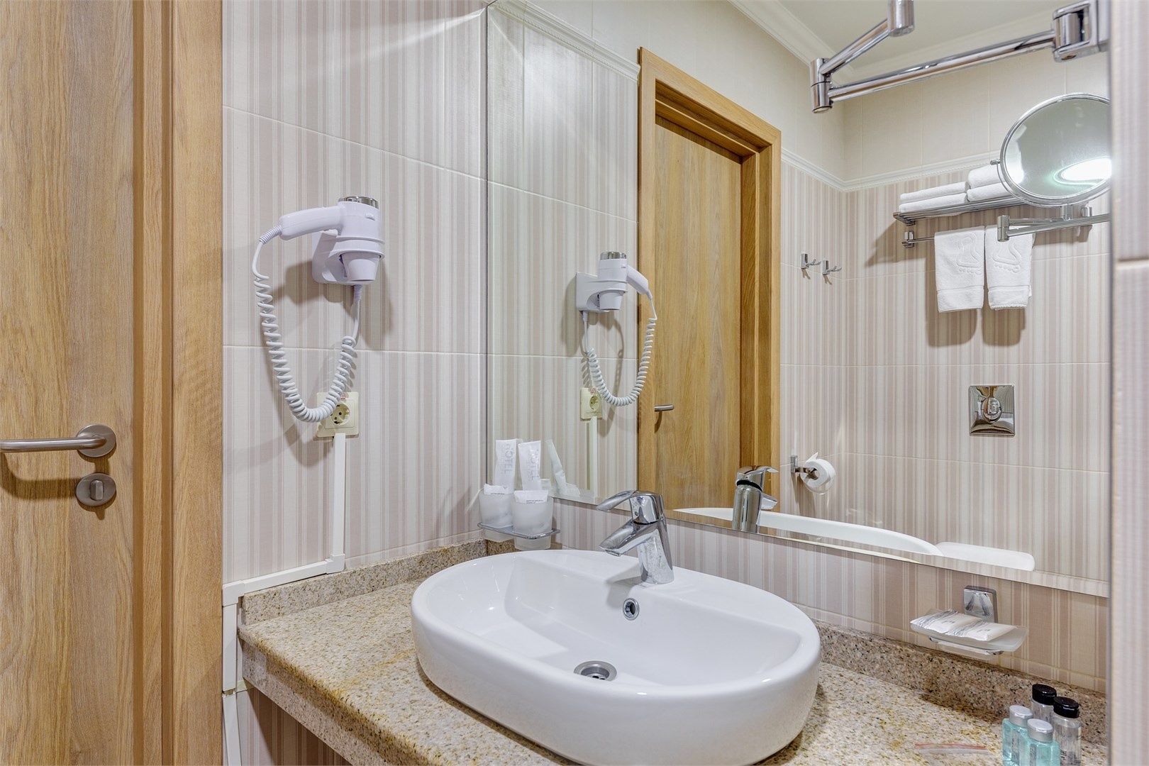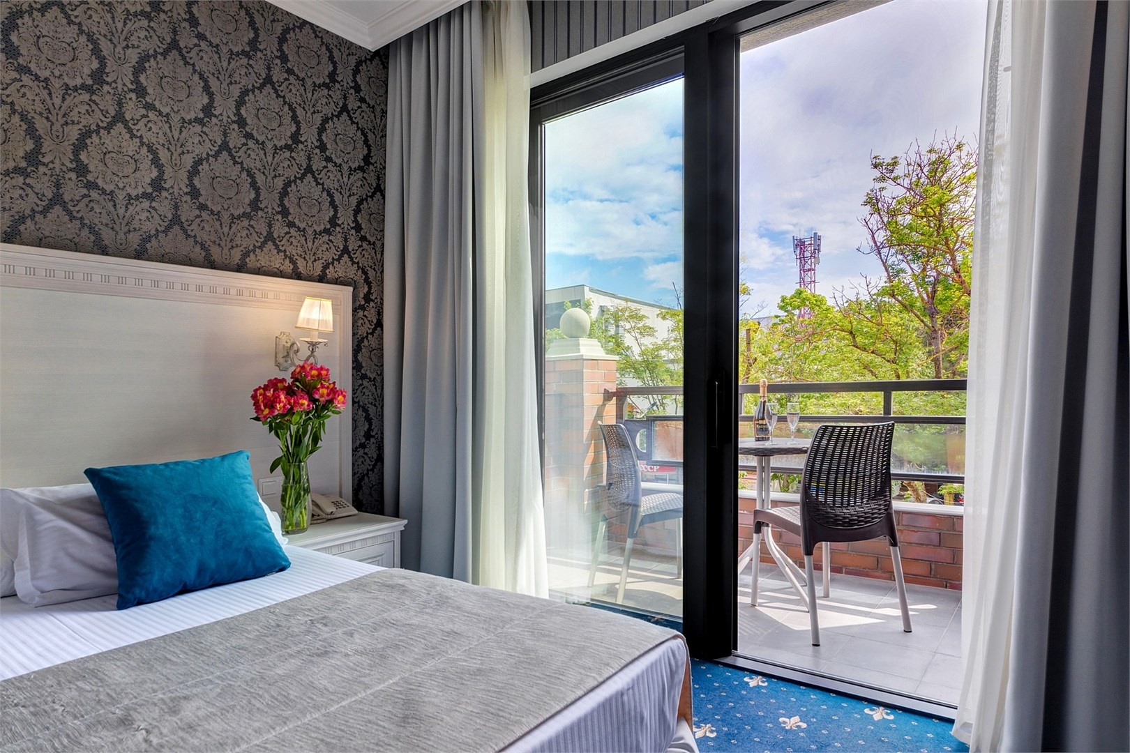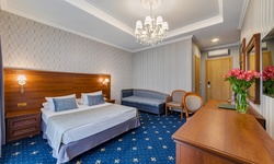 Новых постояльцев ожидают номера различных категорий, оснащенные кондиционером, спутниковым TV, мини-баром и телефоном. Оформлены в неповторимом европейском стиле, некоторые категории оснащены уютными балконами. Дополнительный комфорт обеспечен за счет наличия индивидуальных ванных комнат, в которых есть туалетно-косметические принадлежности. Кроме того, можно пользоваться феном.
