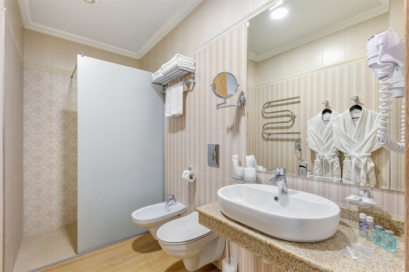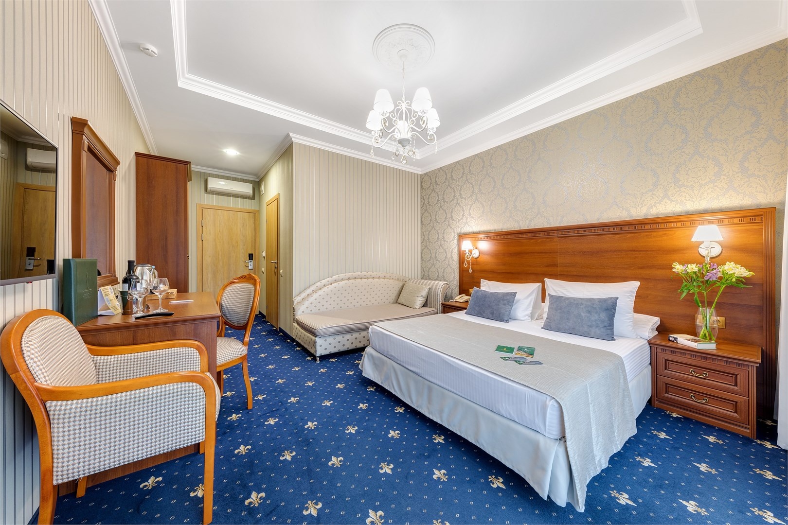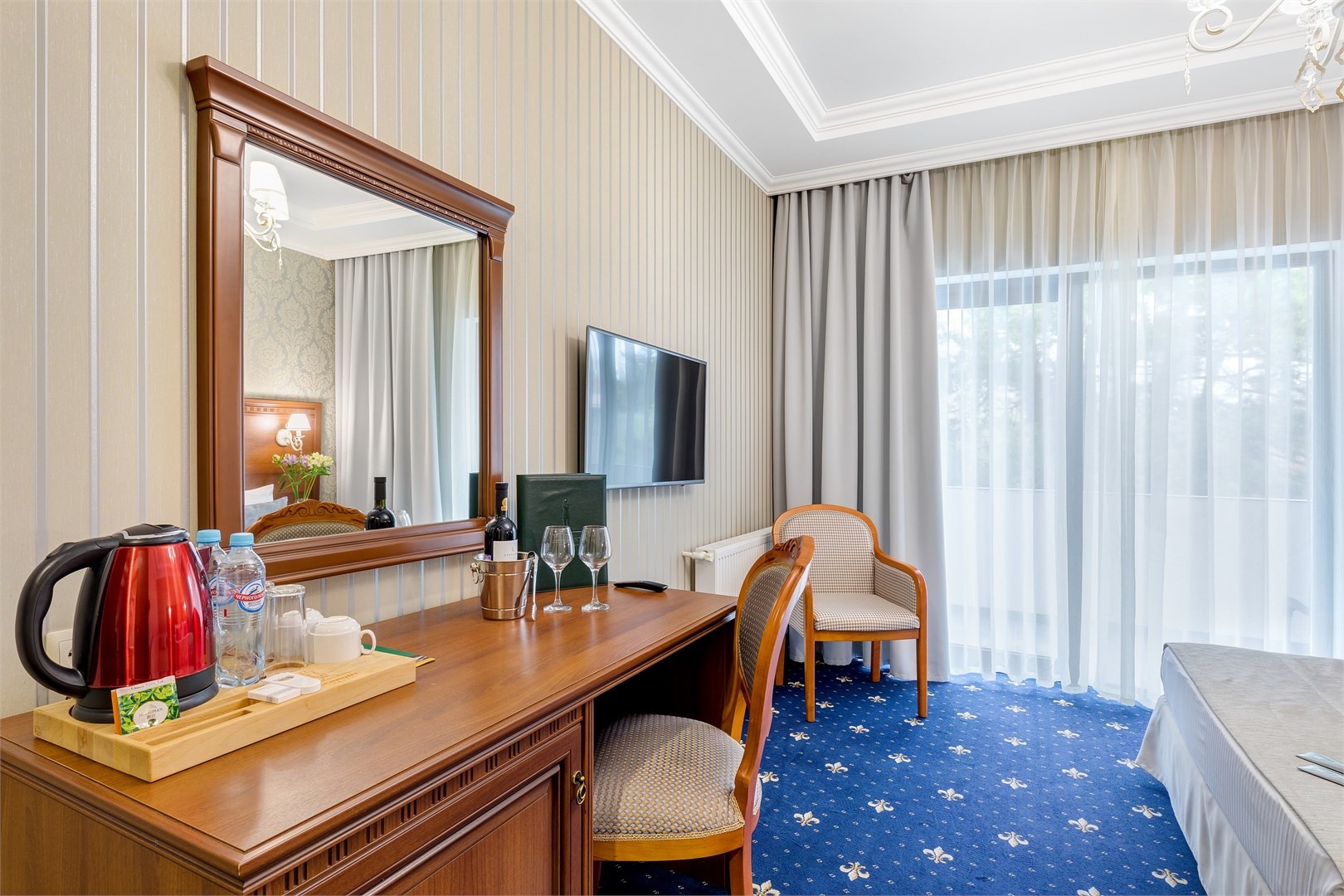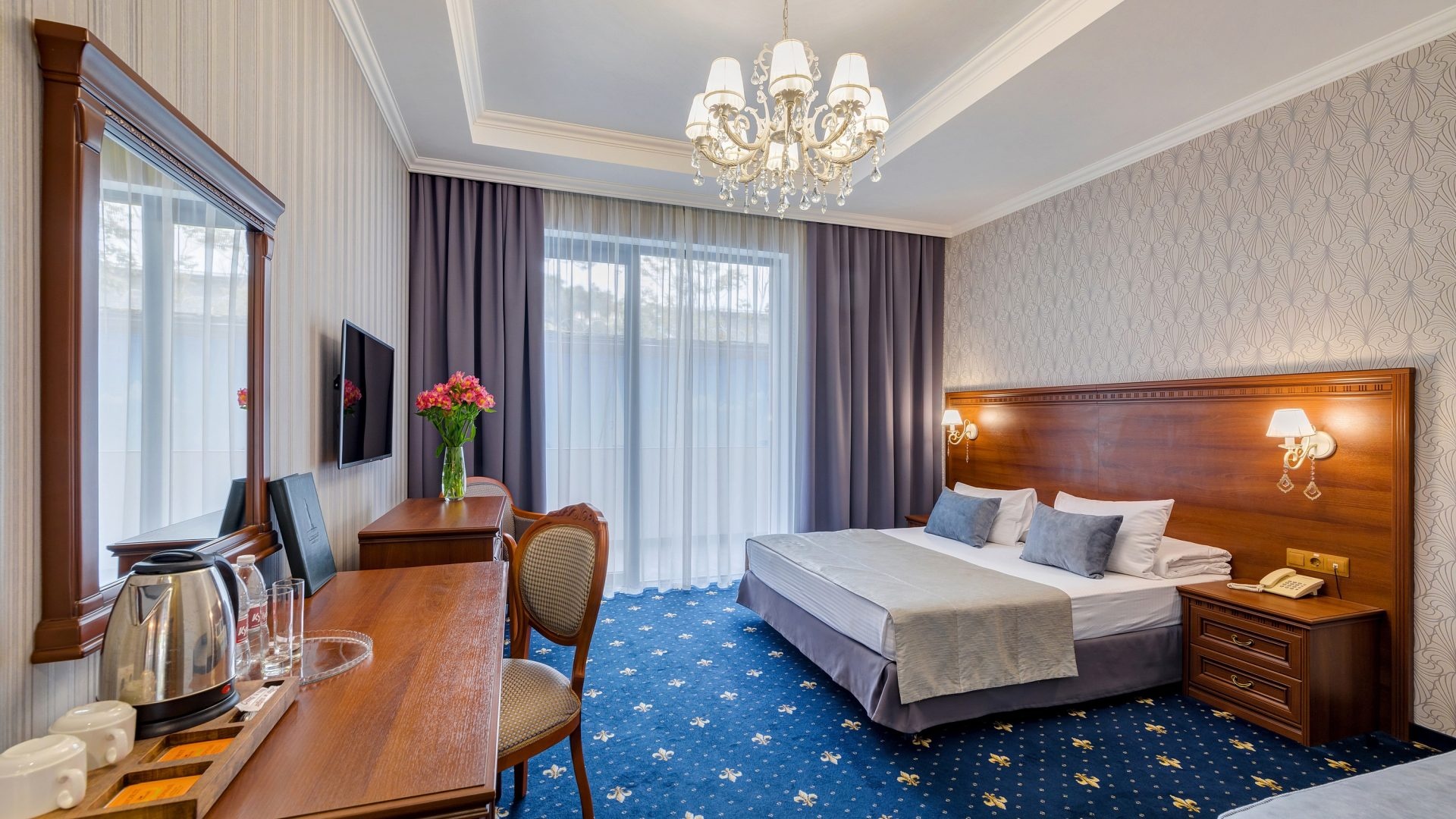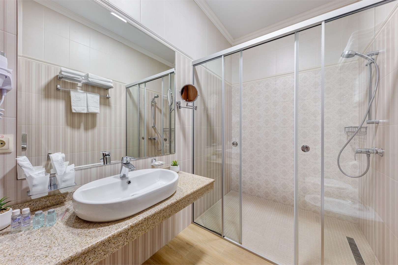 Новых постояльцев ожидают номера различных категорий, оснащенные кондиционером, спутниковым TV, мини-баром и телефоном. Оформлены в неповторимом европейском стиле, некоторые категории оснащены уютными балконами. Дополнительный комфорт обеспечен за счет наличия индивидуальных ванных комнат, в которых есть туалетно-косметические принадлежности. Кроме того, можно пользоваться феном.