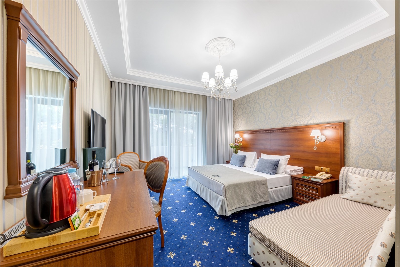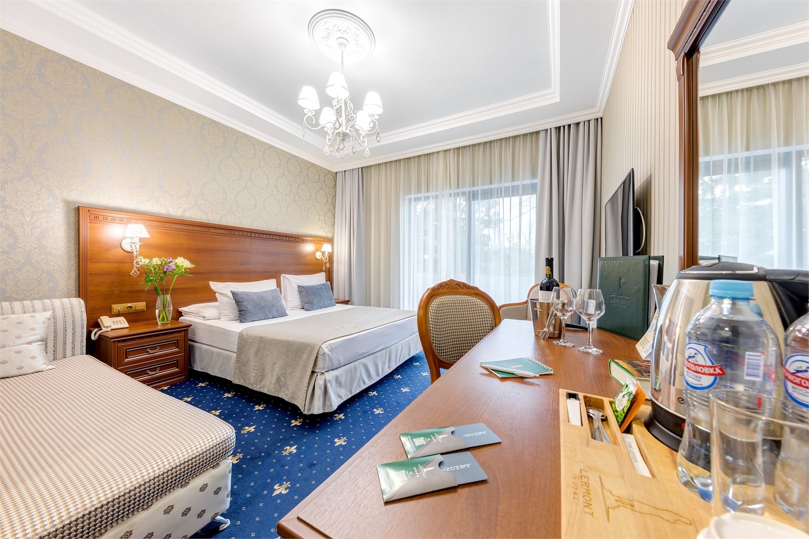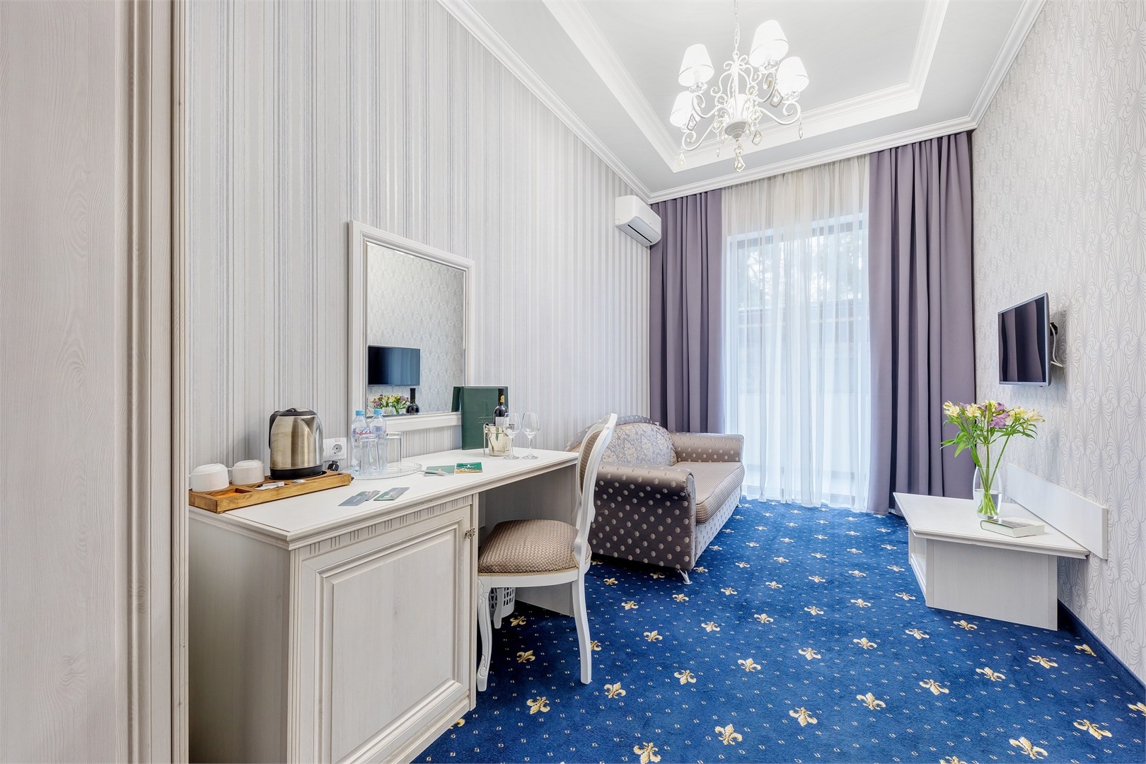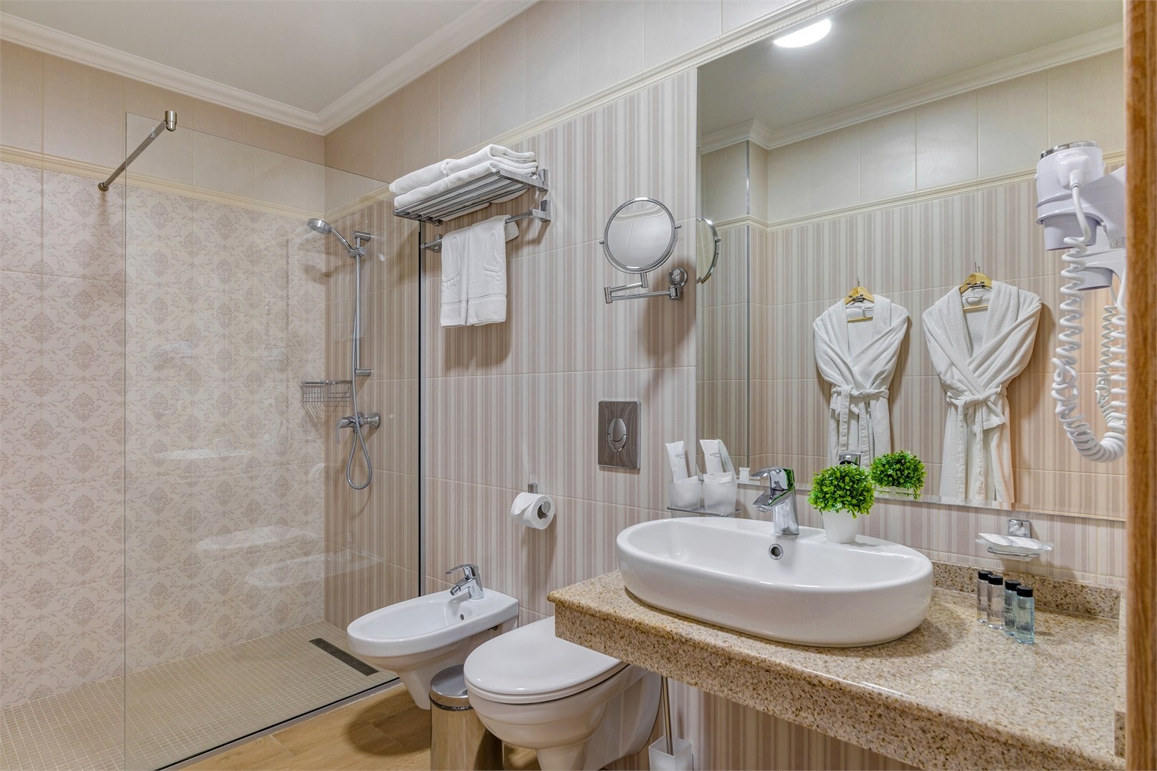 Новых постояльцев ожидают номера различных категорий, оснащенные кондиционером, спутниковым TV, мини-баром и телефоном. Оформлены в неповторимом европейском стиле, некоторые категории оснащены уютными балконами. Дополнительный комфорт обеспечен за счет наличия индивидуальных ванных комнат, в которых есть туалетно-косметические принадлежности. Кроме того, можно пользоваться феном.