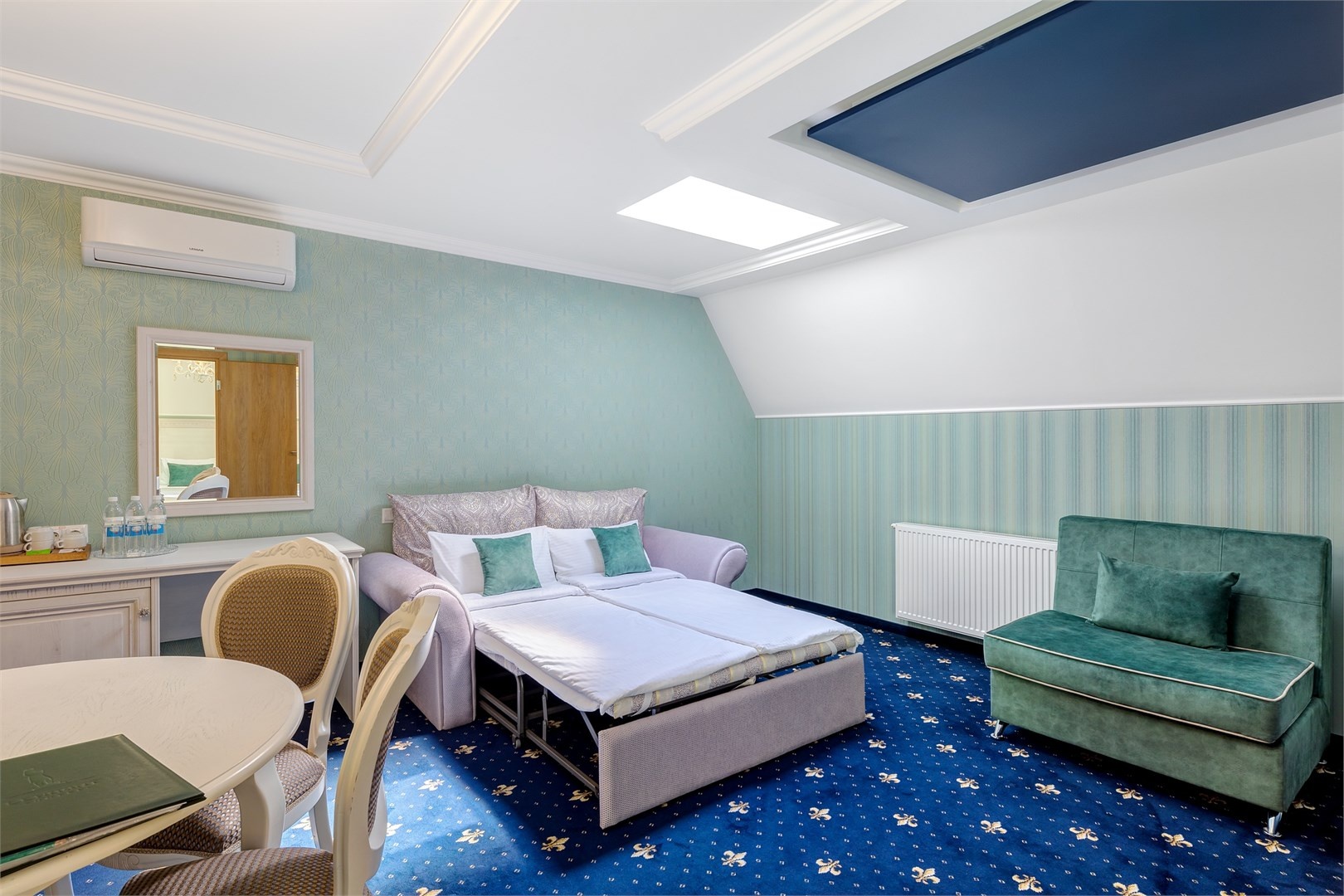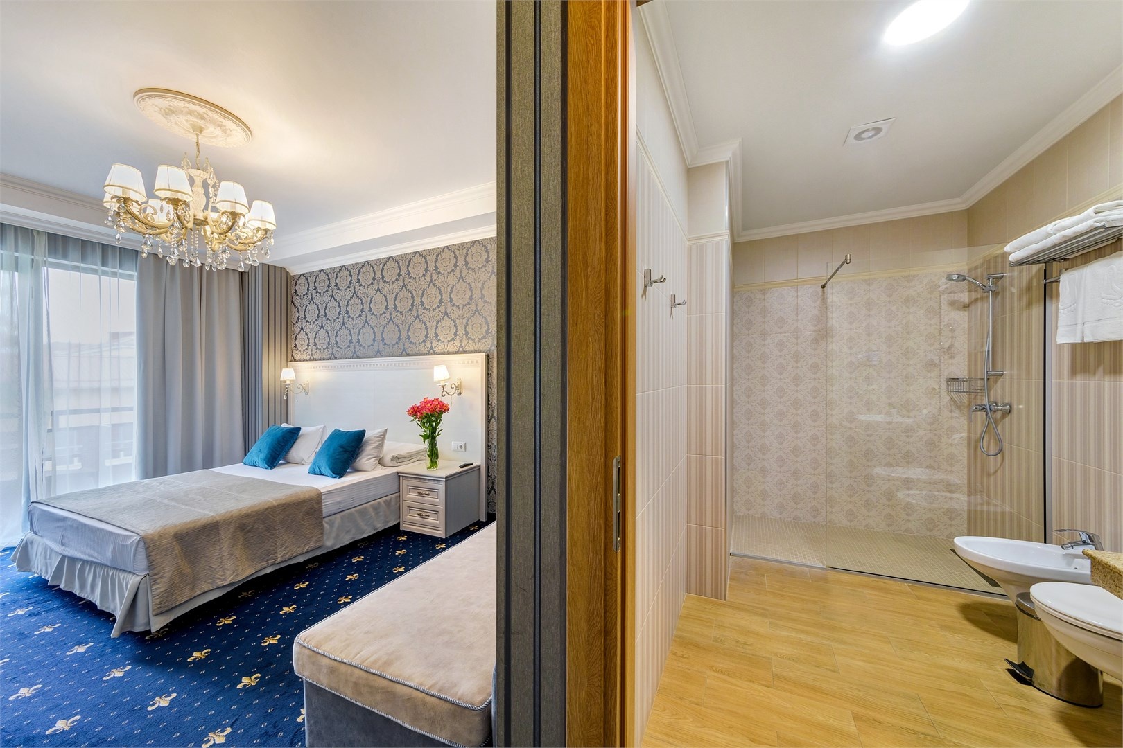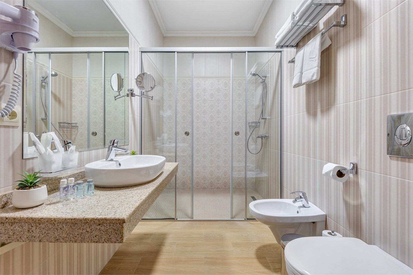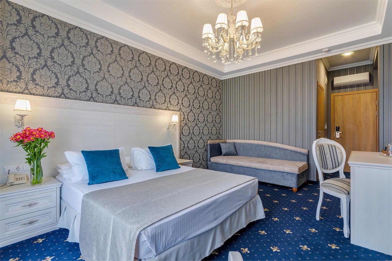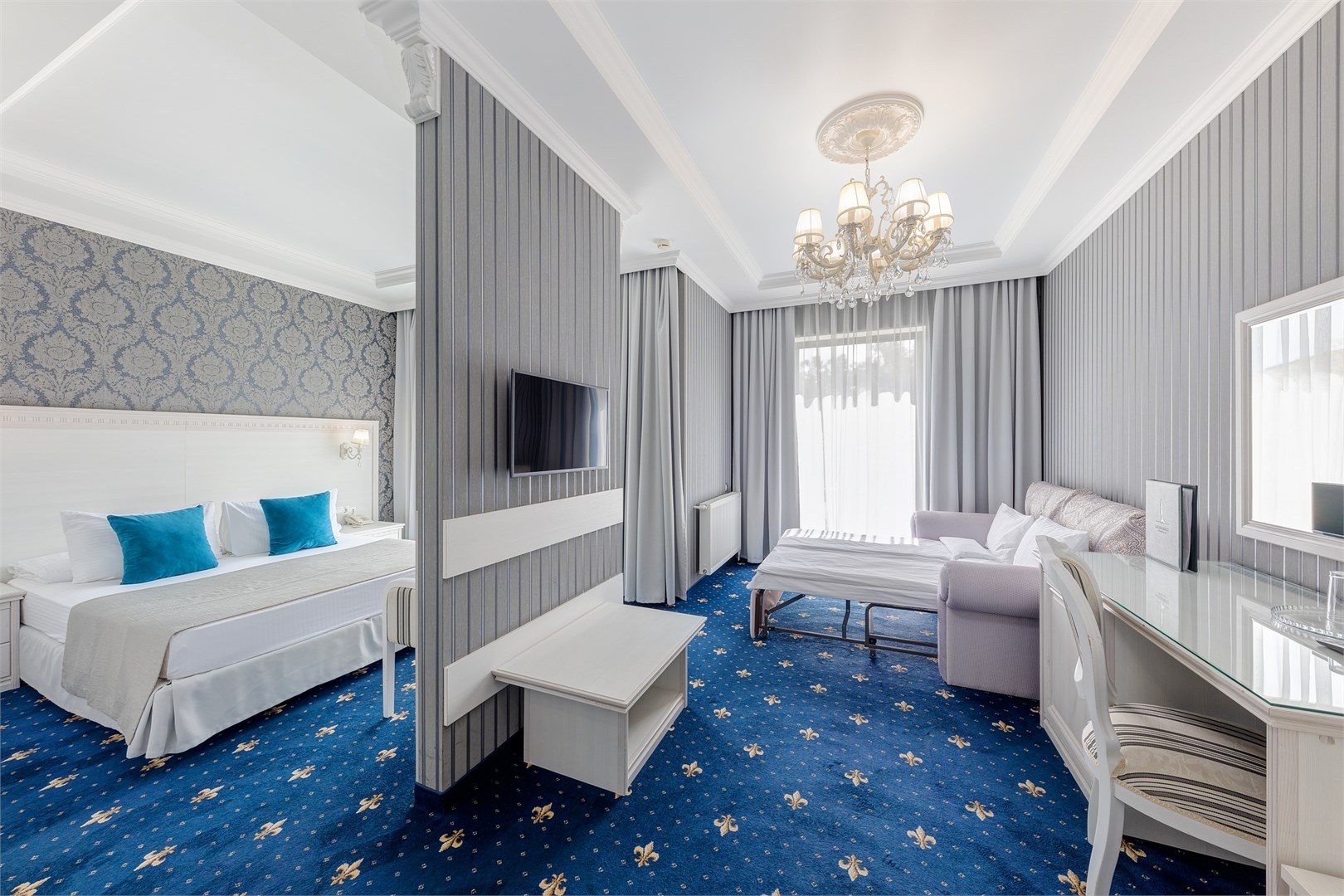 Новых постояльцев ожидают номера различных категорий, оснащенные кондиционером, спутниковым TV, мини-баром и телефоном. Оформлены в неповторимом европейском стиле, некоторые категории оснащены уютными балконами. Дополнительный комфорт обеспечен за счет наличия индивидуальных ванных комнат, в которых есть туалетно-косметические принадлежности. Кроме того, можно пользоваться феном.