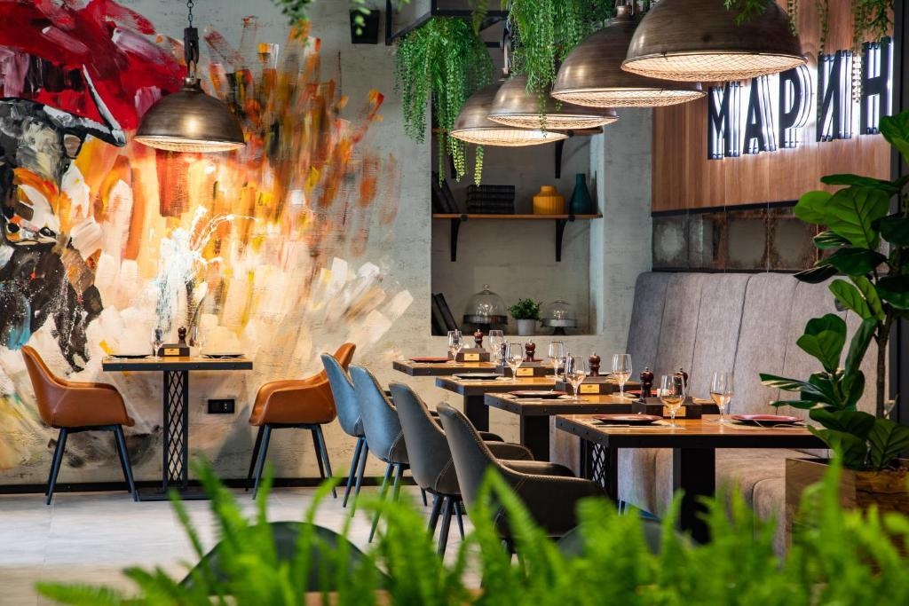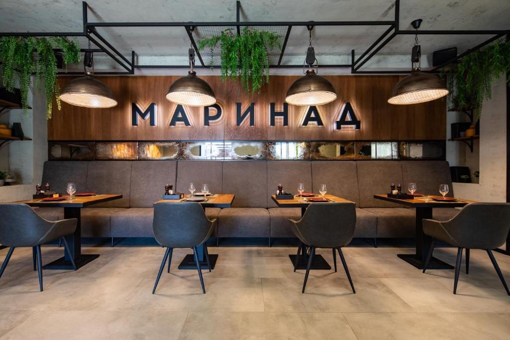 На первом этаже отеля расположился ресторан фьюжн-кухни "Маринад", в котором сервируются завтраки для гостей. Номерной фонд отеля насчитывает около 40 номеров. В здании отеля имеется панорамный лифт.
