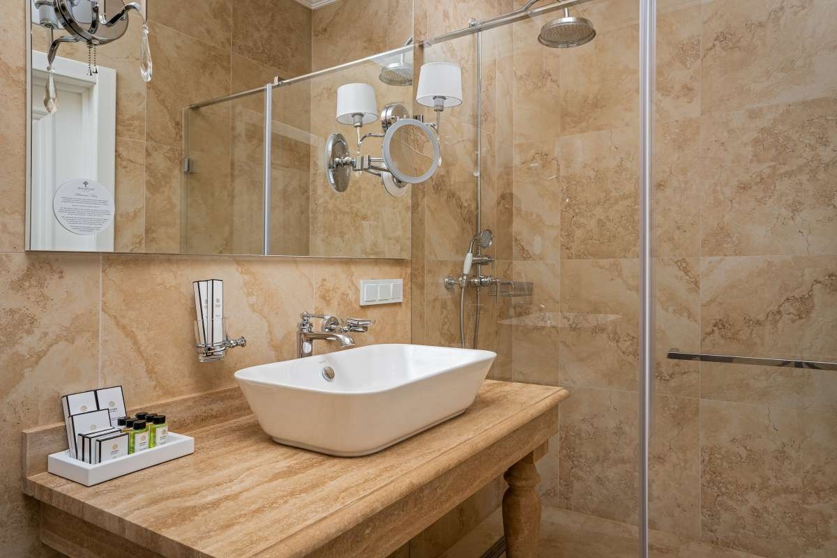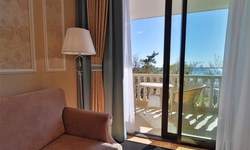 Номер шикарный (итальянская сантехника, отделка травертином, дорогие ткани в оформлении интерьера, качественная мебель), эргономичный, очень уютный и красивый, огромный балкон с видом на море.