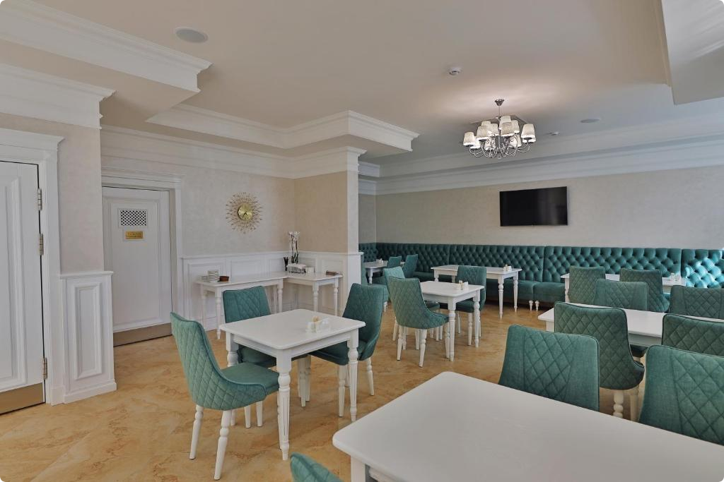 В каждом номере имеются: чайная станция, бутилированная вода, гладильная доска и утюг. Предоставляется набор полотенец, халаты, тапочки. Оснащение зависит от выбранной категории проживания.