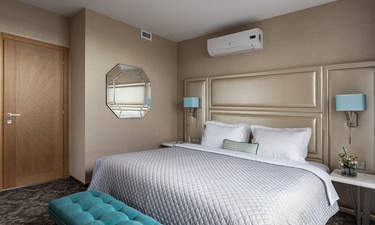 Номер делюкс, который нам предоставили, оказался очень просторным и уютным. Мы были приятно удивлены современным ремонтом и стильным дизайном — все было выполнено с большим вкусом и вниманием к деталям.