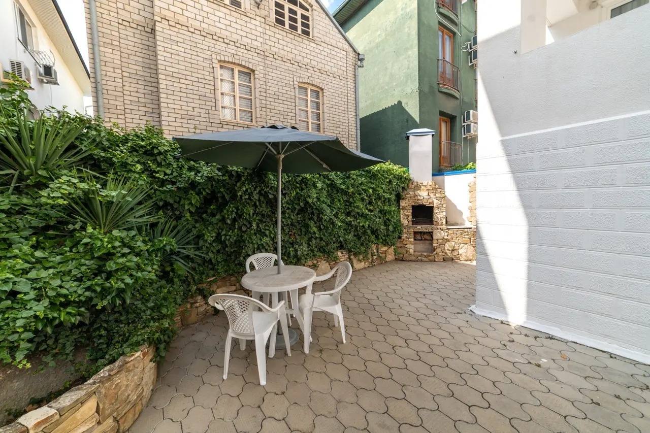Территория огорожена, на входе - кодовый замок. Аллея колоновидных туй, вазоны с цветами, античная лужайка, столики со стульями под зонтами располагают к уютной домашней атмосфере. Для гостей, путешествующих на автомобиле, на территории имеется открытая бесплатная парковка.