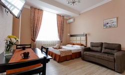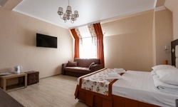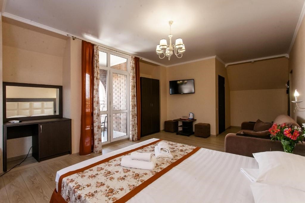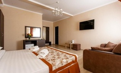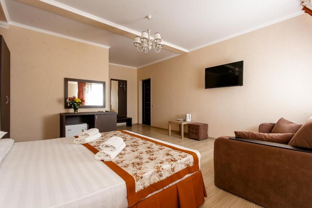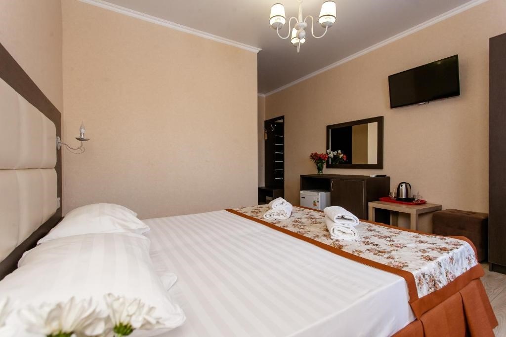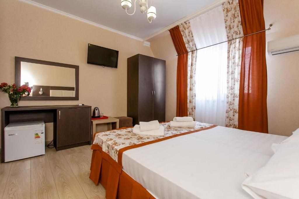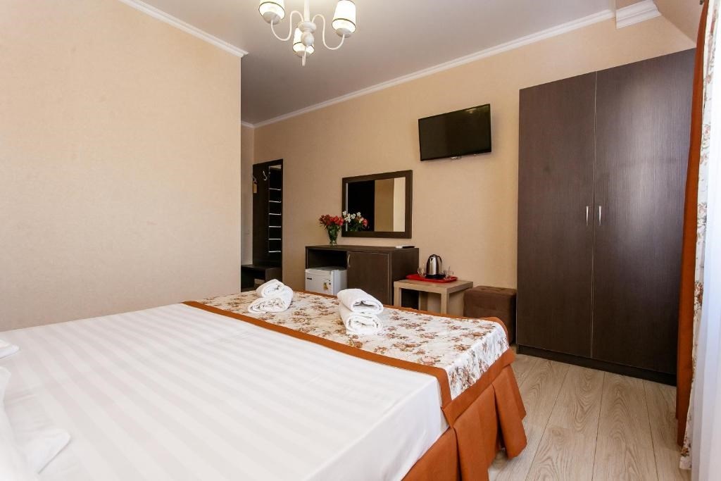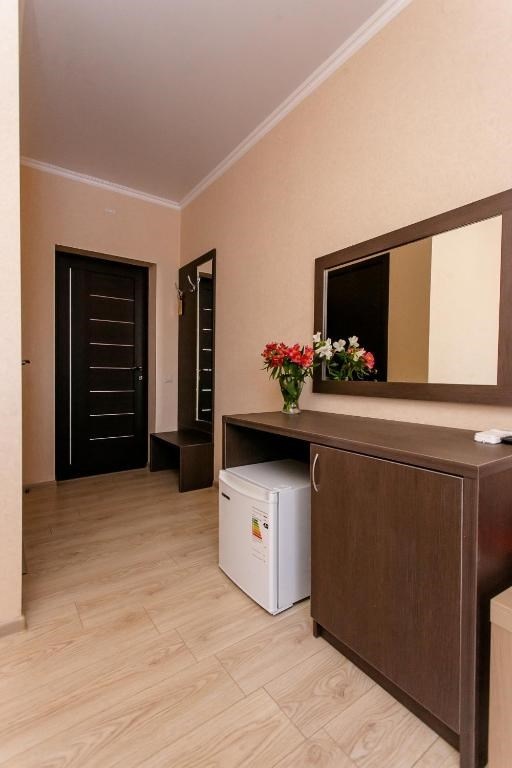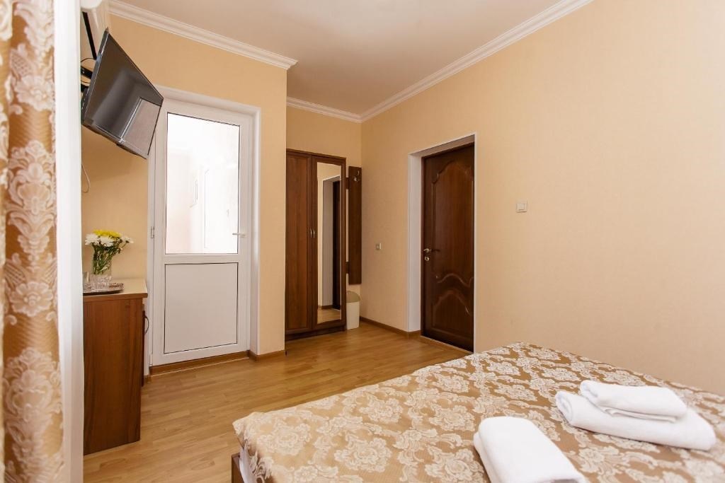Озелененной ухоженный двор со скамейками, позволит Вам спокойно провести время и укрыться от палящего солнца. Рядом имеется платная автостоянка. Отличительной особенностью гостевого дома является предоставление домашнего уюта, тишины и покоя, что обусловлено его расположением в стороне от ночных увеселительных заведений. При этом до парка, аквапарка, центрального рынка не более 10 минут.
