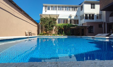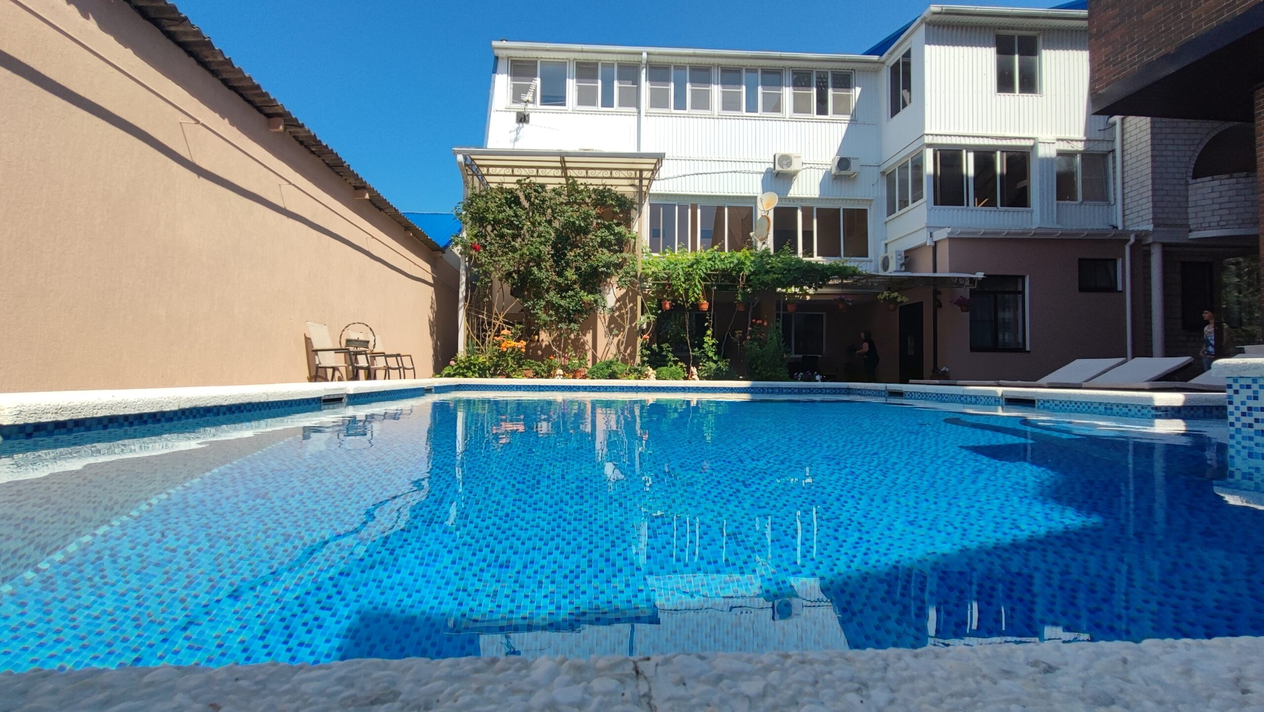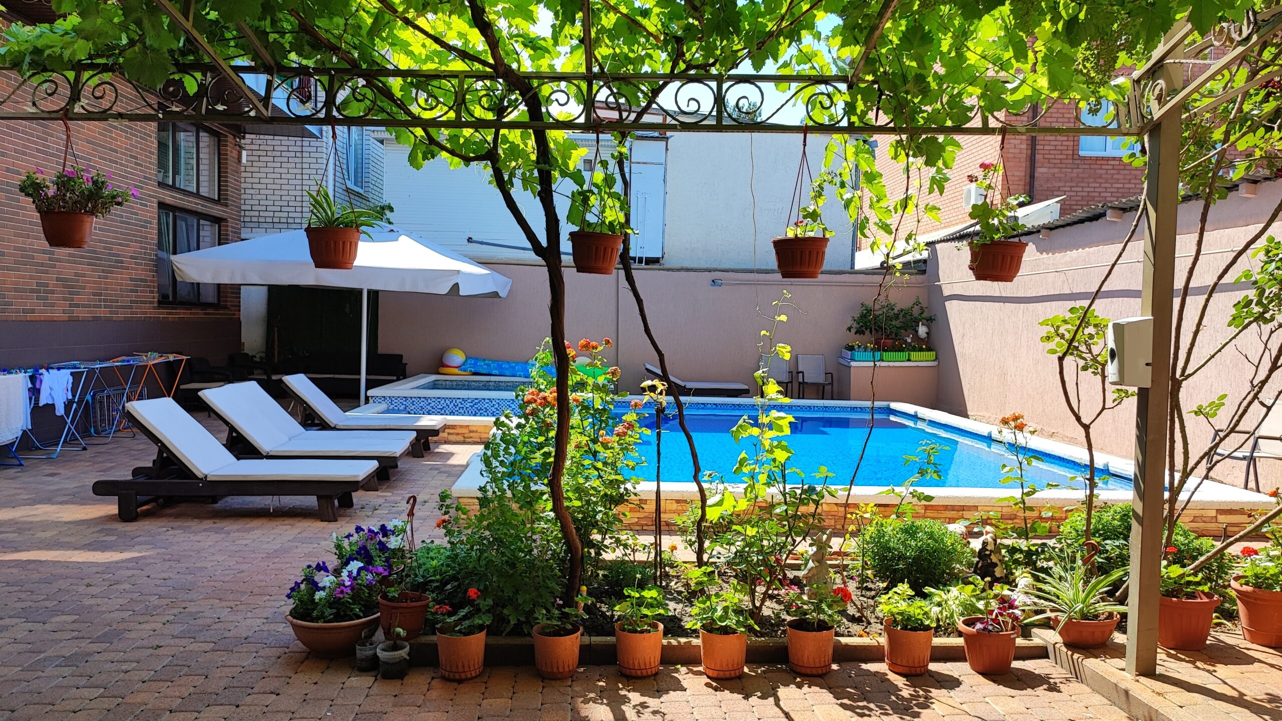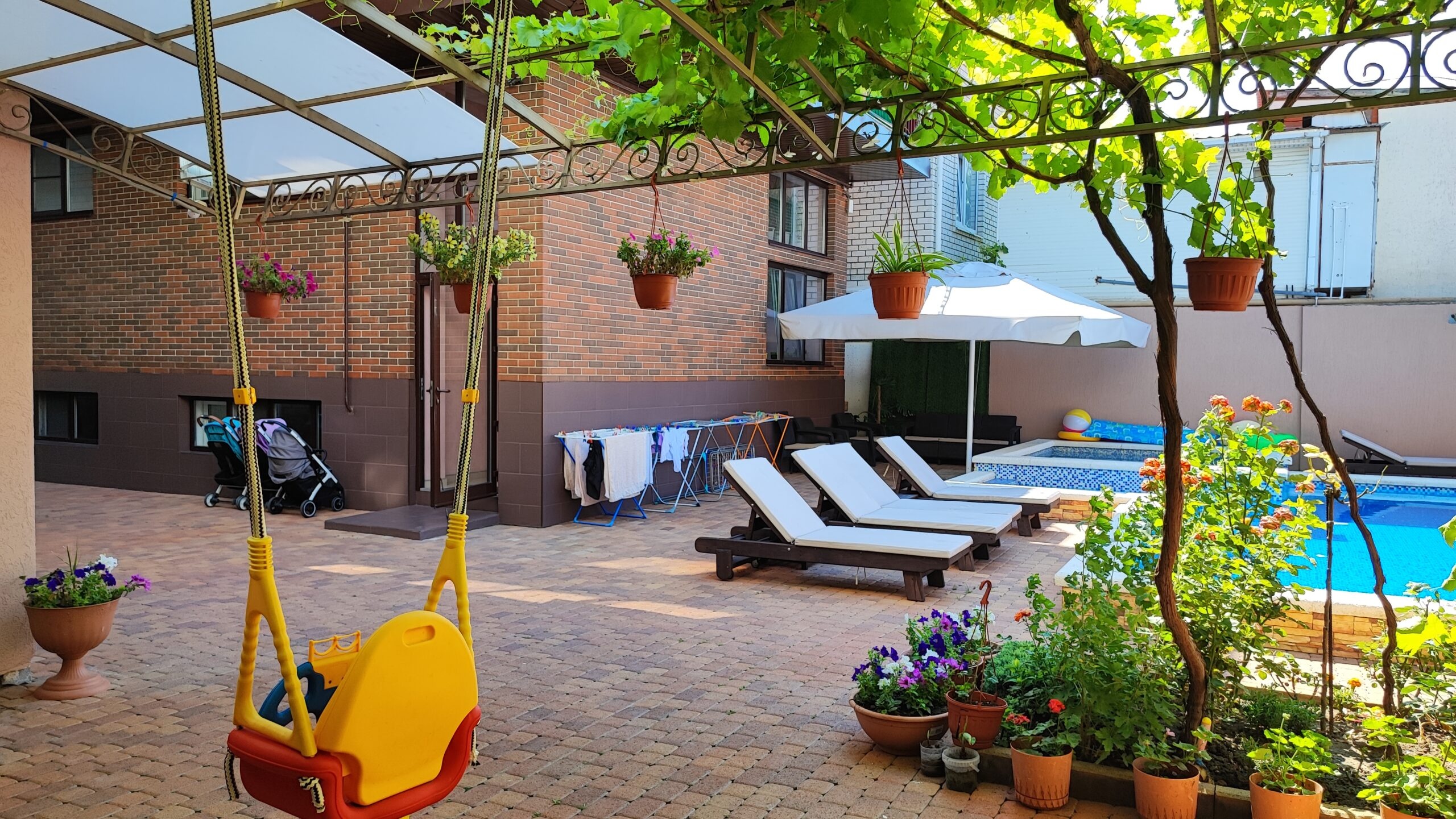 Озелененный ухоженный двор со скамейками, позволит Вам спокойно провести время и укрыться от палящего солнца, освежиться можно будет в большом и открытом бассейне с секциями для взрослых и детей – это идеальное место для отдыха и релаксации. Здесь вы можете насладиться прохладой чистой и теплой воды, а также воспользоваться другими удобствами. Нашими постоянными гостями являются семьи с детьми — родители могут расслабиться и отдохнуть, а дети — весело провести время. У нас есть все необходимое для комфортного проживания детей: бассейн, площадка для игр на улице и многое другое. У нас дети смогут насладиться природой и провести время на свежем воздухе. Это поможет им укрепить здоровье и получить заряд энергии на весь день.