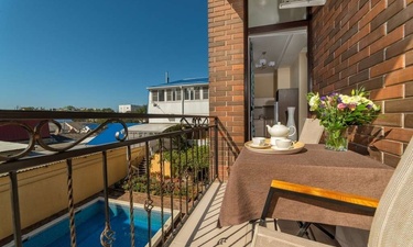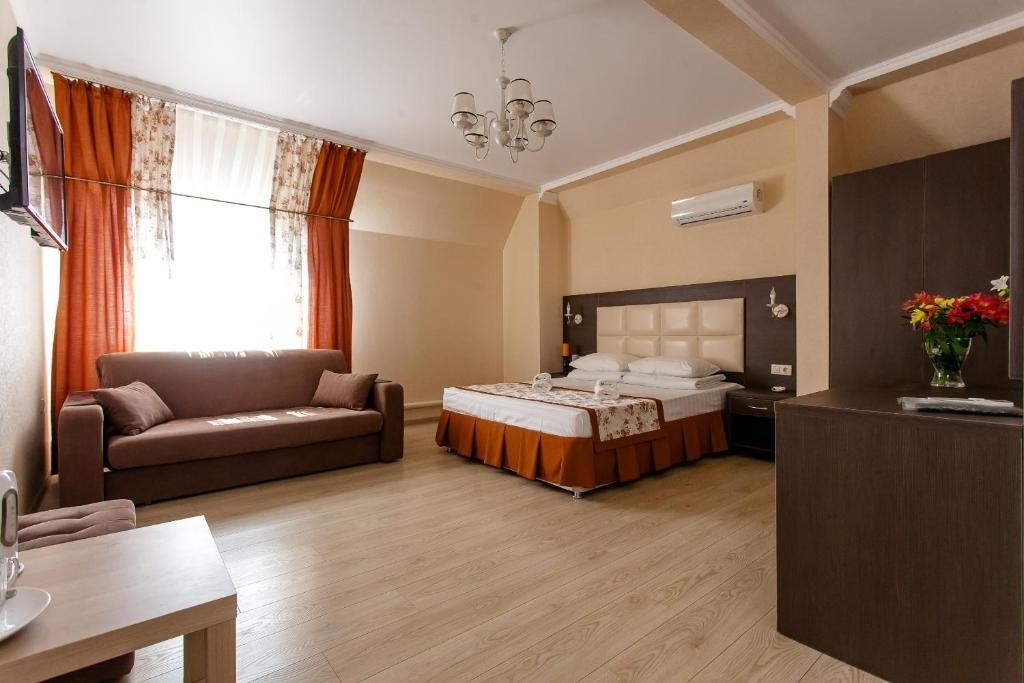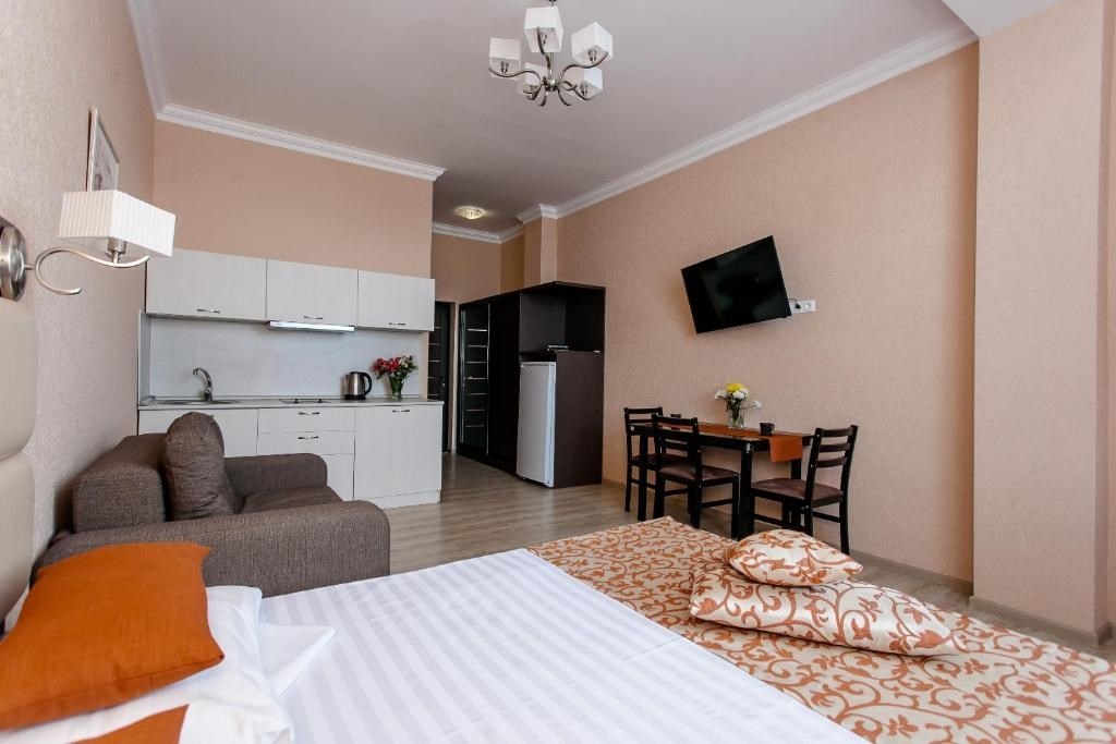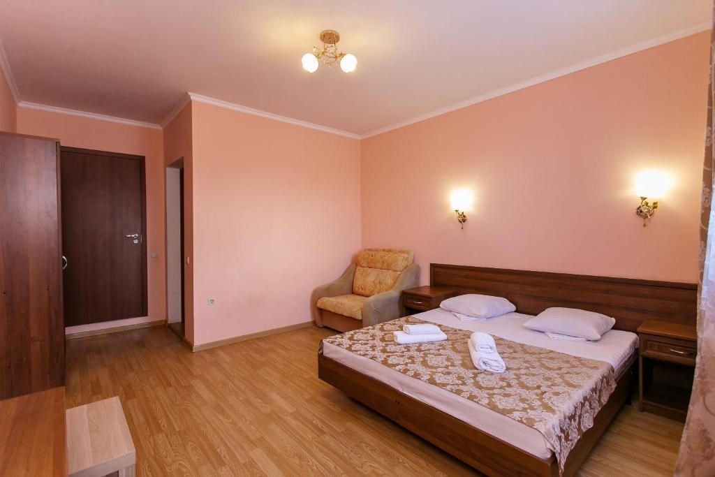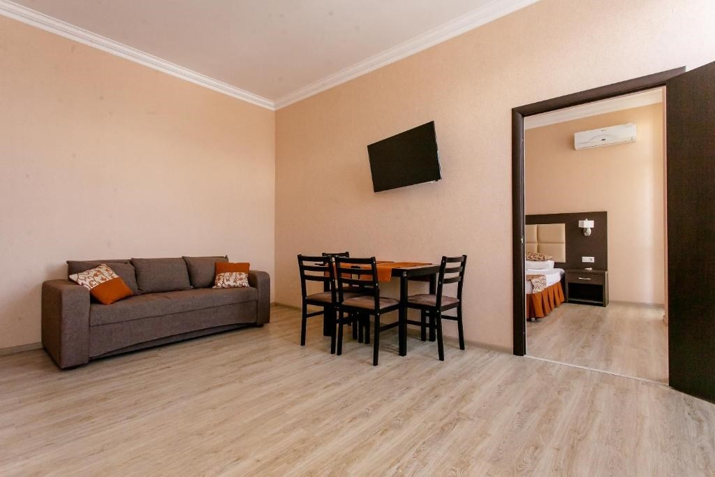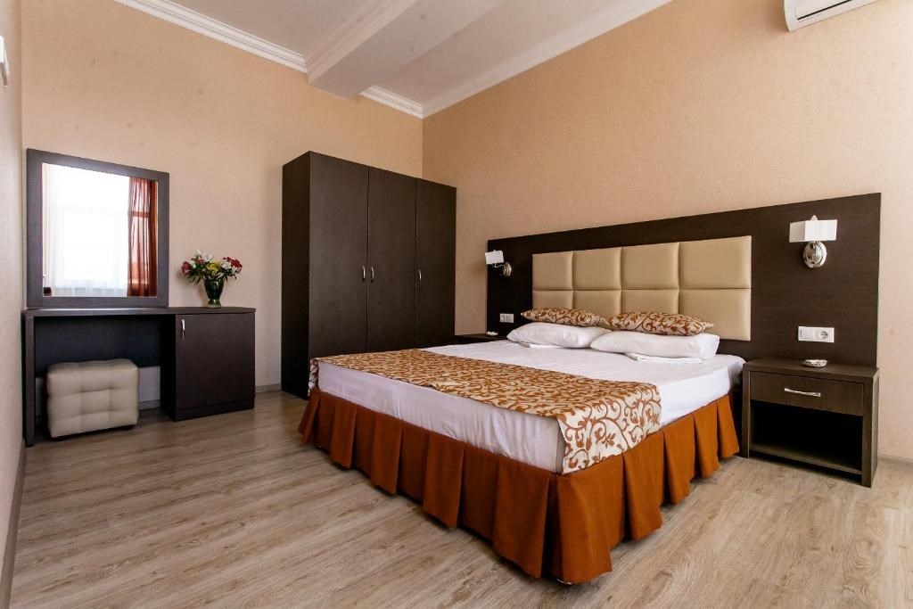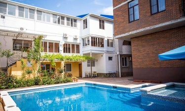 Озелененный ухоженный двор со скамейками, позволит Вам спокойно провести время и укрыться от палящего солнца, освежиться можно будет в большом и открытом бассейне с секциями для взрослых и детей – это идеальное место для отдыха и релаксации. Здесь вы можете насладиться прохладой чистой и теплой воды, а также воспользоваться другими удобствами. Нашими постоянными гостями являются семьи с детьми — родители могут расслабиться и отдохнуть, а дети — весело провести время. У нас есть все необходимое для комфортного проживания детей: бассейн, площадка для игр на улице и многое другое. У нас дети смогут насладиться природой и провести время на свежем воздухе. Это поможет им укрепить здоровье и получить заряд энергии на весь день.