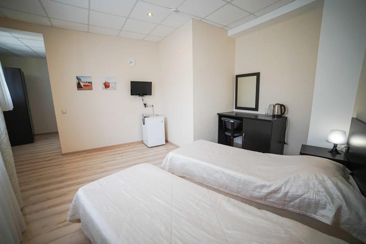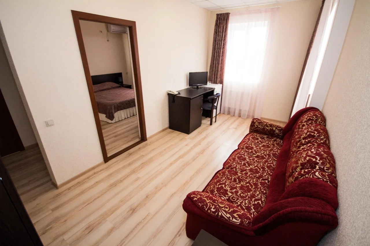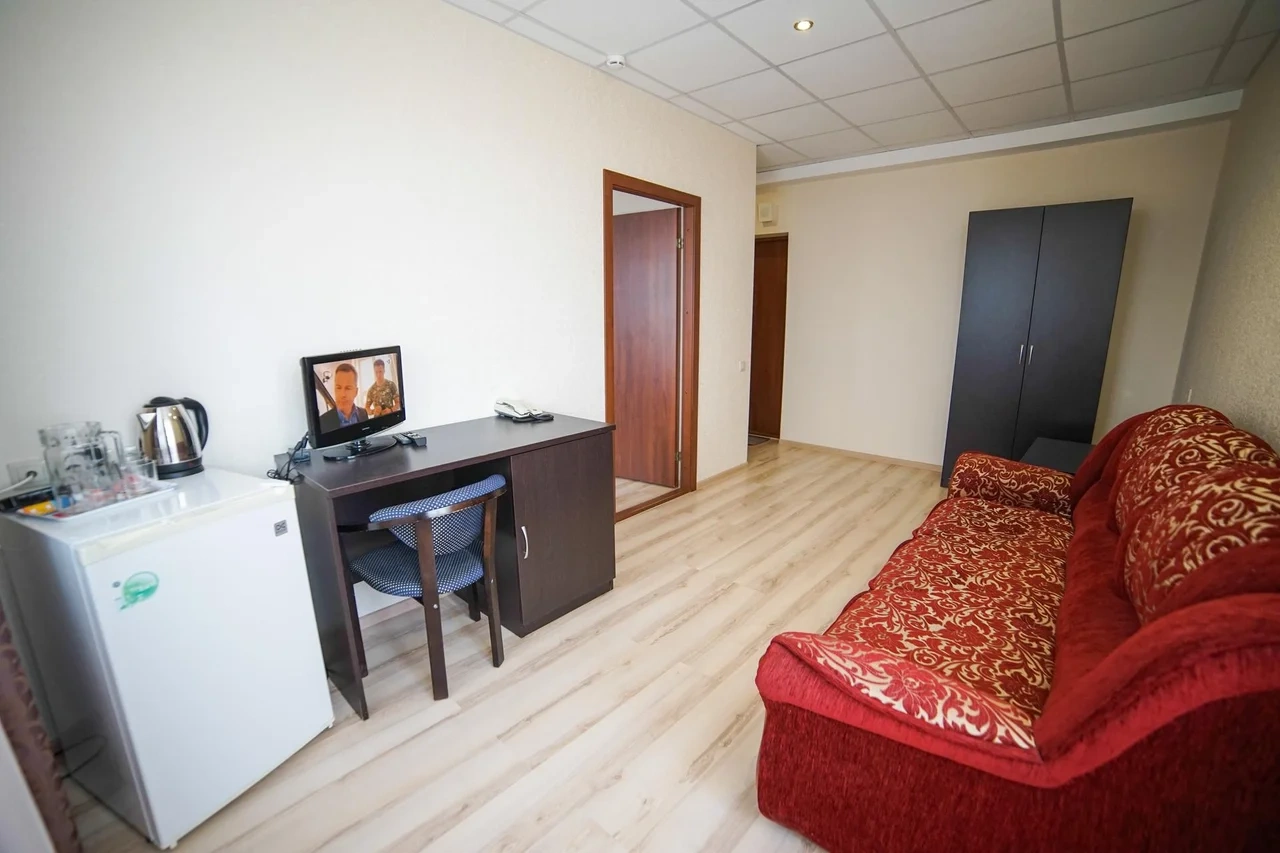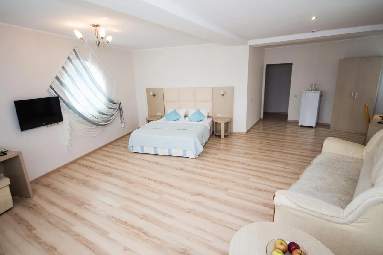 Однокомнатный номер увеличенной площади с двуспальной, односпальной кроватью и диваном. Современный лаконичный дизайн интерьера не перегружен деталями, тем самым оставляя достаточно пространства для комфортного размещения. Возможно размещение в номере до 5 человек (с дополнительной оплатой).