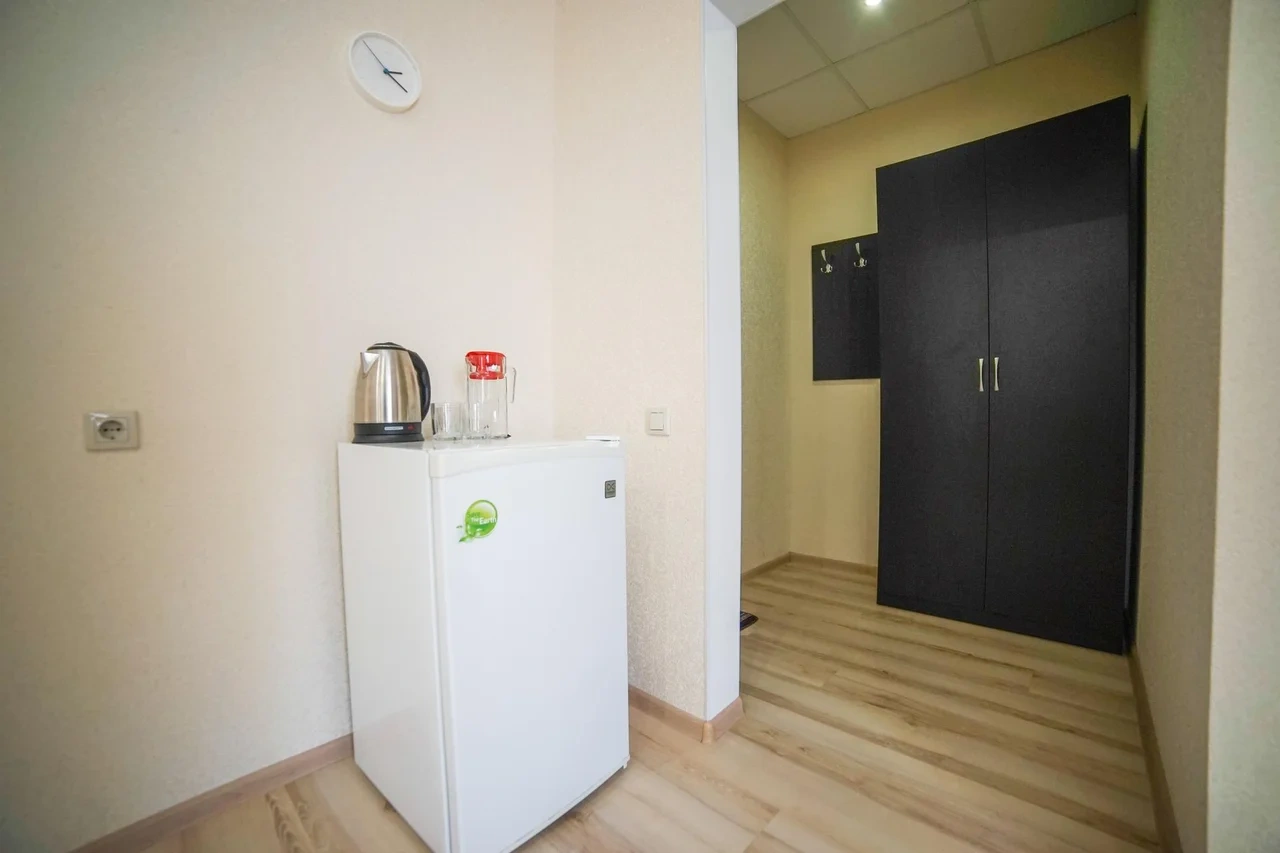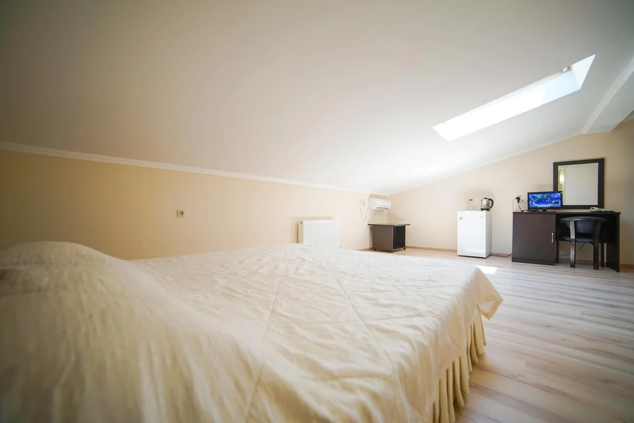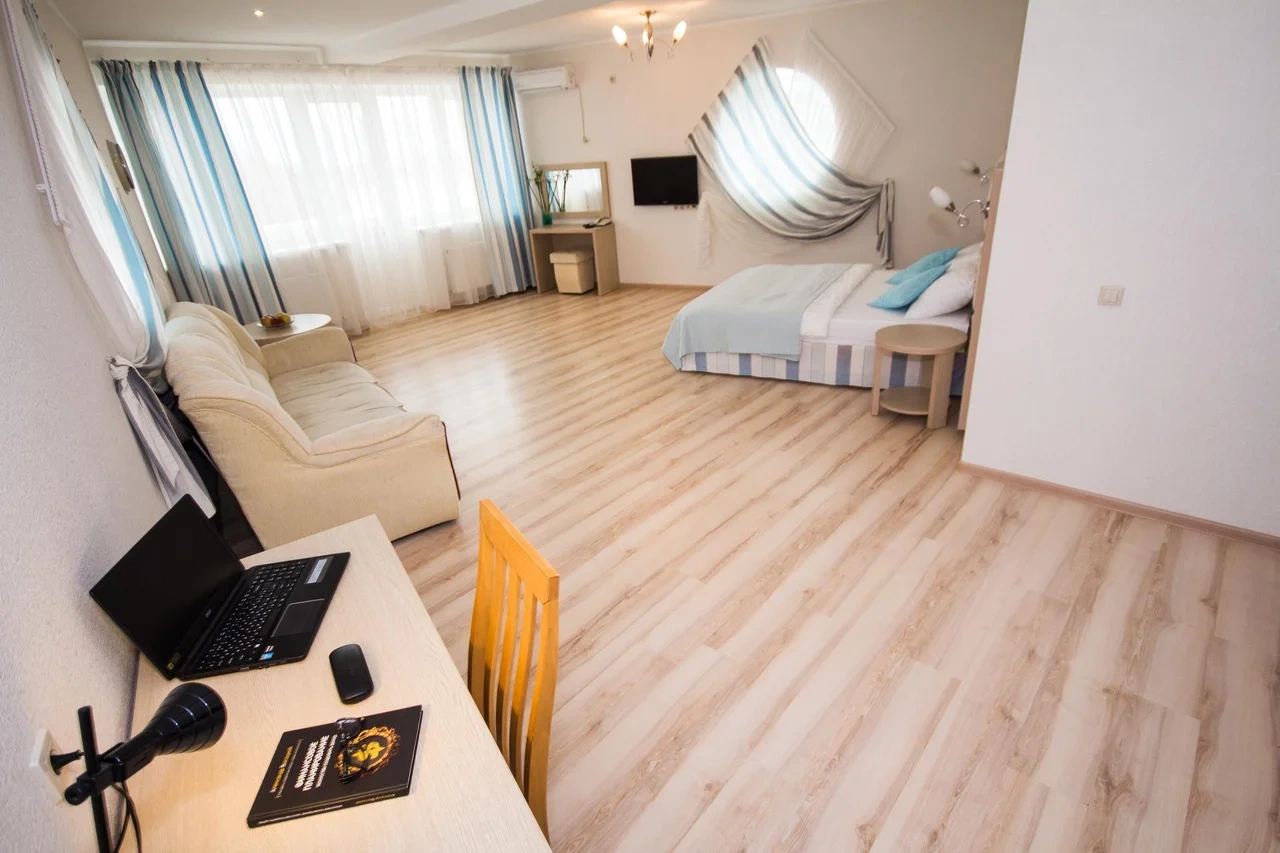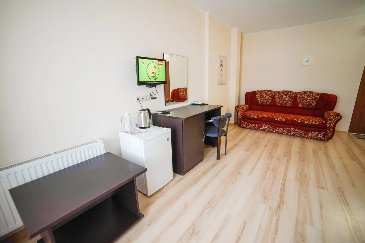 Однокомнатный номер увеличенной площади с двуспальной, односпальной кроватью и диваном. Современный лаконичный дизайн интерьера не перегружен деталями, тем самым оставляя достаточно пространства для комфортного размещения. Возможно размещение в номере до 5 человек (с дополнительной оплатой).