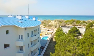 Отель привлекает гостей удачным месторасположением, в непосредственной близости от золотистого песчаного пляжа, где имеется отдельная оборудованная зона лежаками, навесом, душем, туалетом.