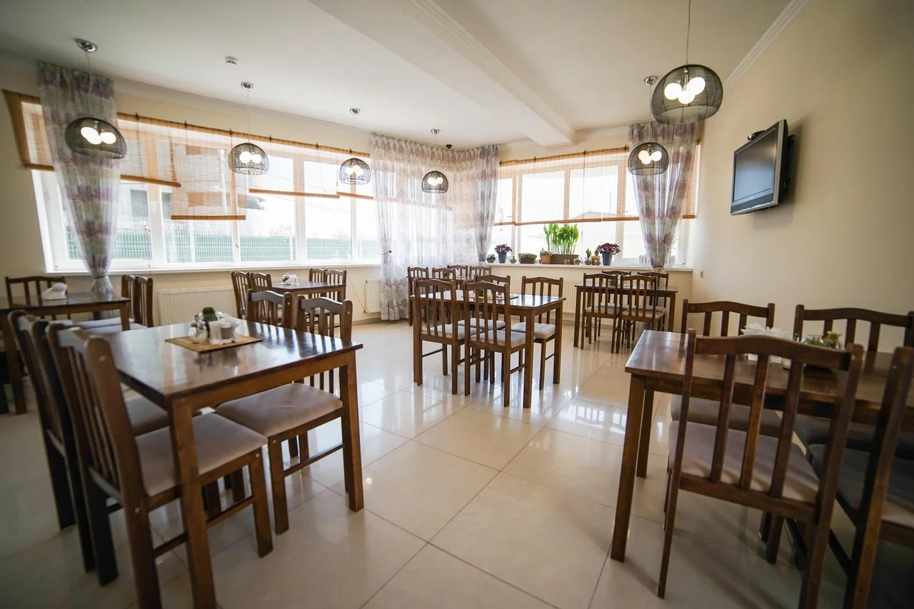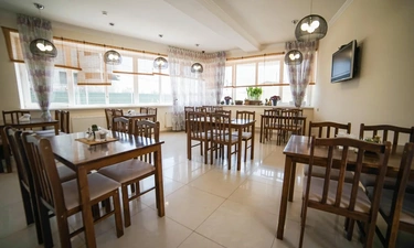 При отеле функционирует кафе-столовая раздаточного типа, где предлагается ряд вкусных и полезных блюд.