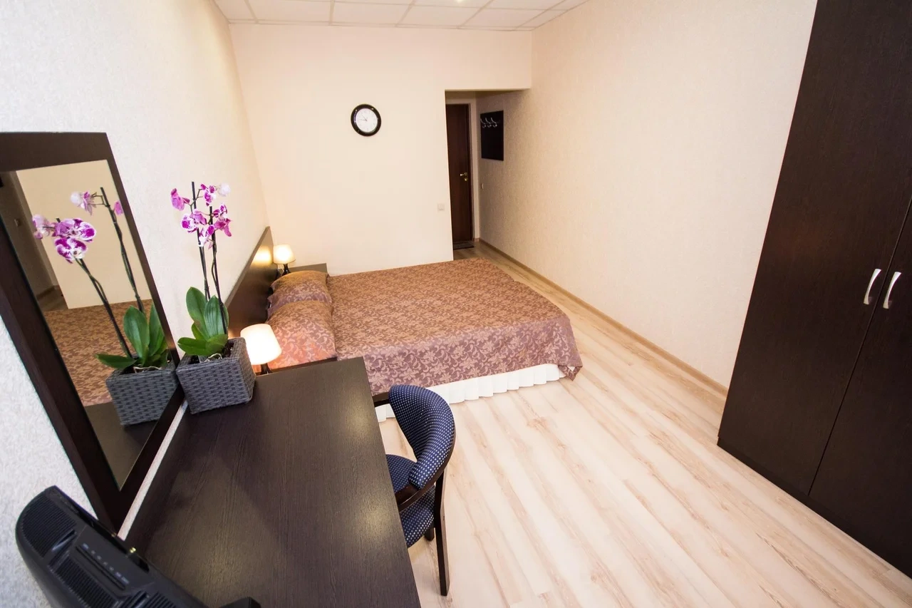 Комфортабельный номер площадью 16-23 кв.м., идеально подходящий как для отдыха, так и для бизнес-поездки. Номер, выполненный в классическом стиле, оборудован двуспальной кроватью, удобным рабочим столом, телевизором с плоским экраном, сплит-системой, холодильником, электрическим чайником, телефоном. Имеются номера с и без балкона. В ванной комнате: душ, раковина. За отдельную оплату возможна установка дополнительного места.