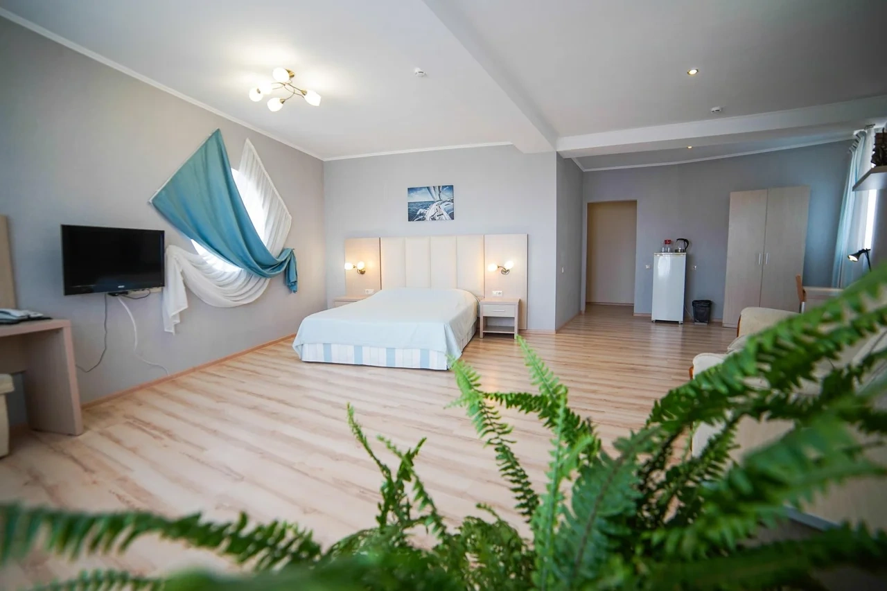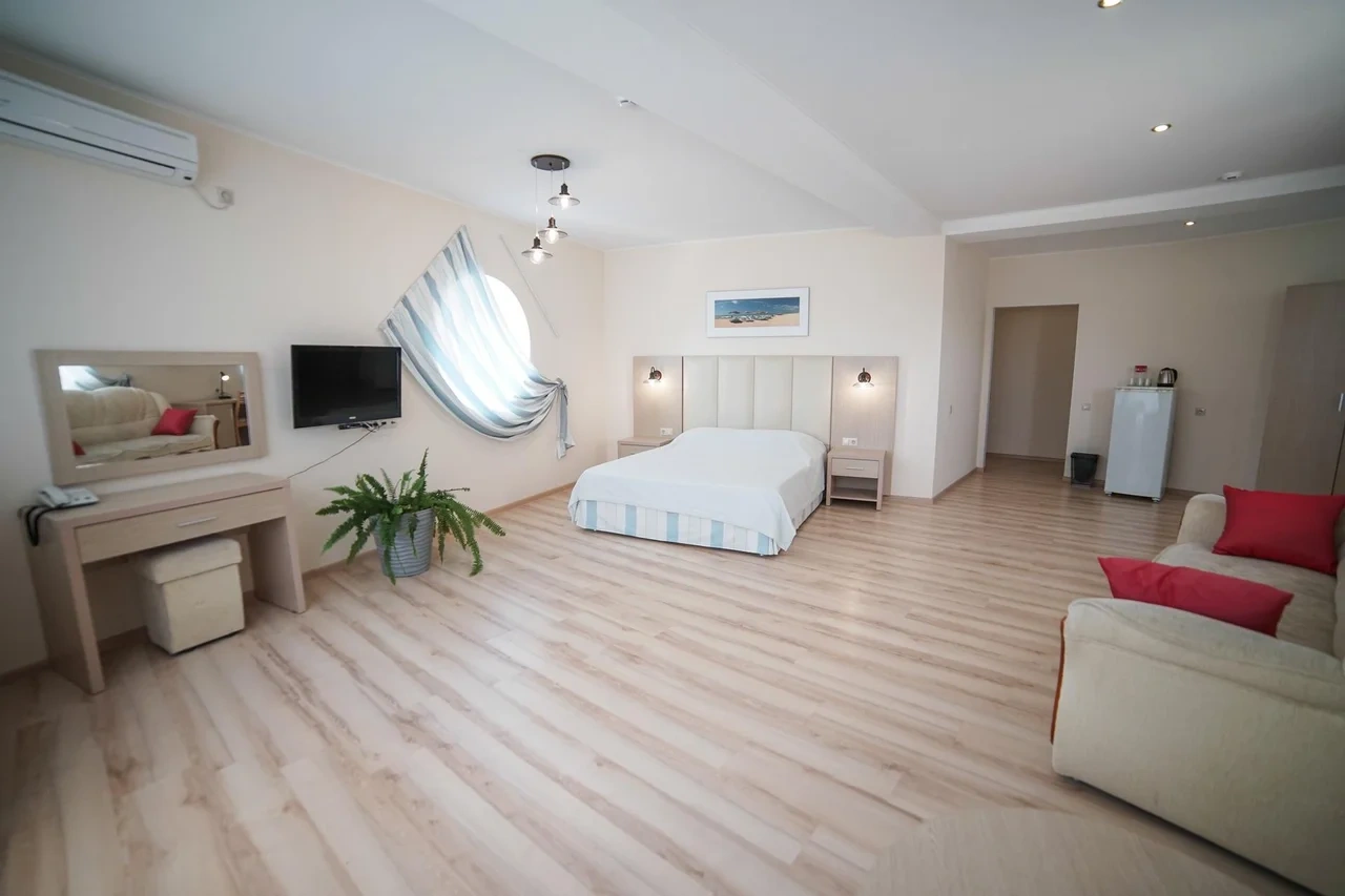 Двухкомнатные номера, оформленные в сдержанном классическом стиле, состоят из гостиной и уютной спальни. В интерьерах всё продумано до мелочей с использованием только лучшей мебели и материалов декора. В номере имеется 2 балкона. Каждая комната имеет выход на балкон с видом на парковку и внутренний дворик или на облагороженную зону бассейна и частичным видом на море. Возможна установка дополнительного места.