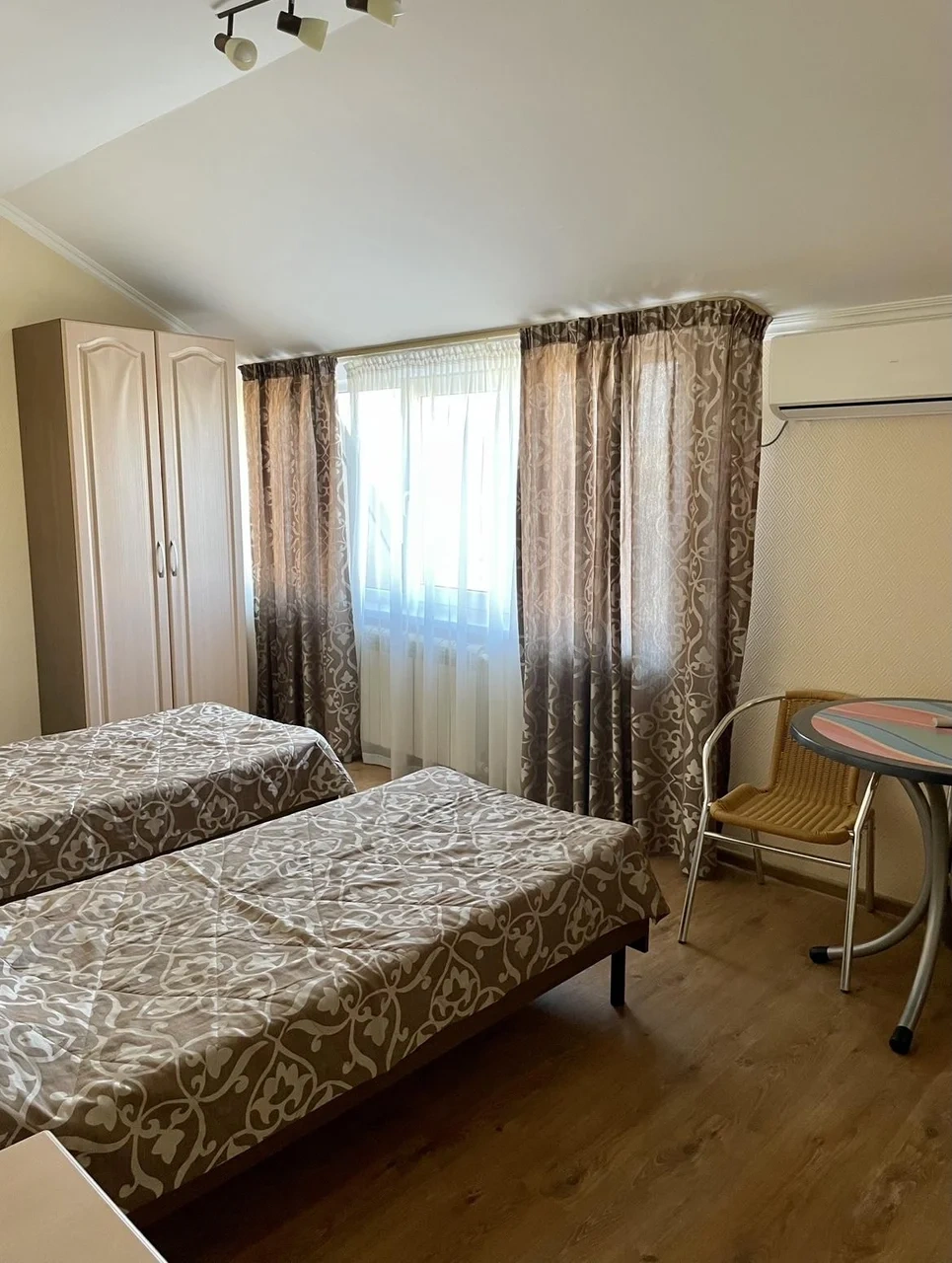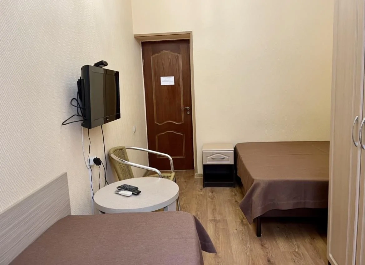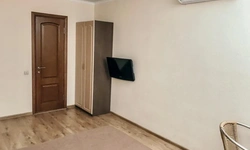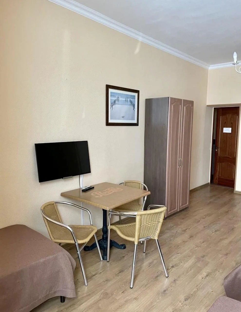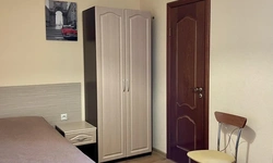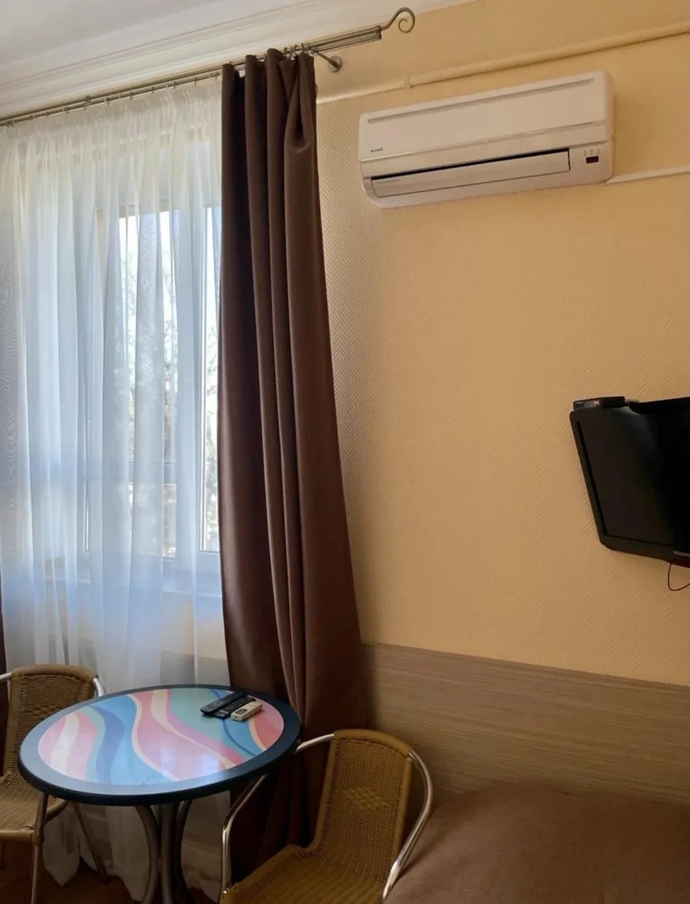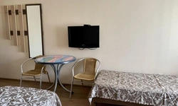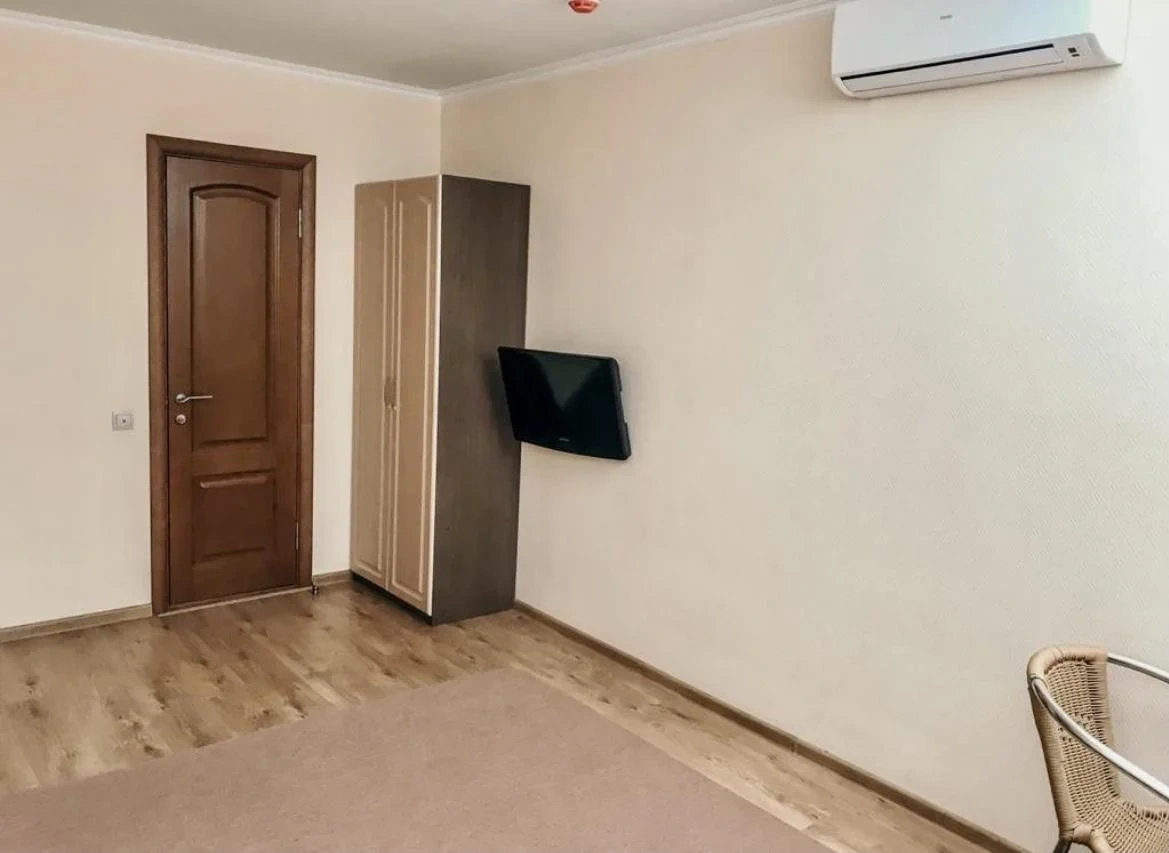 двуспальная и односпальная кровати, шкаф для одежды, тумбочки, стол, стулья, зеркало, вешалка, кондиционер, телевизор, холодильник на этаже, гладильная доска с утюгом на этаже, собственный санузел с душем, туалетная бумага, wi-fi (входит в стоимость)