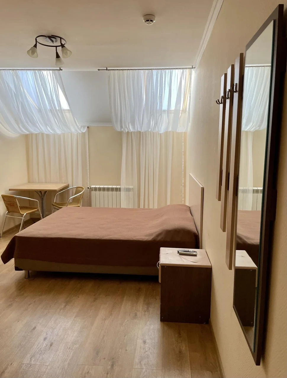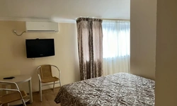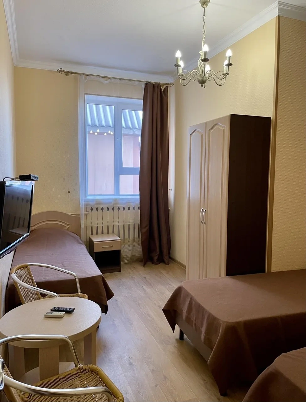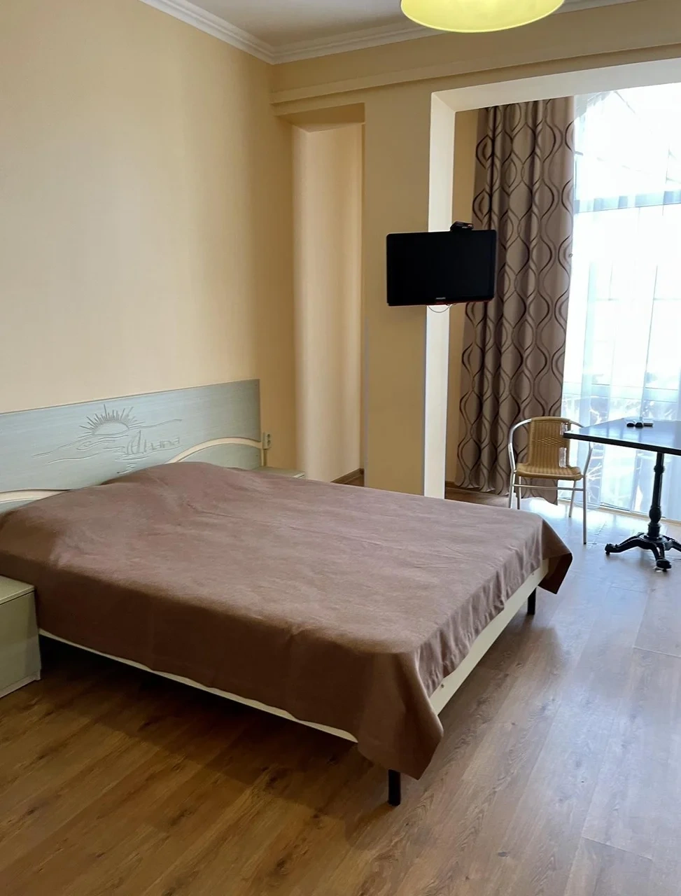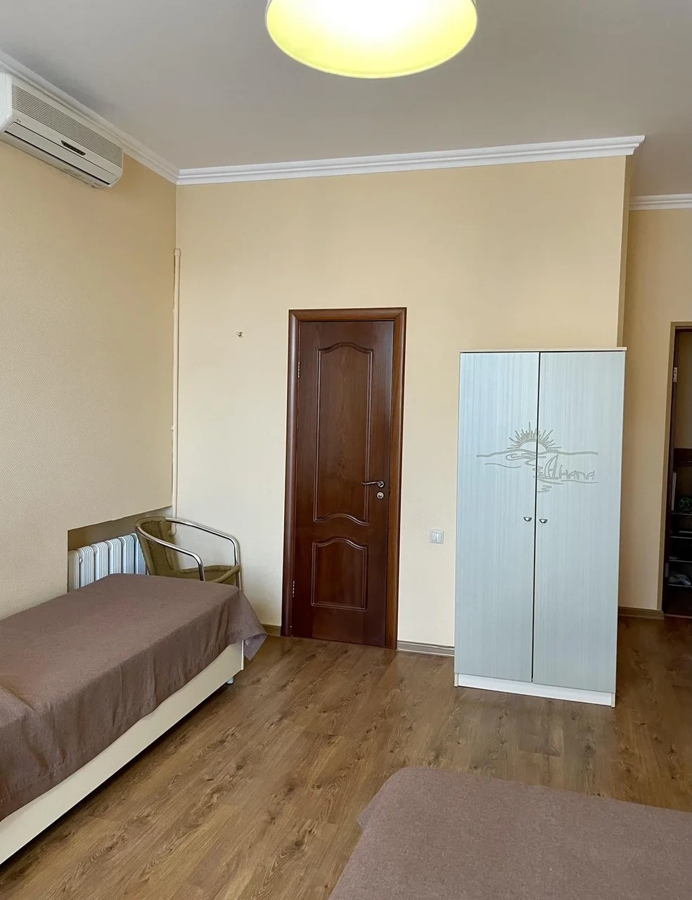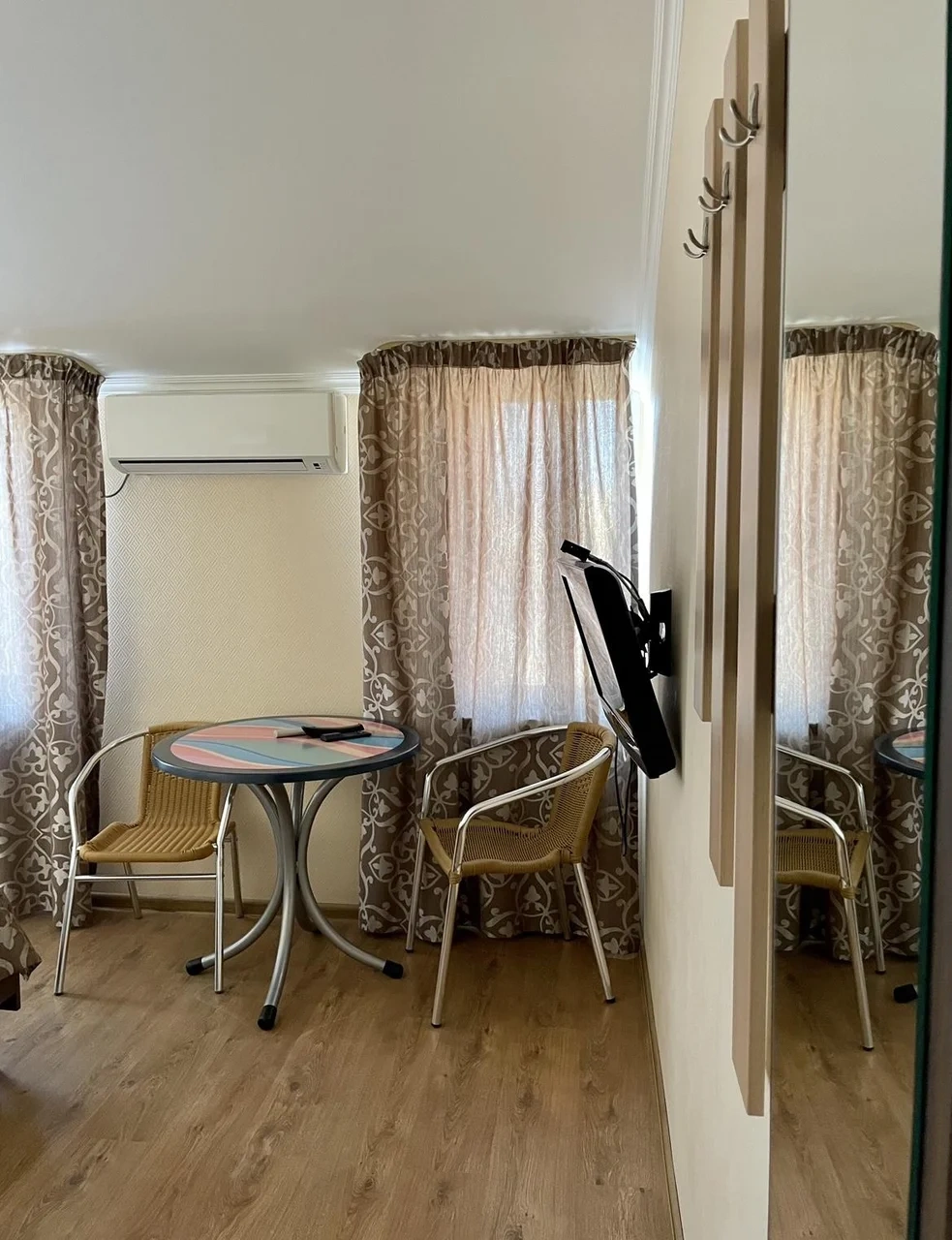 двуспальная и односпальная кровати, шкаф для одежды, тумбочки, стол, стулья, зеркало, вешалка, кондиционер, телевизор, холодильник на этаже, гладильная доска с утюгом на этаже, собственный санузел с душем, туалетная бумага, wi-fi (входит в стоимость)