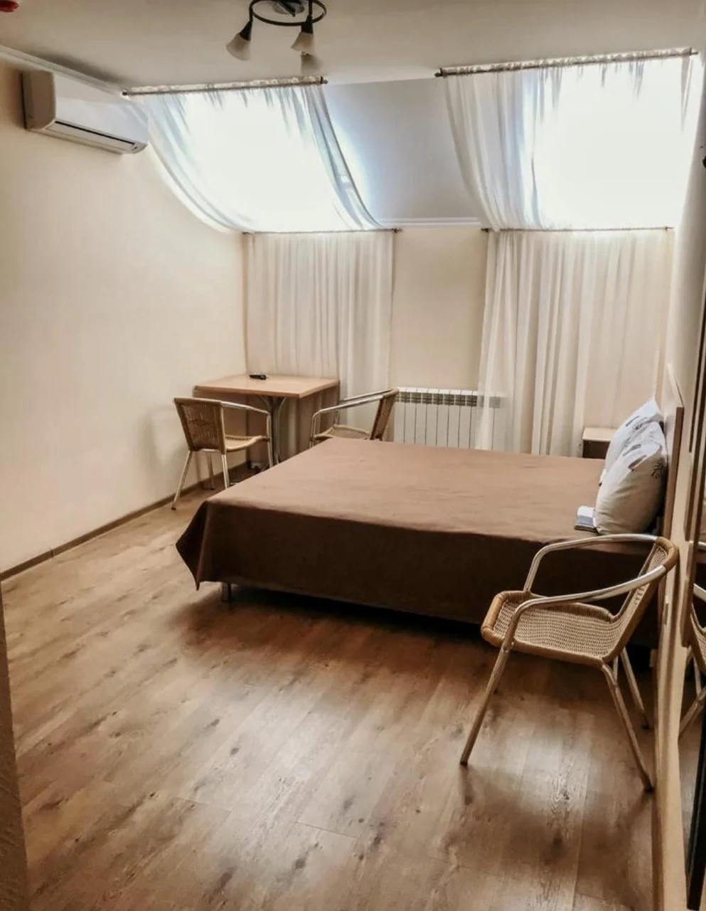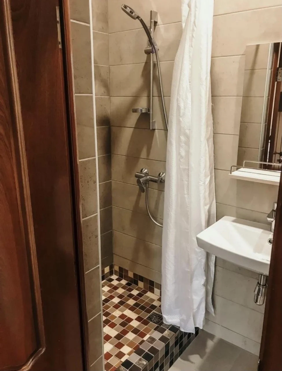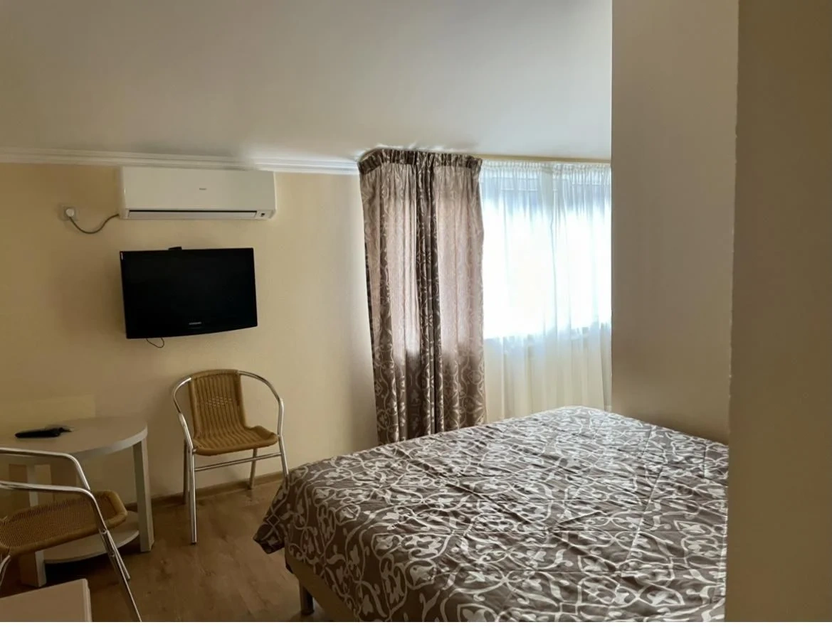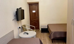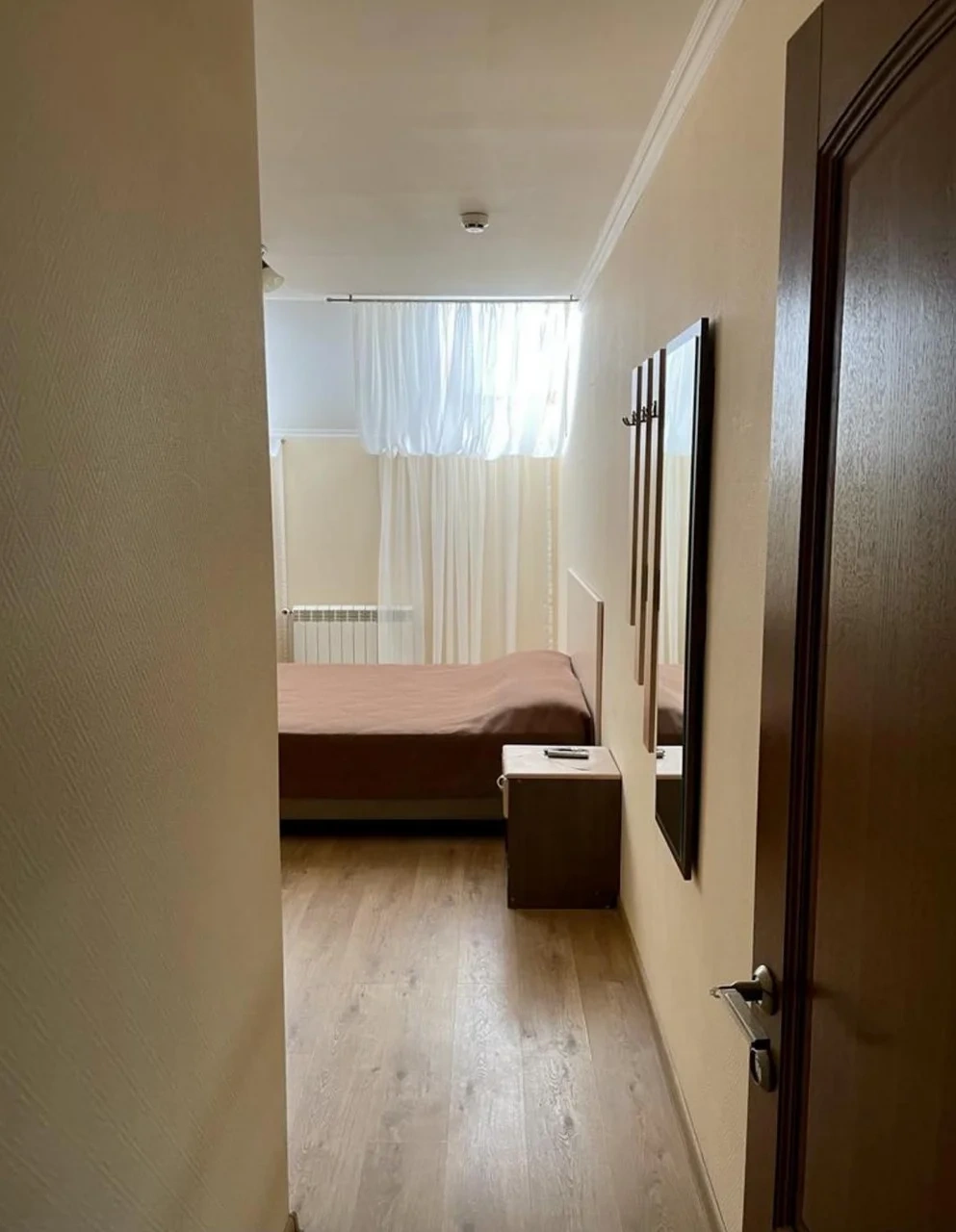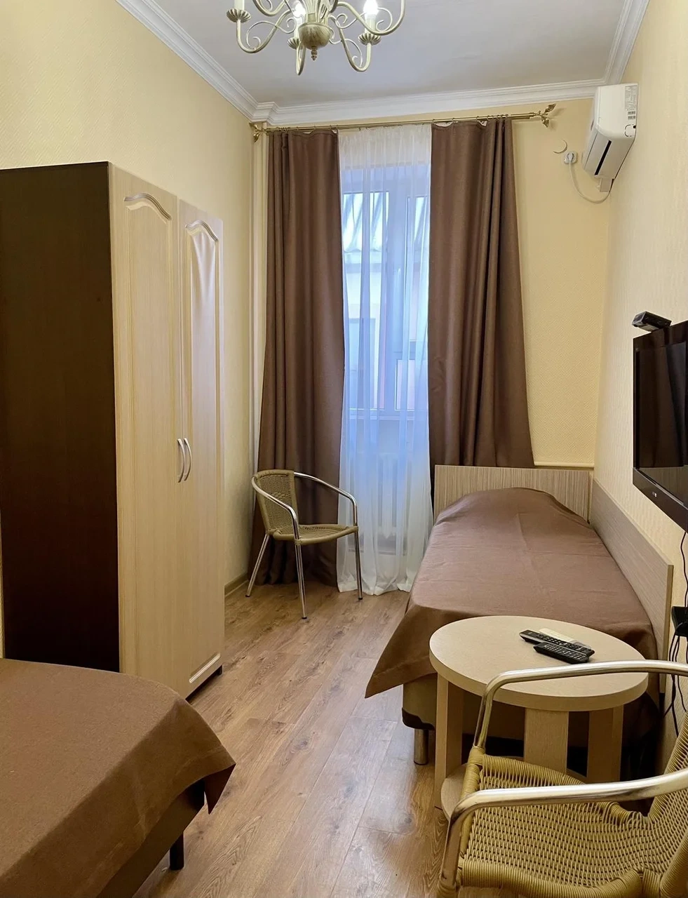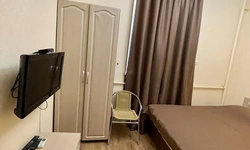 двуспальная и односпальная кровати, шкаф для одежды, тумбочки, стол, стулья, зеркало, вешалка, кондиционер, телевизор, холодильник на этаже, гладильная доска с утюгом на этаже, собственный санузел с душем, туалетная бумага, wi-fi (входит в стоимость)