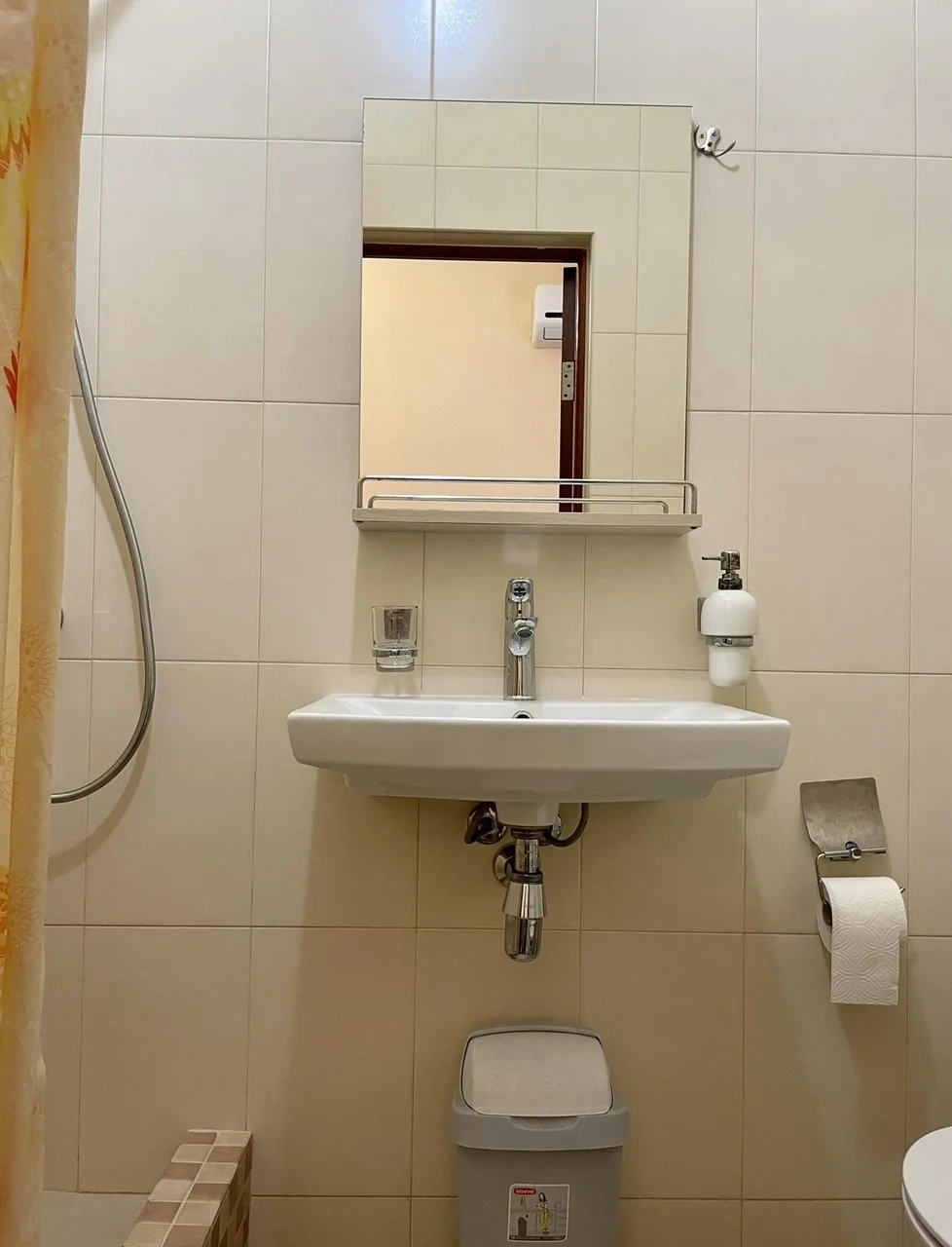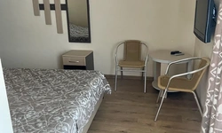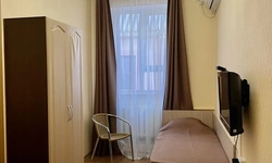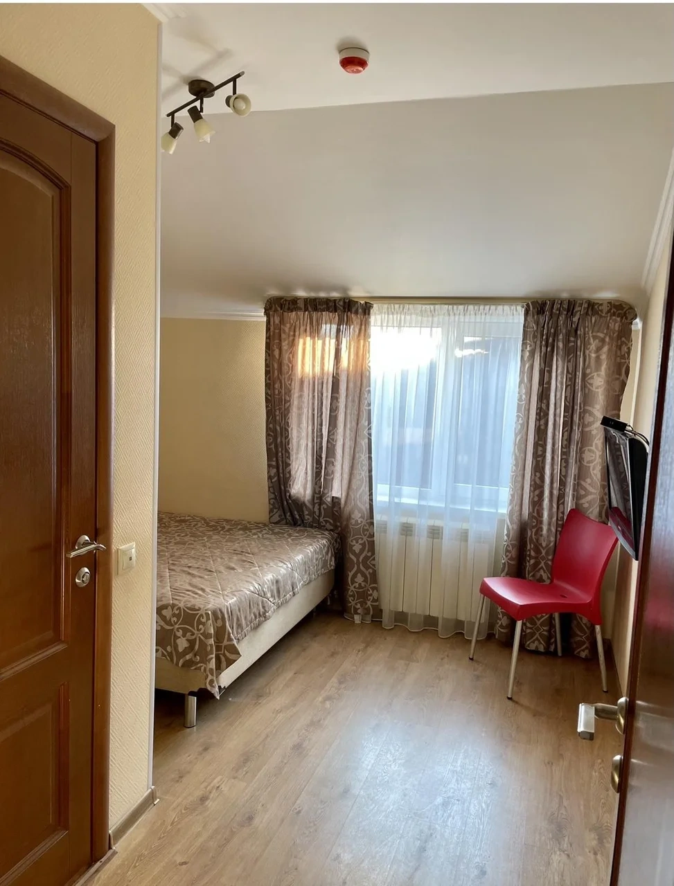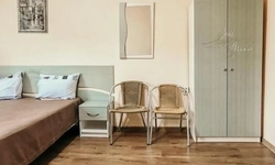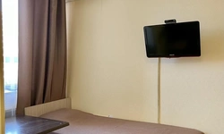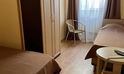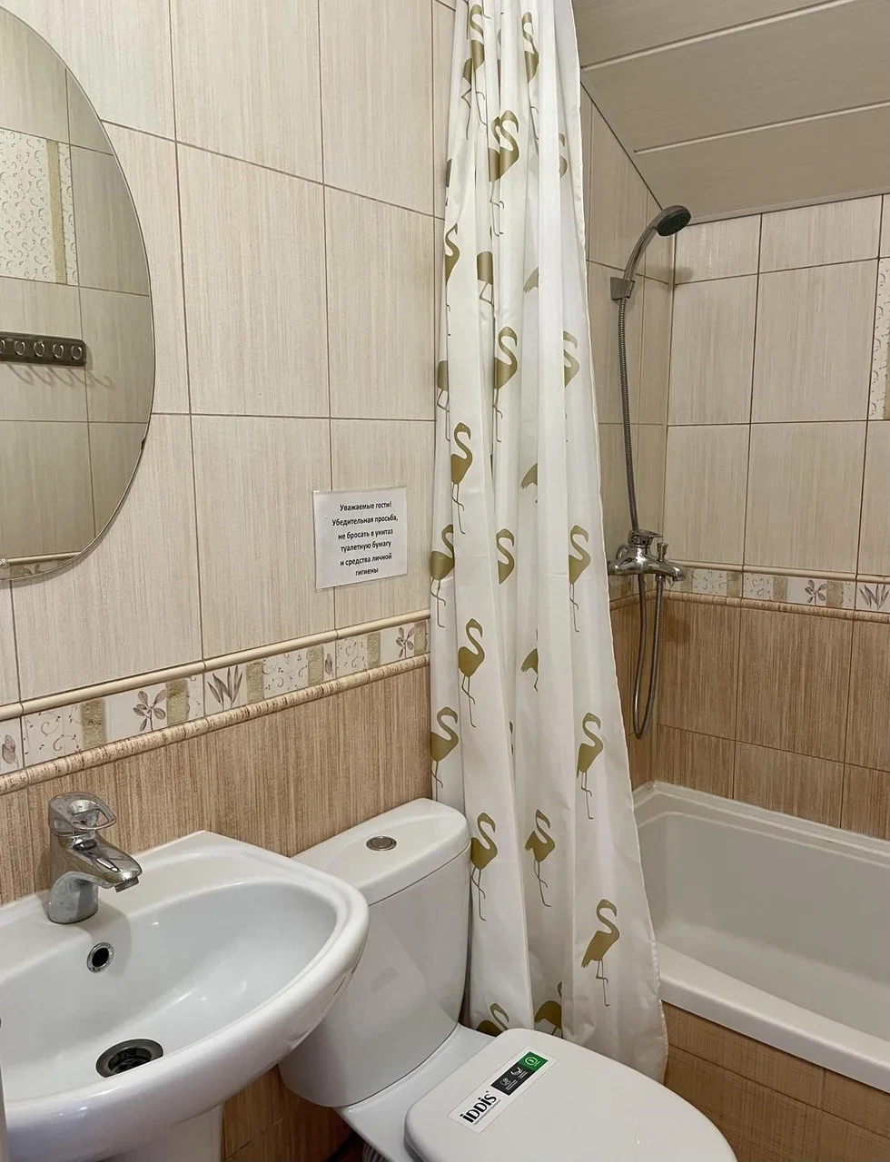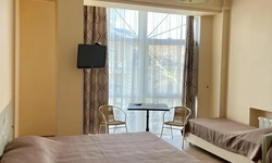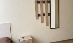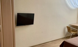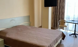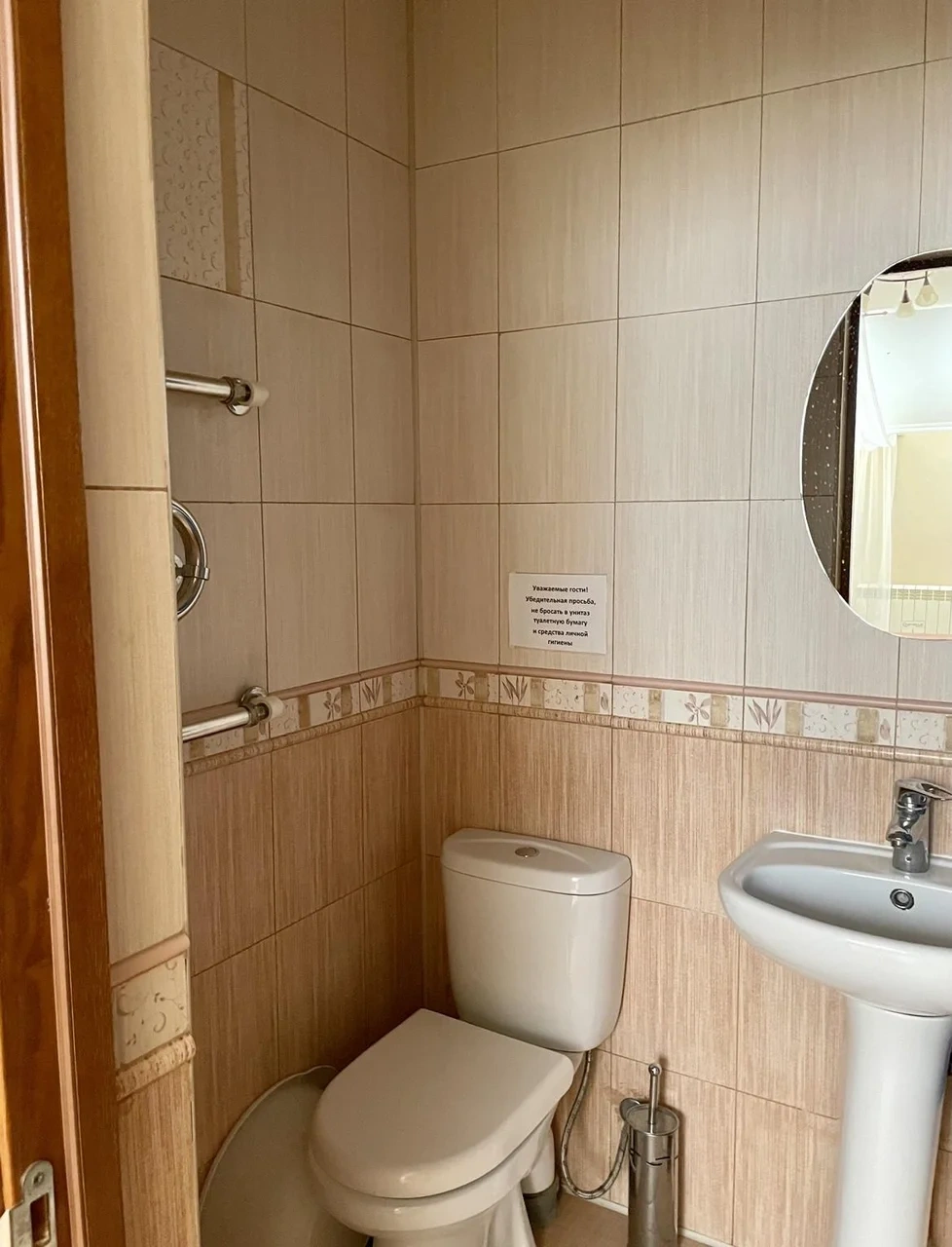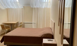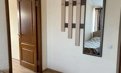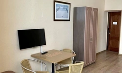 двуспальная и односпальная кровати, шкаф для одежды, тумбочки, стол, стулья, зеркало, вешалка, кондиционер, телевизор, холодильник на этаже, гладильная доска с утюгом на этаже, собственный санузел с душем, туалетная бумага, wi-fi (входит в стоимость)
