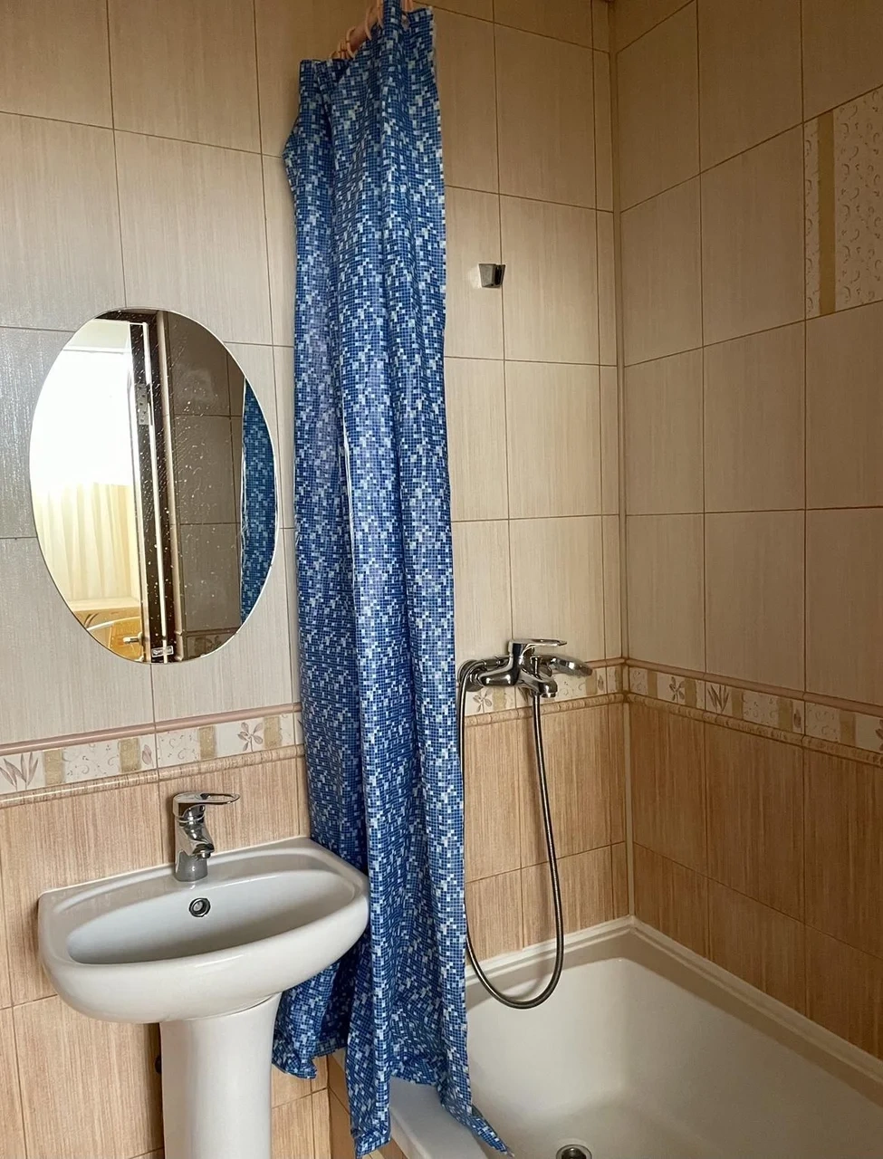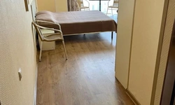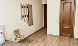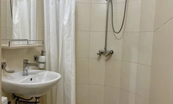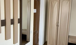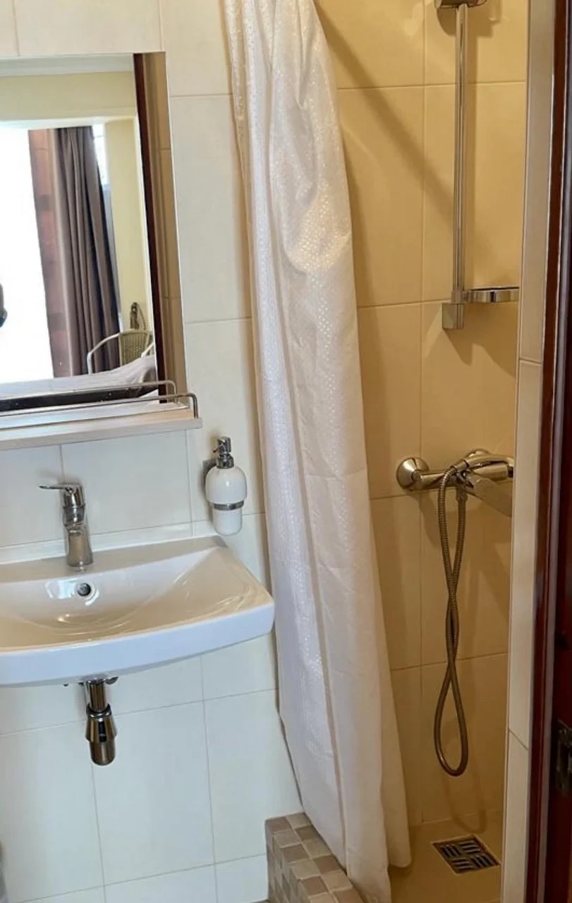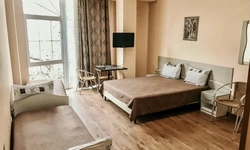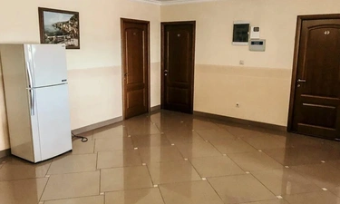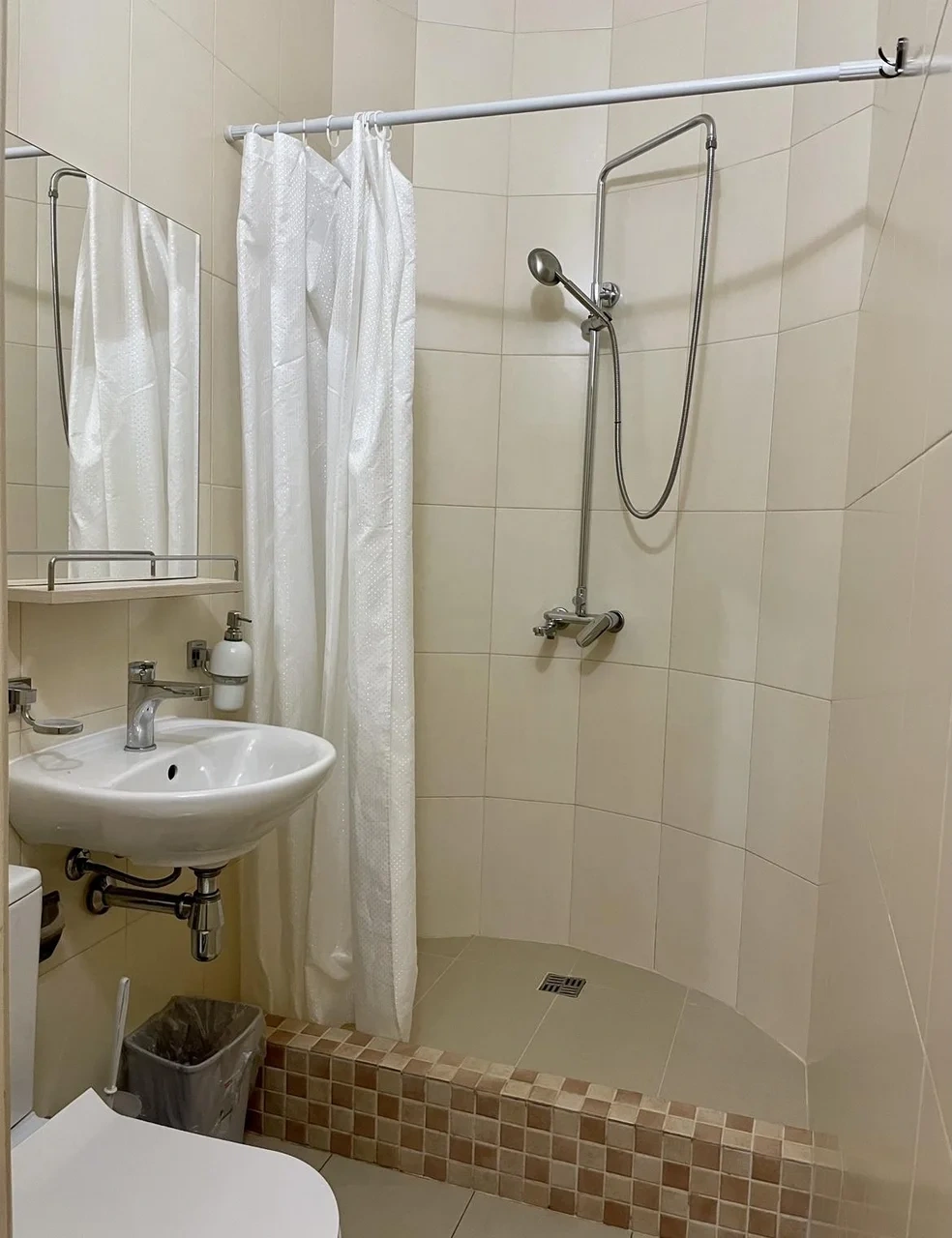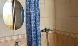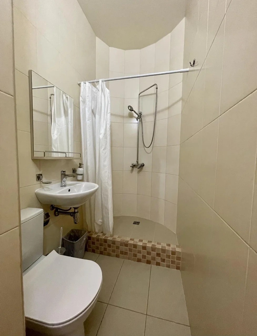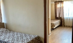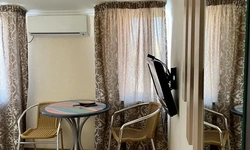 двуспальная и односпальная кровати, шкаф для одежды, тумбочки, стол, стулья, зеркало, вешалка, кондиционер, телевизор, холодильник на этаже, гладильная доска с утюгом на этаже, собственный санузел с душем, туалетная бумага, wi-fi (входит в стоимость)