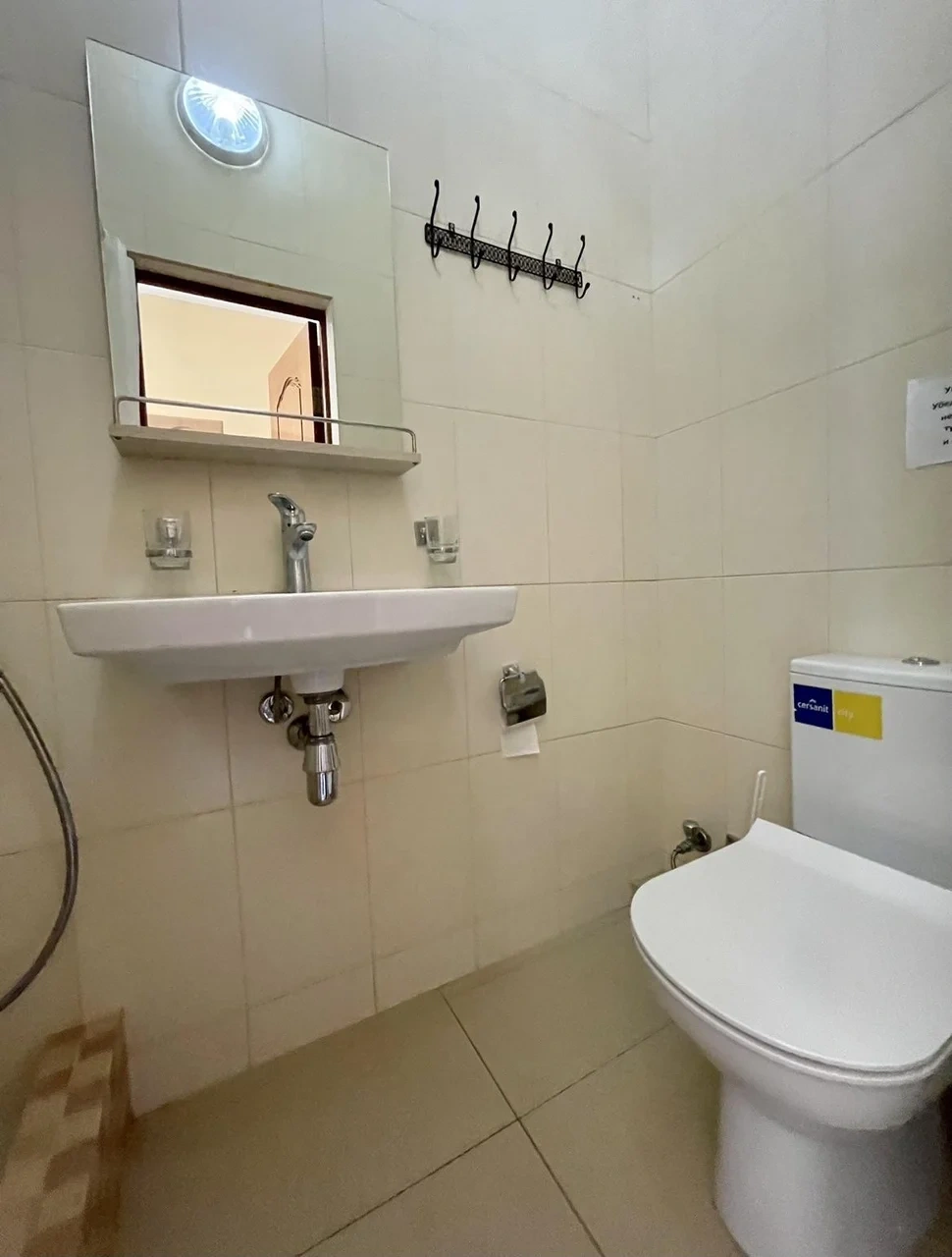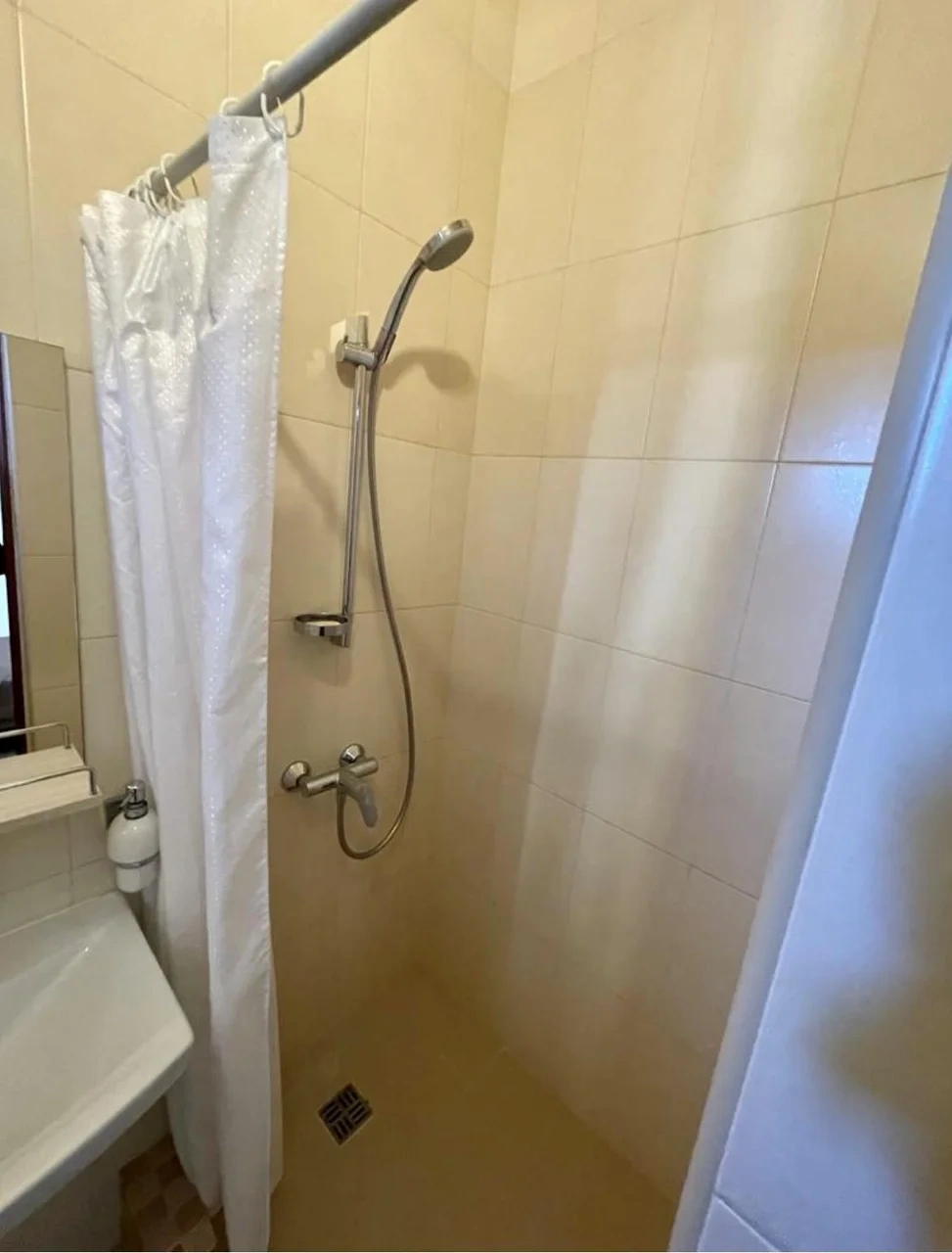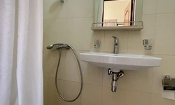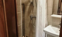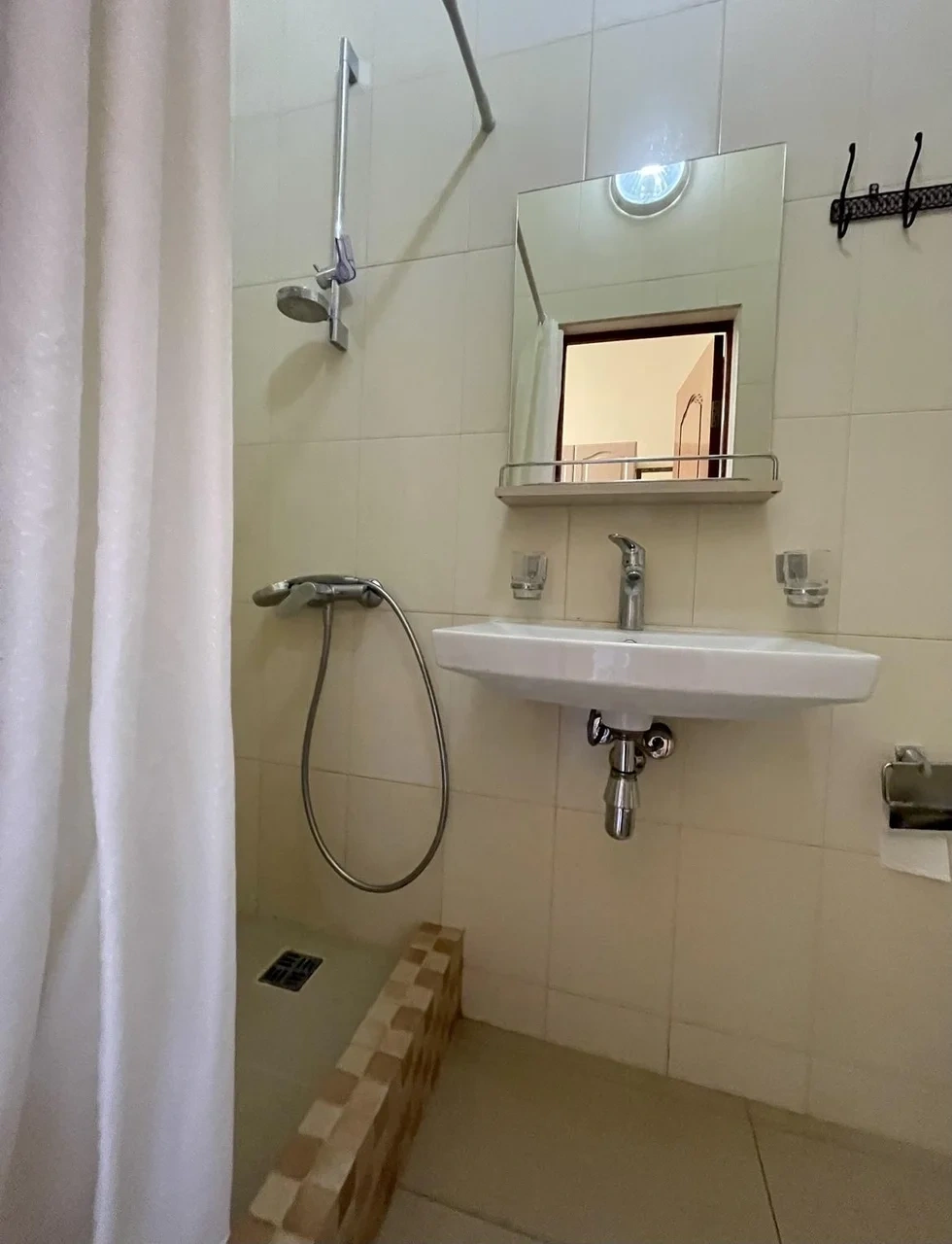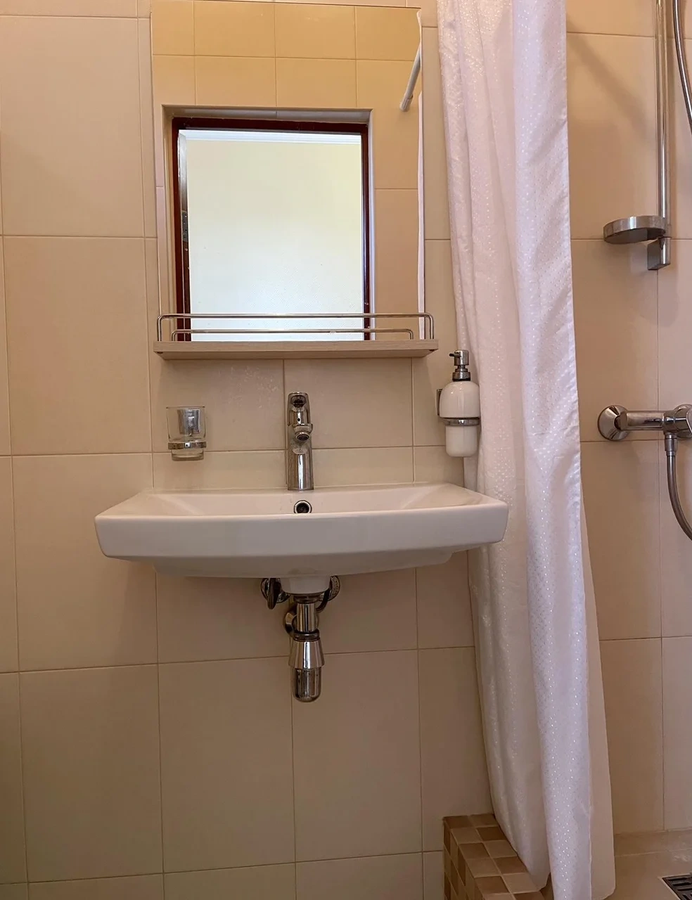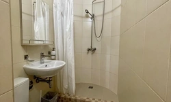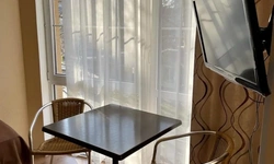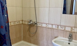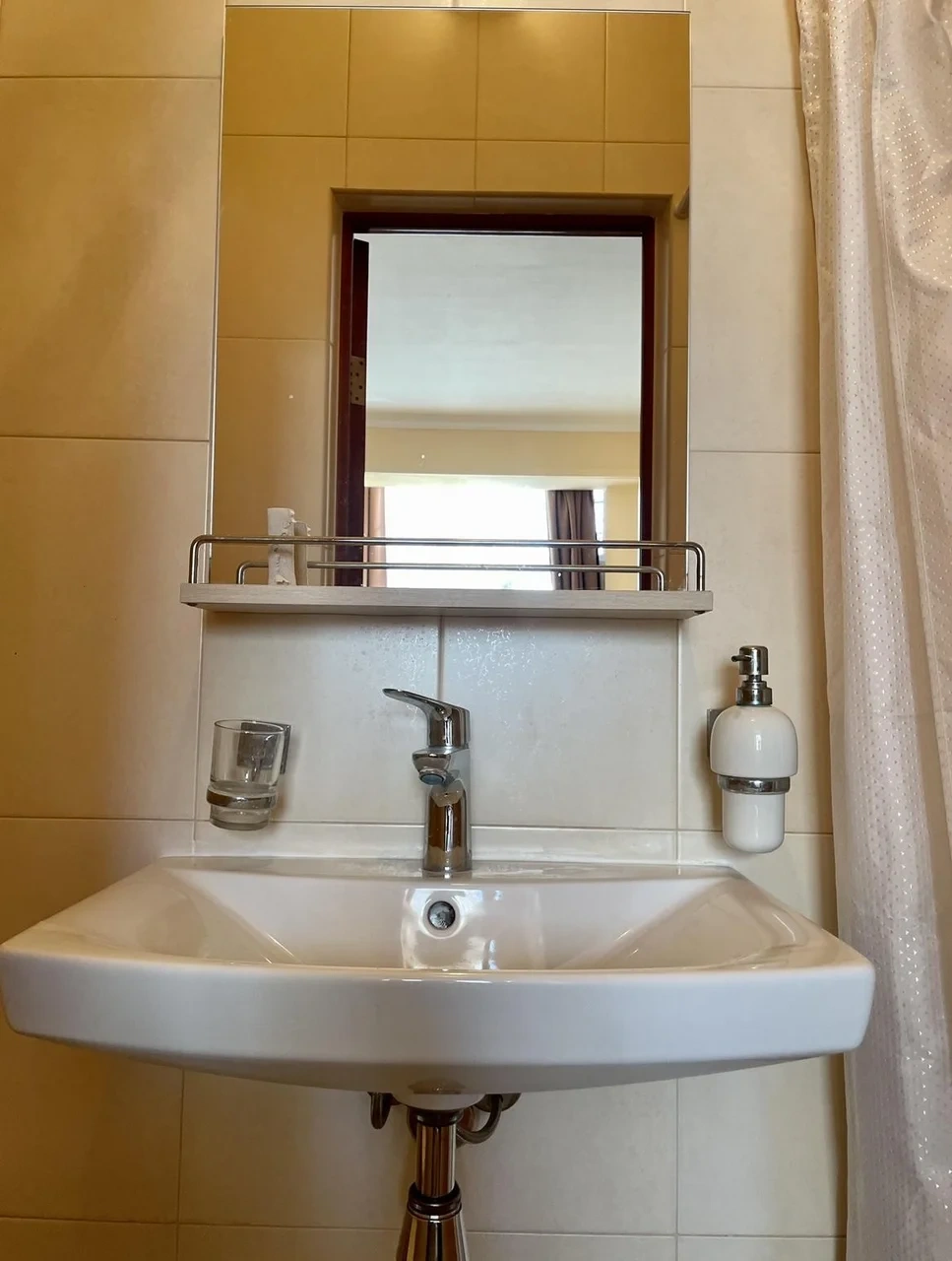 двуспальная и односпальная кровати, шкаф для одежды, тумбочки, стол, стулья, зеркало, вешалка, кондиционер, телевизор, холодильник на этаже, гладильная доска с утюгом на этаже, собственный санузел с душем, туалетная бумага, wi-fi (входит в стоимость)