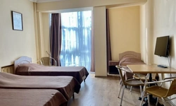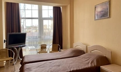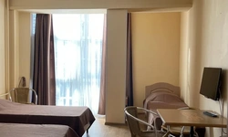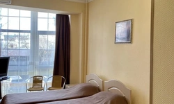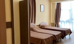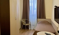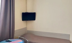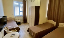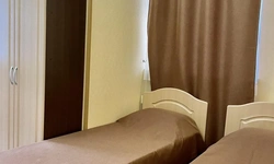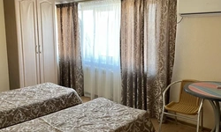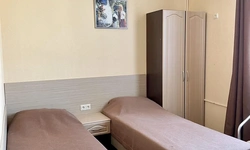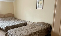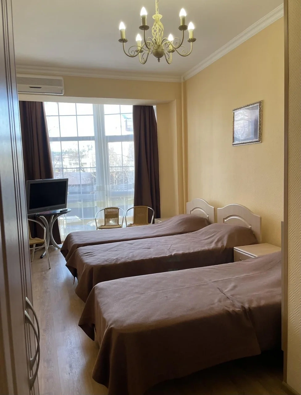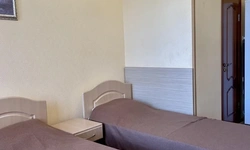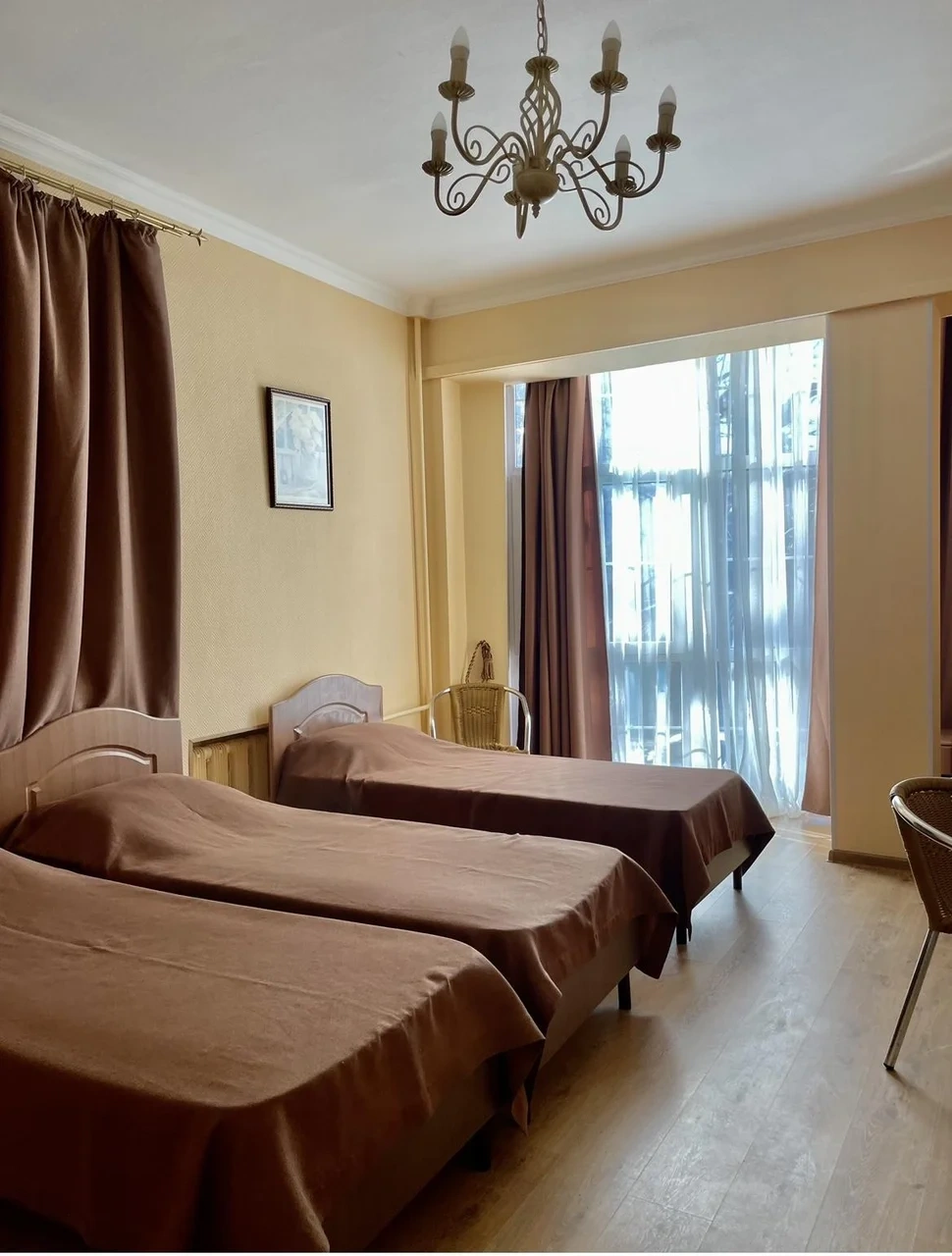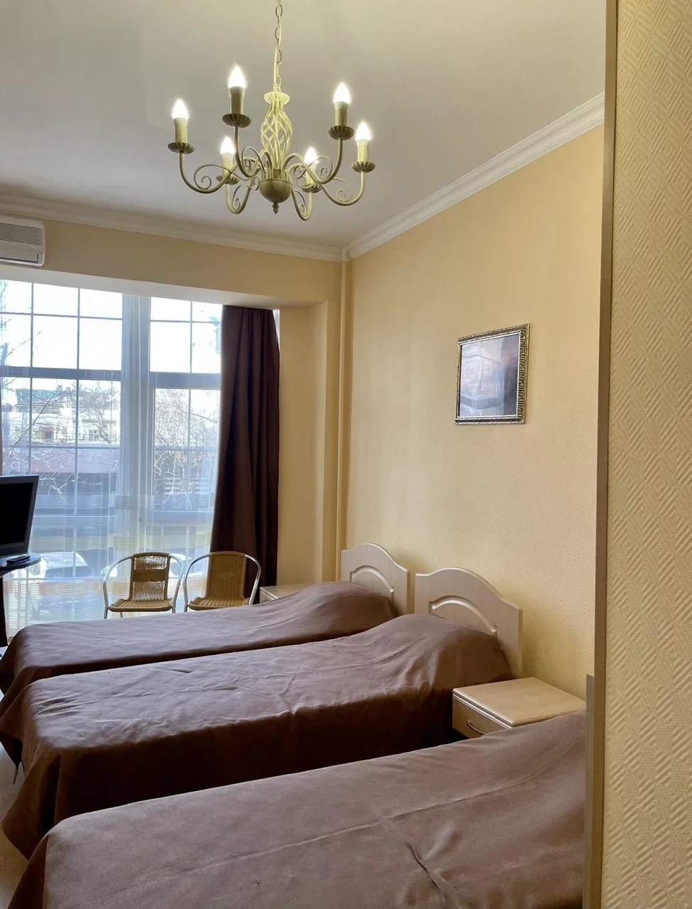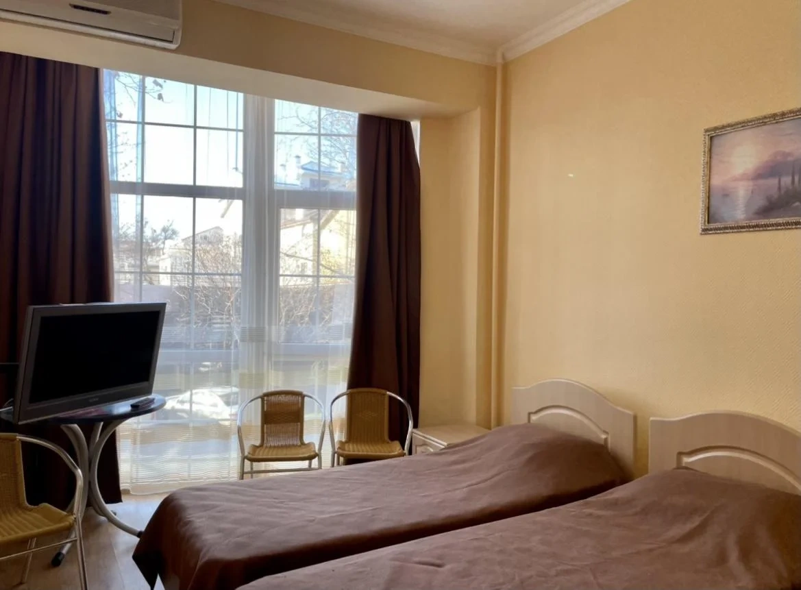 2 односпальные, или двуспальная кровать, шкаф для одежды, тумбочки, стол, стулья, зеркало, вешалка, кондиционер, телевизор, холодильник на этаже, гладильная доска с утюгом на этаже, собственный санузел с душем, туалетная бумага, wi-fi (входит в стоимость) еврораскладушка