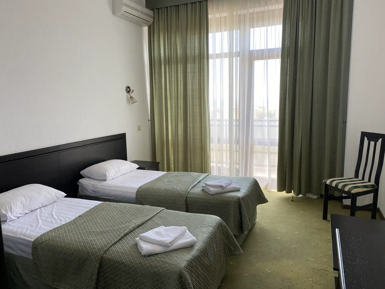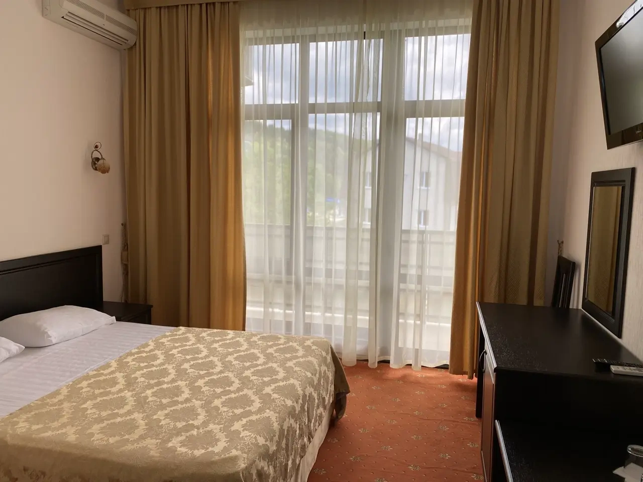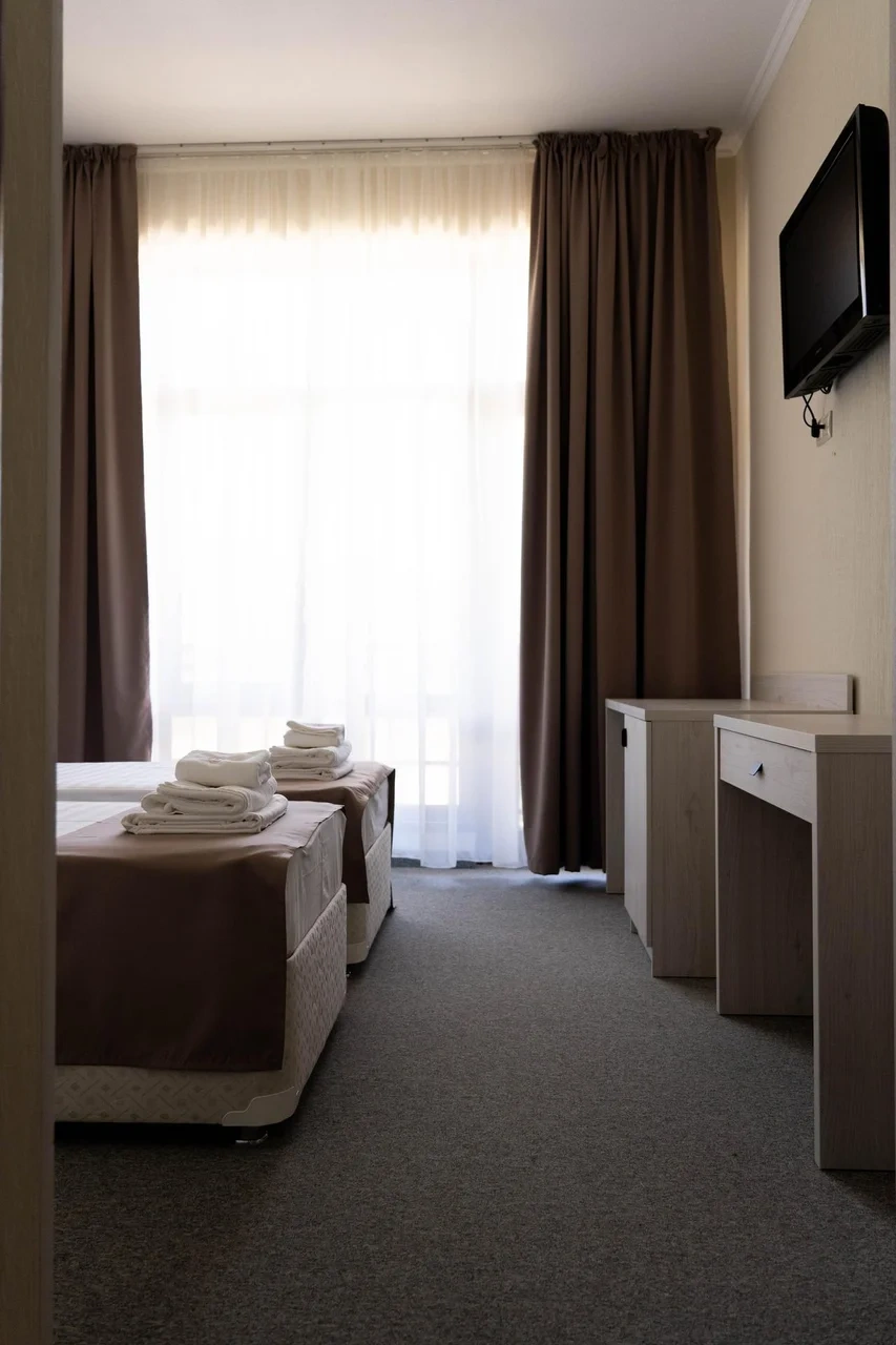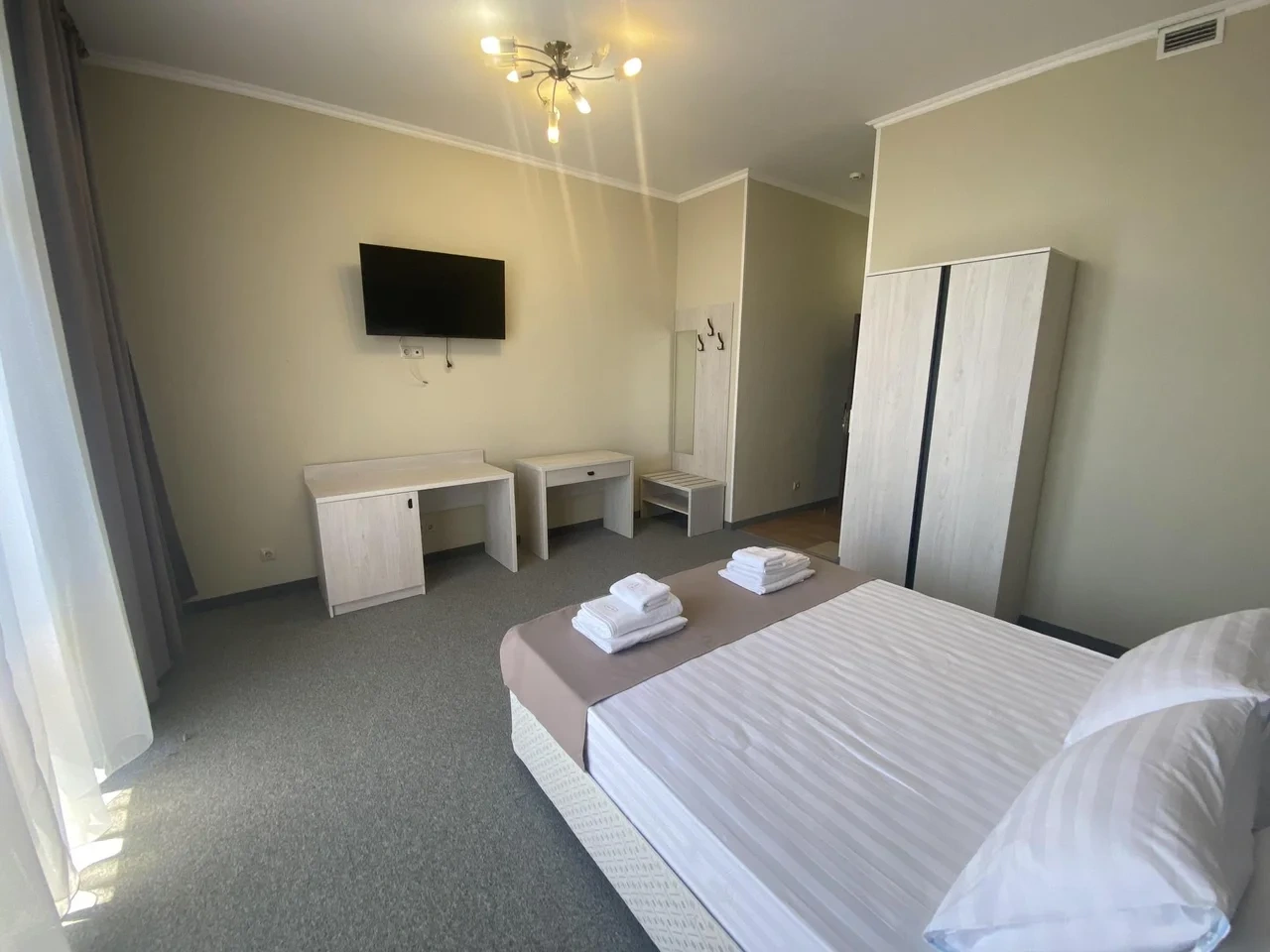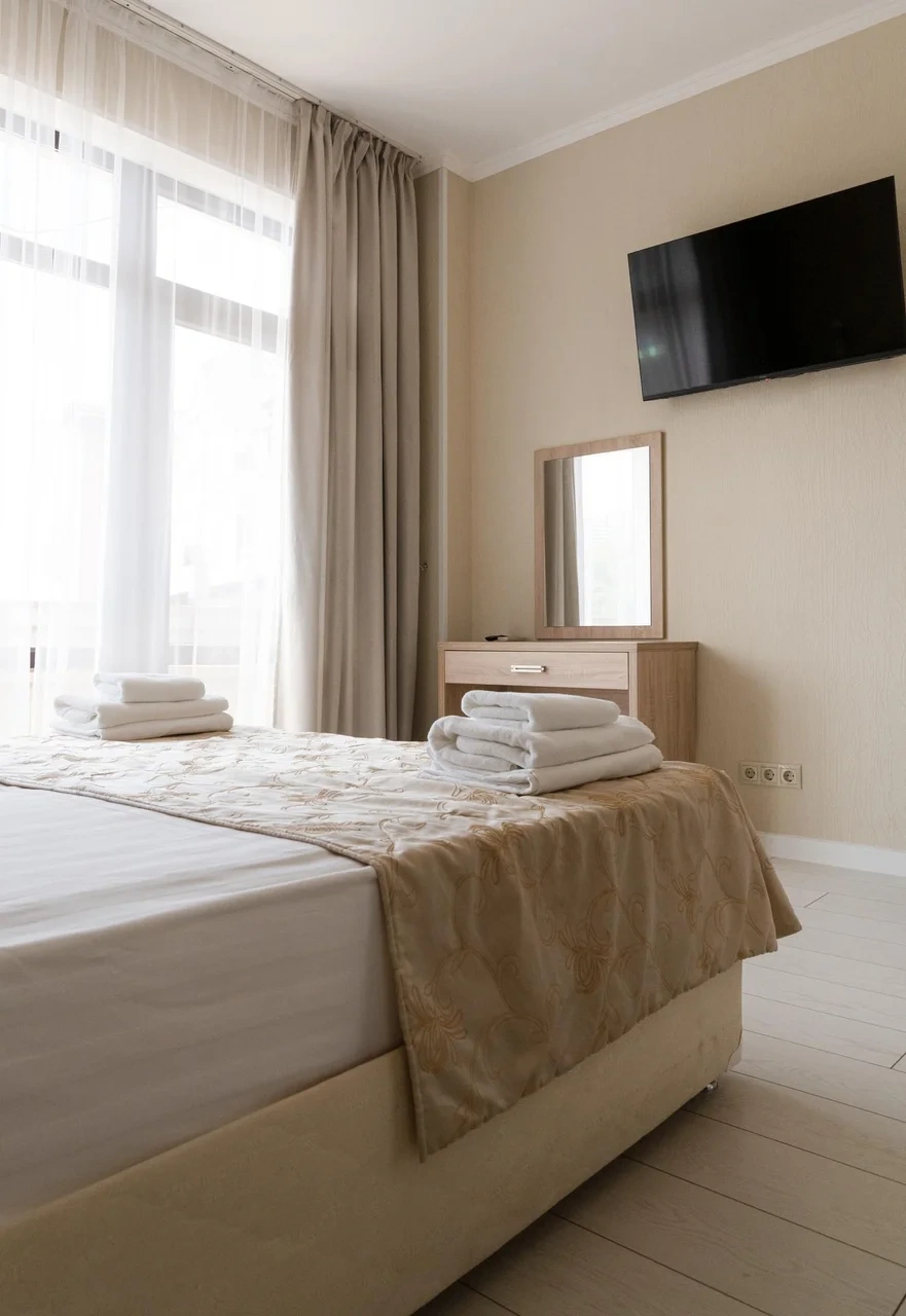 В стоимость проживания входит: - номер выбранной категории; - открытый бассейн (в сезон), 14 х 6 (1,65), без подогрева, вода пресная; - детская площадка; - круглосуточная стойка регистрации; - чайная станция, бутилированная вода (в номерах Корпус №3); - кулер с горячей и холодной водой на 1 этаже (Корпус №1, №2, №3); - предоставление утюга и гладильной доски (на этажах); - аптечка первой медицинской помощи у администратора; - wi-fi предоставляется в общественных зонах (служба приема и размещение); - автостоянка. Услуги, предоставляемые за дополнительную плату: - Кафе (Корпус №2) - Завтрак, Обед и Ужин – по меню кафе; - Бар - Пивоварня (Корпус №2) – пиво и квас собственного производства; - Аренда мангала – 3.000₽; - Депозитарий – 200₽/день; - Тапочки – 200₽; - Халат - 1.000₽; - Бритвенный набор – 100₽; - Зубной набор – 100₽; - Пляжные полотенца; - Услуги прачечной; - Дополнительная уборка номера или внеплановая смена постельного белья – 1.000₽; - Такси. Дополнительная информация: КУРОРТНЫЙ СБОР С 2024 ГОДА - 30₽ В СУТКИ ЗА 1 ЧЕЛОВЕКА. КУРЕНИЕ разрешено на территории гостиничного комплекса в строго отведенных местах КУРЕНИЕ В НОМЕРАХ ВСЕХ КАТЕГОРИЙ И НА БАЛКОНАХ СТРОГО ЗАПРЕЩЕНО! На основании с п. 5 ч. 1 ст. 12 Федерального закона от 23.02.2013 № 15-ФЗ «Об охране здоровья граждан от воздействия окружающего табачного дыма и последствий потребления табака» ШТРАФ ЗА КУРЕНИЕ В НОМЕРАХ - 5.000₽ Дети до 5 лет размещаются бесплатно, без занимания дополнительного места. При дополнительном размещении дополнительное место - 1.000₽/чел. в сутки (в не сезон - 500₽) ПРОЖИВАНИЕ С ЖИВОТНЫМИ ЗАПРЕЩЕНО!!!