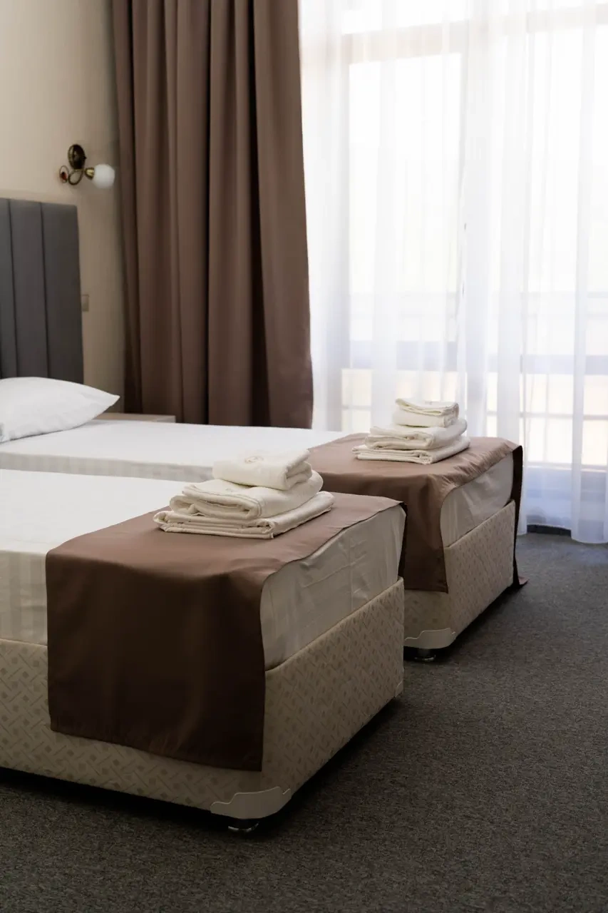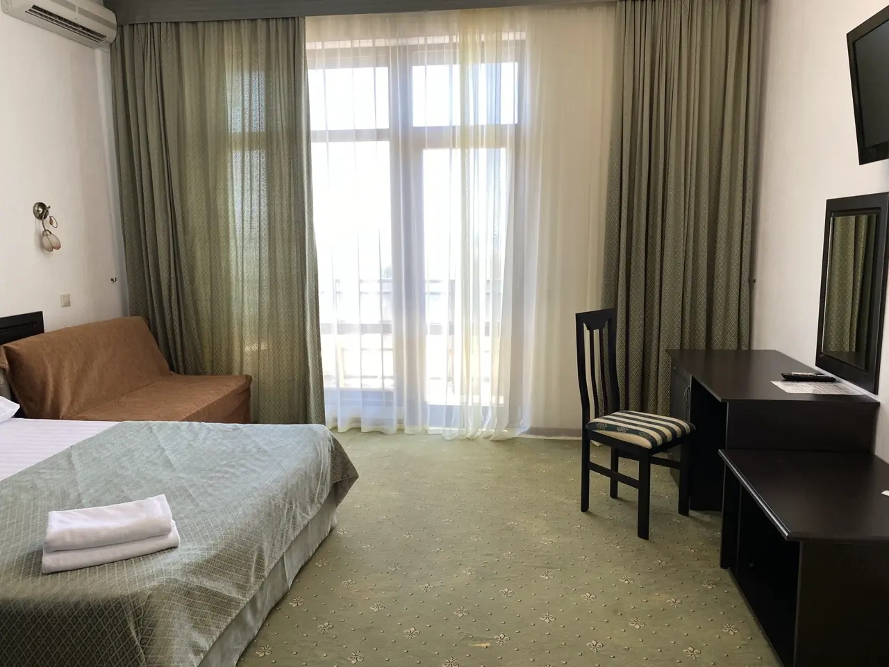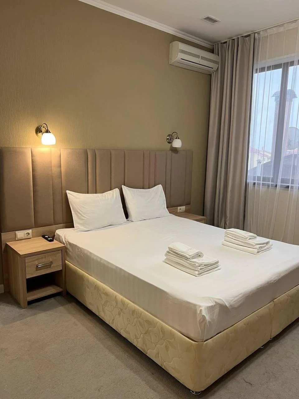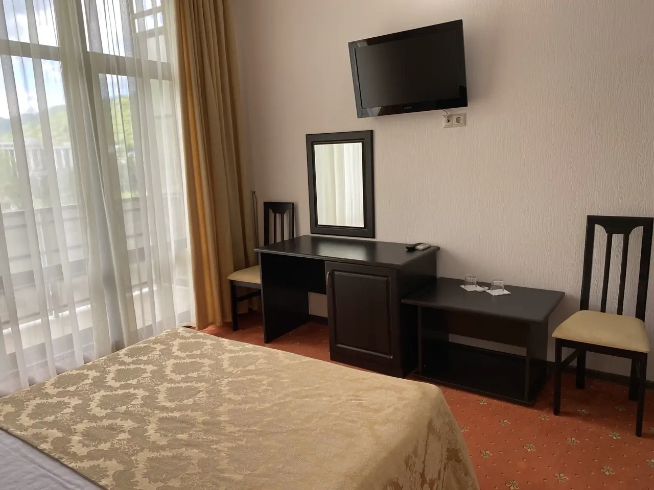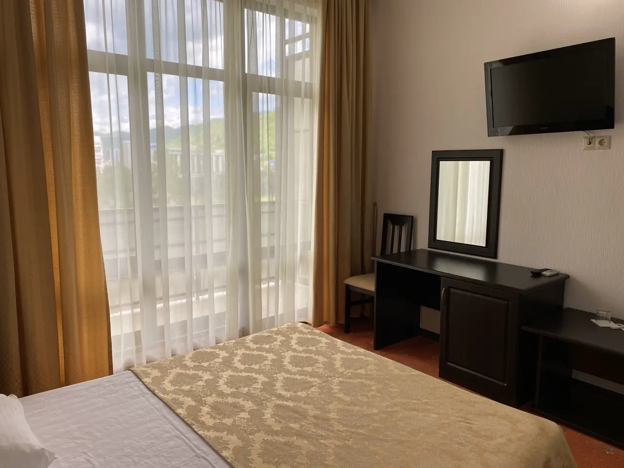 В стоимость проживания входит: - номер выбранной категории; - открытый бассейн (в сезон), 14 х 6 (1,65), без подогрева, вода пресная; - детская площадка; - круглосуточная стойка регистрации; - чайная станция, бутилированная вода (в номерах Корпус №3); - кулер с горячей и холодной водой на 1 этаже (Корпус №1, №2, №3); - предоставление утюга и гладильной доски (на этажах); - аптечка первой медицинской помощи у администратора; - wi-fi предоставляется в общественных зонах (служба приема и размещение); - автостоянка. Услуги, предоставляемые за дополнительную плату: - Кафе (Корпус №2) - Завтрак, Обед и Ужин – по меню кафе; - Бар - Пивоварня (Корпус №2) – пиво и квас собственного производства; - Аренда мангала – 3.000₽; - Депозитарий – 200₽/день; - Тапочки – 200₽; - Халат - 1.000₽; - Бритвенный набор – 100₽; - Зубной набор – 100₽; - Пляжные полотенца; - Услуги прачечной; - Дополнительная уборка номера или внеплановая смена постельного белья – 1.000₽; - Такси. Дополнительная информация: КУРОРТНЫЙ СБОР С 2024 ГОДА - 30₽ В СУТКИ ЗА 1 ЧЕЛОВЕКА. КУРЕНИЕ разрешено на территории гостиничного комплекса в строго отведенных местах КУРЕНИЕ В НОМЕРАХ ВСЕХ КАТЕГОРИЙ И НА БАЛКОНАХ СТРОГО ЗАПРЕЩЕНО! На основании с п. 5 ч. 1 ст. 12 Федерального закона от 23.02.2013 № 15-ФЗ «Об охране здоровья граждан от воздействия окружающего табачного дыма и последствий потребления табака» ШТРАФ ЗА КУРЕНИЕ В НОМЕРАХ - 5.000₽ Дети до 5 лет размещаются бесплатно, без занимания дополнительного места. При дополнительном размещении дополнительное место - 1.000₽/чел. в сутки (в не сезон - 500₽) ПРОЖИВАНИЕ С ЖИВОТНЫМИ ЗАПРЕЩЕНО!!!