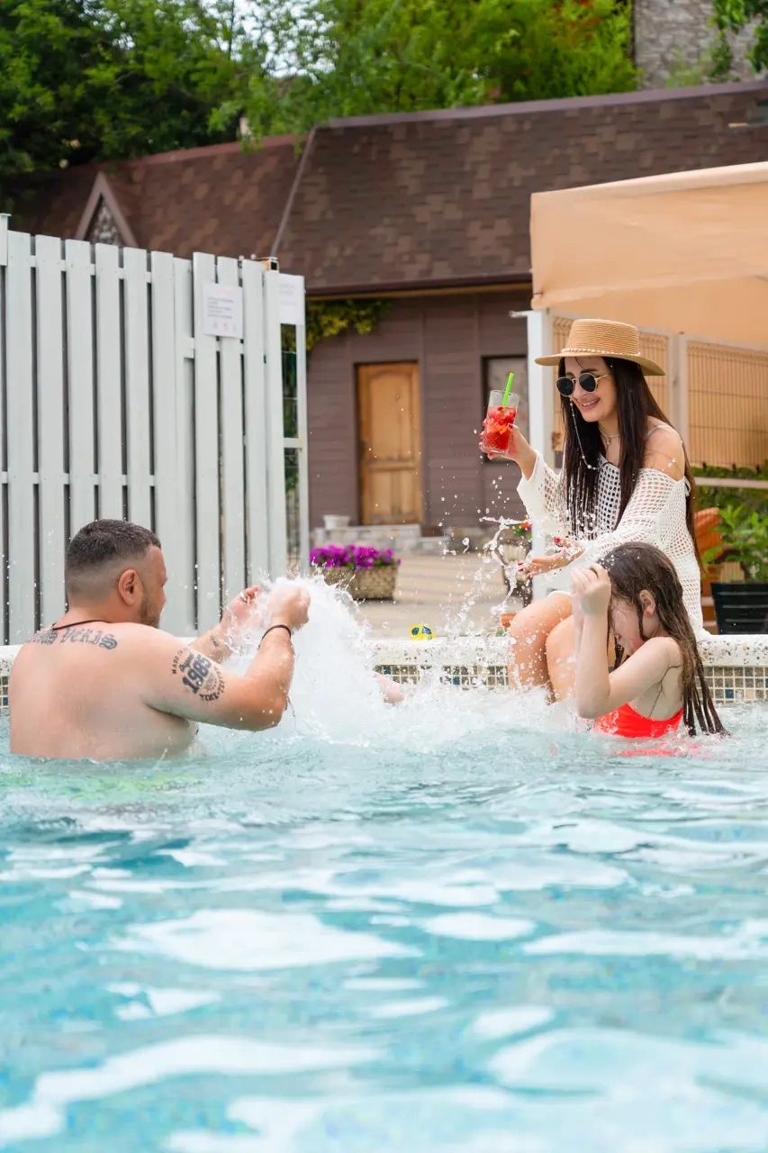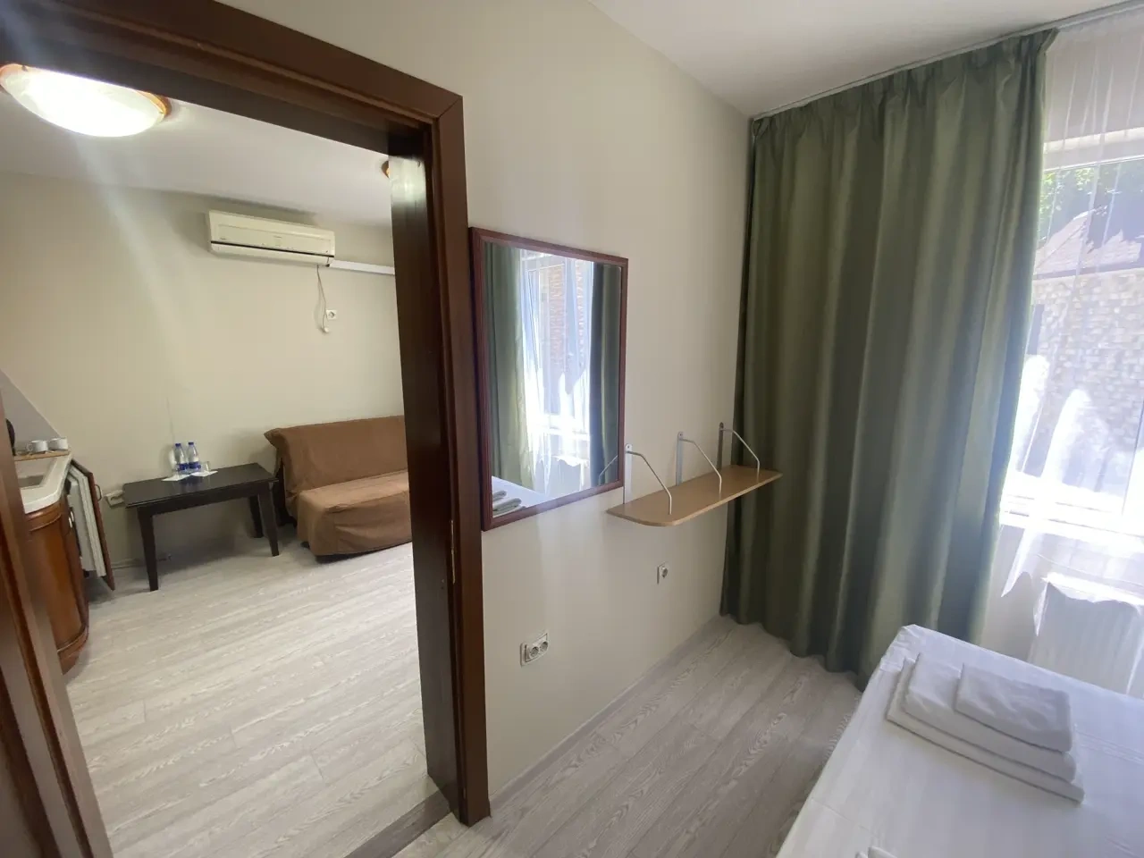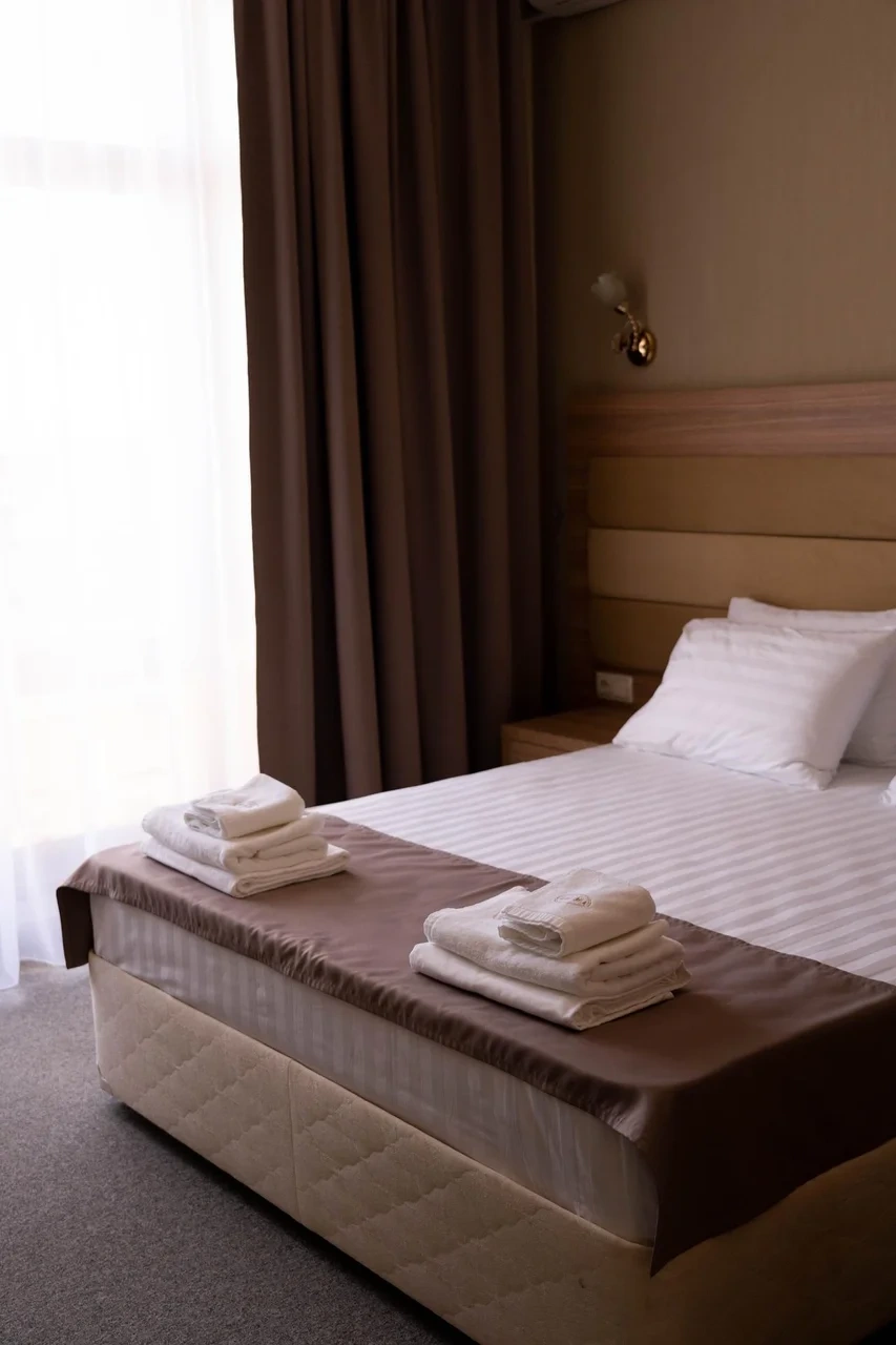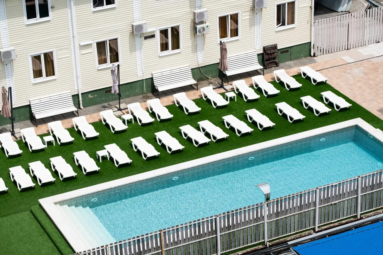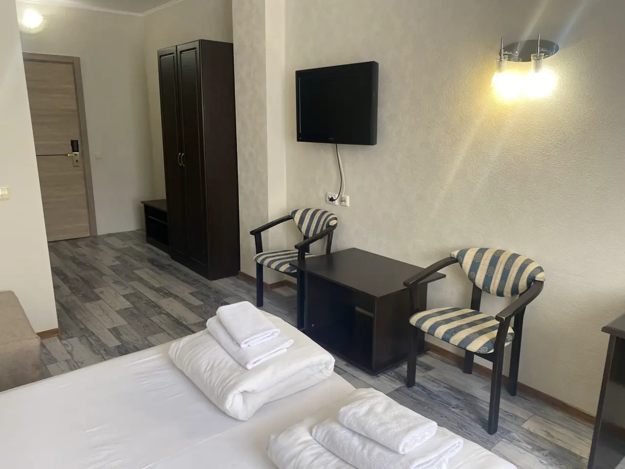 В стоимость проживания входит: - номер выбранной категории; - открытый бассейн (в сезон), 14 х 6 (1,65), без подогрева, вода пресная; - детская площадка; - круглосуточная стойка регистрации; - чайная станция, бутилированная вода (в номерах Корпус №3); - кулер с горячей и холодной водой на 1 этаже (Корпус №1, №2, №3); - предоставление утюга и гладильной доски (на этажах); - аптечка первой медицинской помощи у администратора; - wi-fi предоставляется в общественных зонах (служба приема и размещение); - автостоянка. Услуги, предоставляемые за дополнительную плату: - Кафе (Корпус №2) - Завтрак, Обед и Ужин – по меню кафе; - Бар - Пивоварня (Корпус №2) – пиво и квас собственного производства; - Аренда мангала – 3.000₽; - Депозитарий – 200₽/день; - Тапочки – 200₽; - Халат - 1.000₽; - Бритвенный набор – 100₽; - Зубной набор – 100₽; - Пляжные полотенца; - Услуги прачечной; - Дополнительная уборка номера или внеплановая смена постельного белья – 1.000₽; - Такси. Дополнительная информация: КУРОРТНЫЙ СБОР С 2024 ГОДА - 30₽ В СУТКИ ЗА 1 ЧЕЛОВЕКА. КУРЕНИЕ разрешено на территории гостиничного комплекса в строго отведенных местах КУРЕНИЕ В НОМЕРАХ ВСЕХ КАТЕГОРИЙ И НА БАЛКОНАХ СТРОГО ЗАПРЕЩЕНО! На основании с п. 5 ч. 1 ст. 12 Федерального закона от 23.02.2013 № 15-ФЗ «Об охране здоровья граждан от воздействия окружающего табачного дыма и последствий потребления табака» ШТРАФ ЗА КУРЕНИЕ В НОМЕРАХ - 5.000₽ Дети до 5 лет размещаются бесплатно, без занимания дополнительного места. При дополнительном размещении дополнительное место - 1.000₽/чел. в сутки (в не сезон - 500₽) ПРОЖИВАНИЕ С ЖИВОТНЫМИ ЗАПРЕЩЕНО!!!