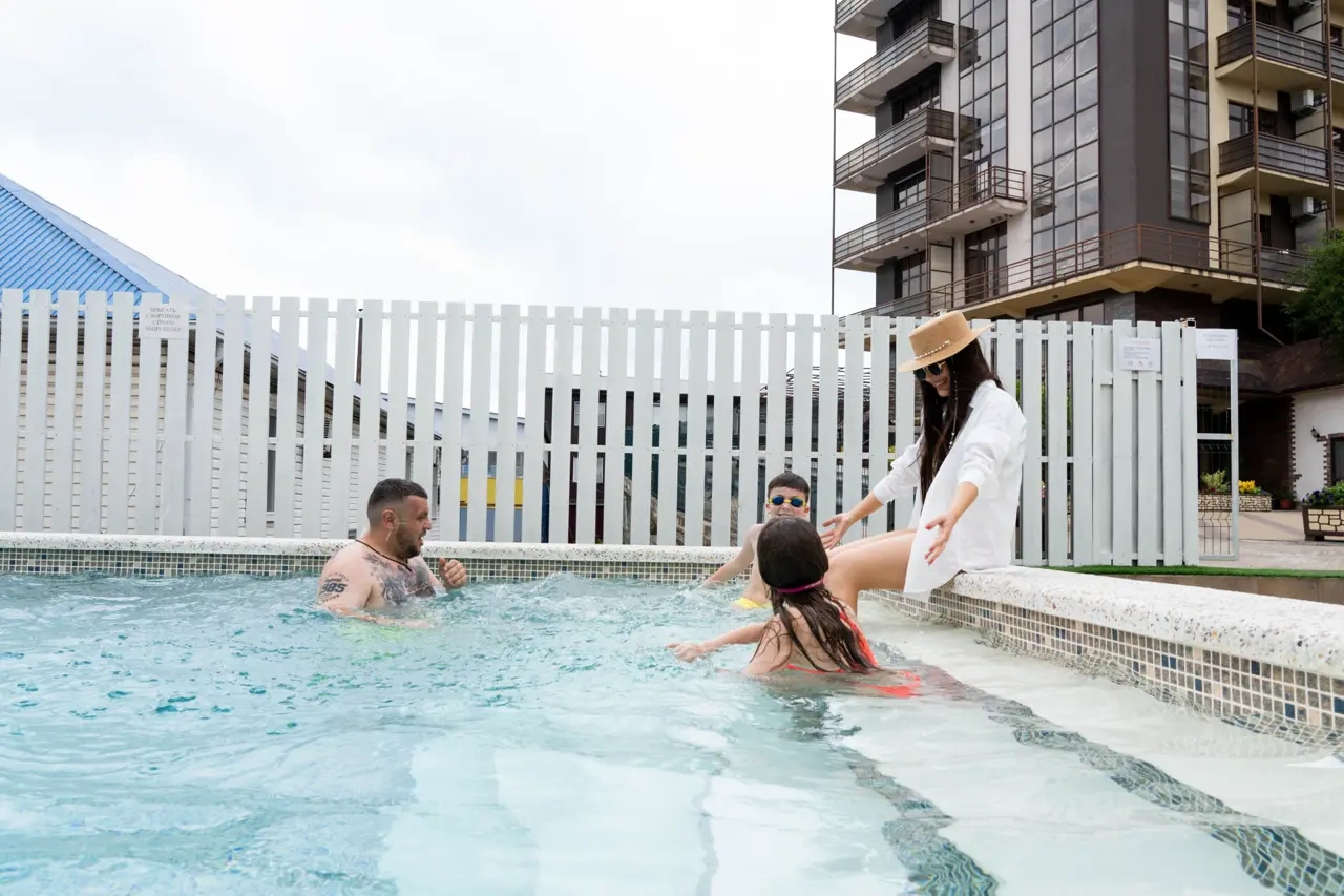 - открытый бассейн (в сезон), 14 х 6 (1,65), без подогрева, вода пресная;