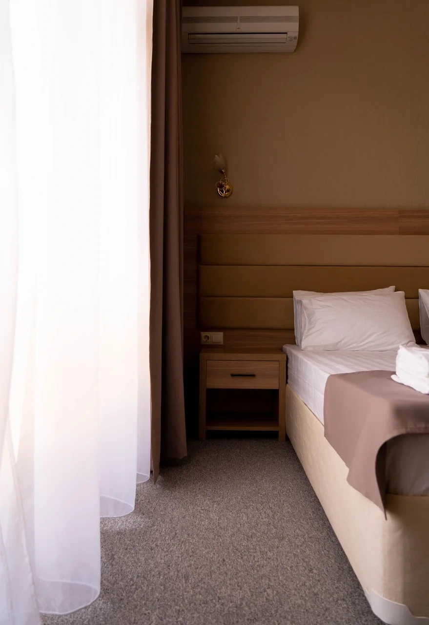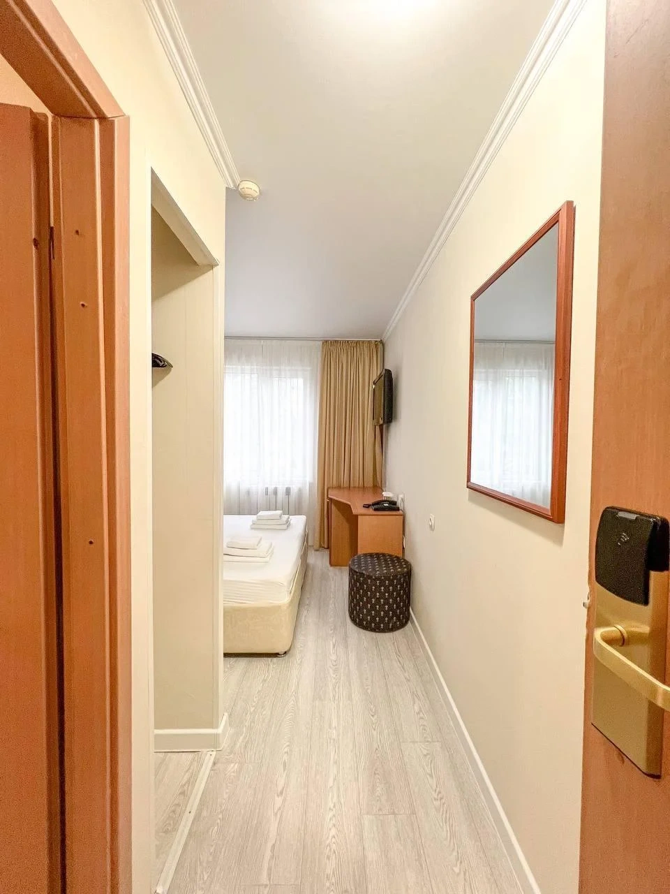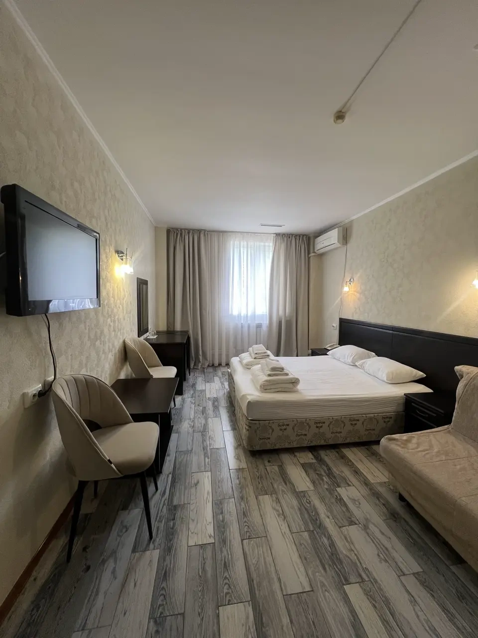 Номера укомплектованы по евро - стандарту, в гостинице действует система электронных замков.