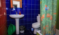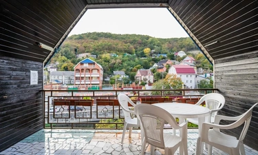 Окно в номере не имеет положения форточки, при сильном ветре не открыть. В номере нет геля для душа, шампуня, фена! Даже туалетная бумага отсутствует. Нет полотенца для ног, тапочек. Посуда грязная: на блюдцах волосы от предыдущих жильцов. Умывальник угловой, очень маленький. Даже зубную пасту и щётку не разместить. Балконов нету. Белье можно просушить на общей террасе второго этажа, если есть место.