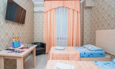 Не далеко от центра города, вблизи от ласкового моря, с его незабываемыми пейзажами, не раз воспетыми знаменитыми художниками, уютно расположилась гостиница. Прогулки по длинным бесконечным пляжам распростёртых у подножья величественных гор, с его рельефными ландшафтами, могут показаться бесконечными. А тенистые, зелёные улицы, парки, усыпанные цветами, набережные с удобными лавочками, поющие фонтаны, восхищающие буйством огней, разнообразие кафе, магазинов, развлекательных заведений украсят ваш досуг.