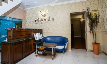 В стоимость номера входили завтраки. Питание было в кафе «Магнолия» рядом с отелем. Завтраки – на выбор из меню. Но по количеству и качеству блюд вполне хватало. В этом же кафе есть и обеды и ужины, а для тех, кто остановился в этом отеле – 10 % скидка. Блюда большие, продукты свежие, еда в целом вкусная.