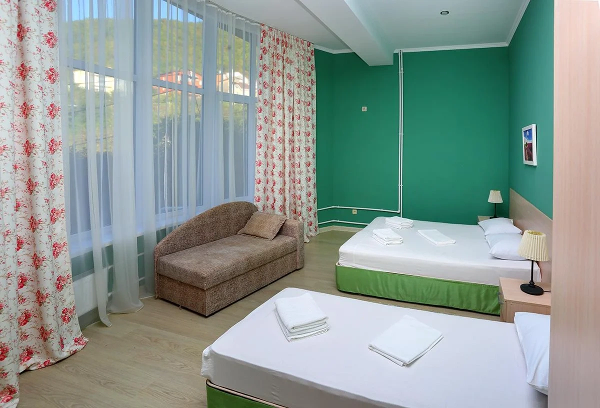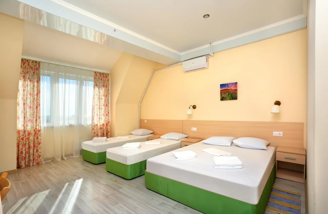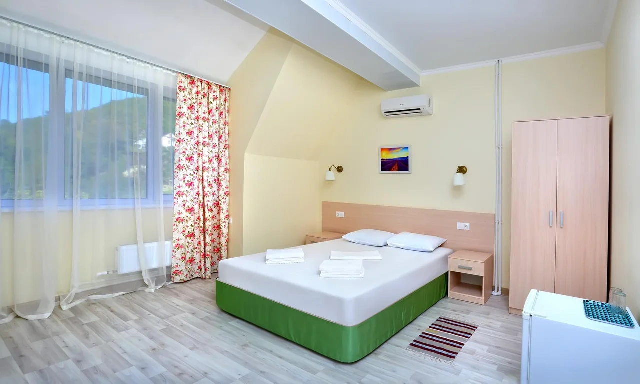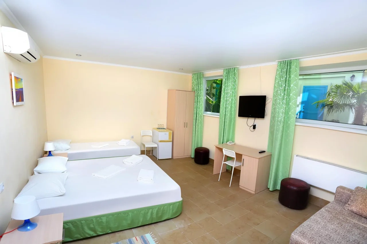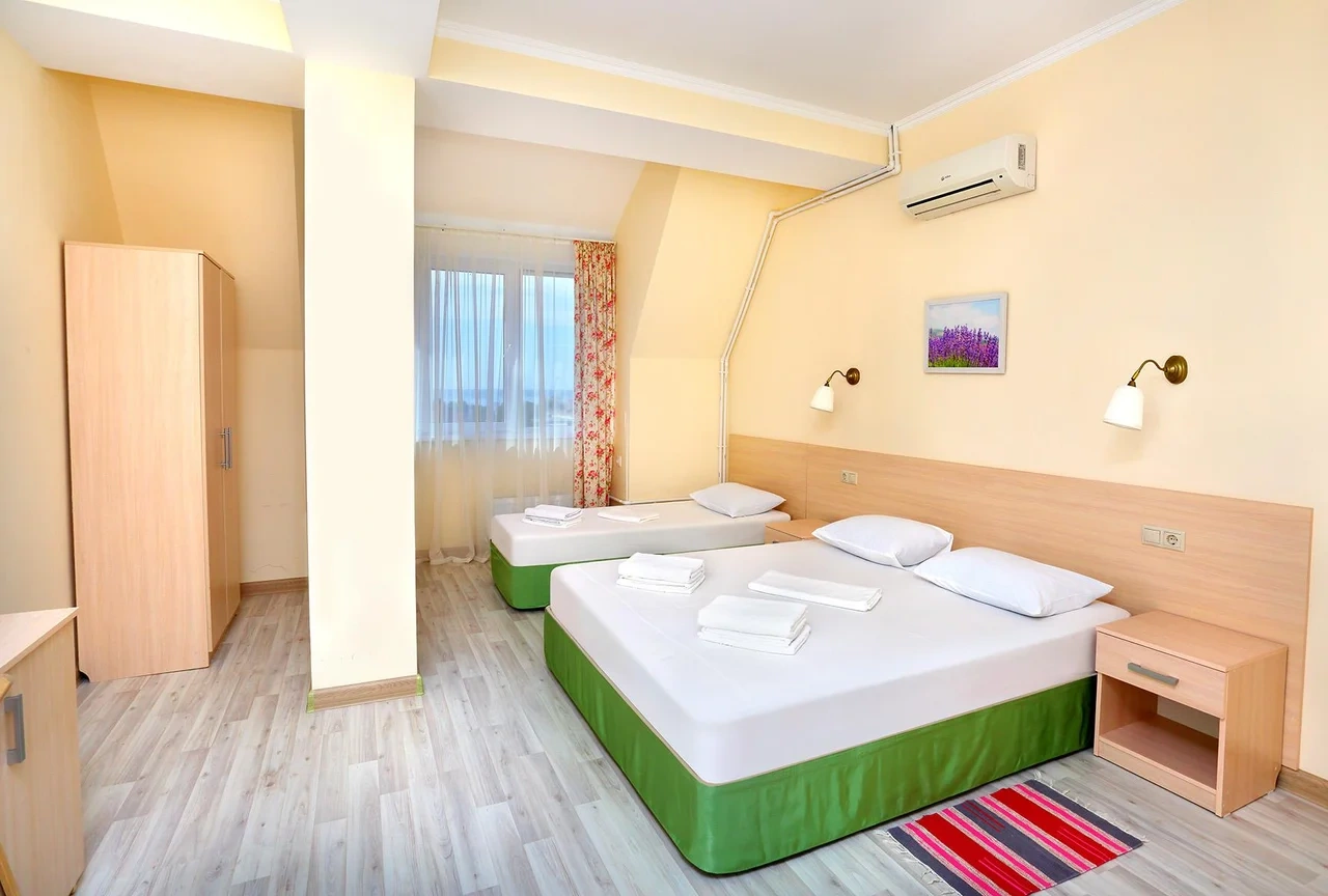 Отдыхали семьёй, 2 взрослых и 2 детей с 01.09.2025 по 06.09.2025. Впечатления от отеля прекрасные: номер двухкомнатный комфортный, 4-х местный с балконом. Номер чистый, вид с балкона шикарный на море и горы. На балконе есть столик и стулья, есть возможность провести отлично вечер. В номере 2 кондиционера, холодильник. На территории отличная столовая, очень вкусная еда. До моря минут 15-20 неспешным шагом, дорога к морю через рынок, в принципе нас не напрягала, ходили по 2 раза в день к морю и обратно, магазин Магнит в шаговой доступности. У отеля есть своя парковка за отдельную плату. На территории строят бассейн, планируют ввести в эксплуатацию в следующем году Рекомендую данный отель. По возможности проведем отпуск в данном отеле в следующем году.