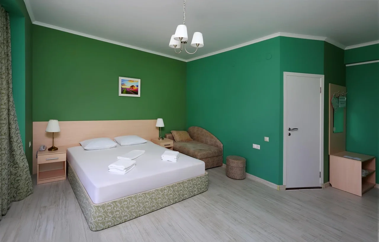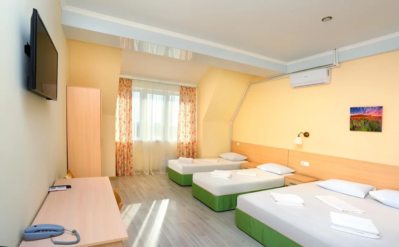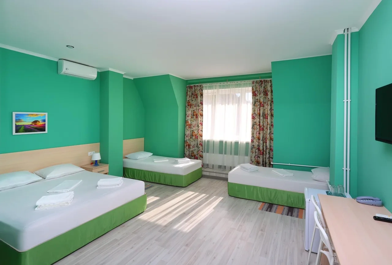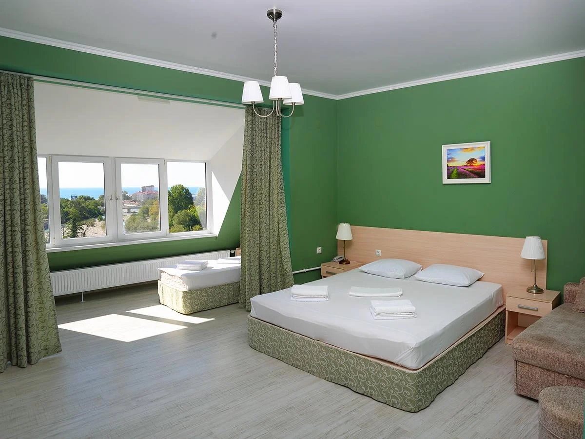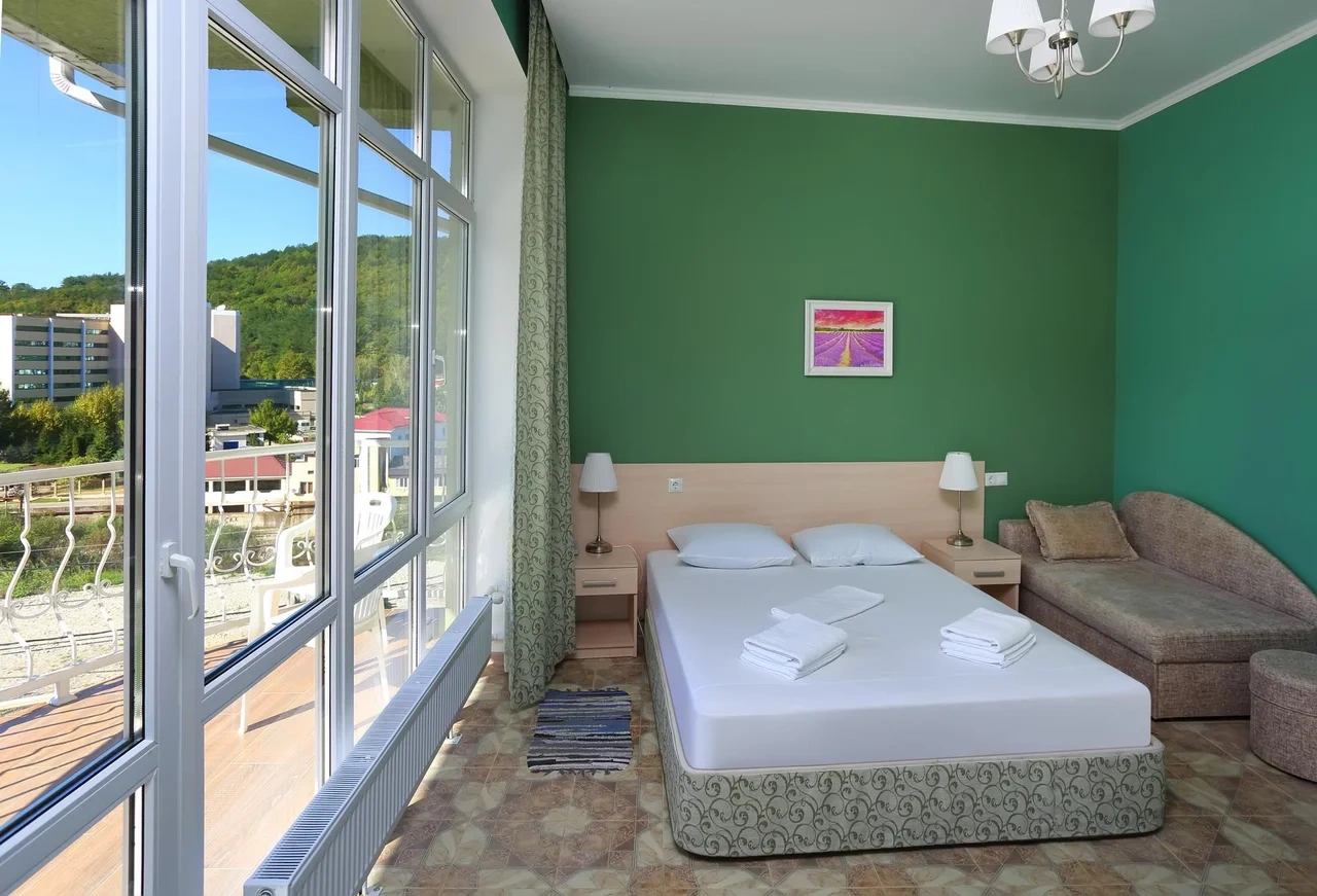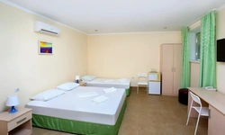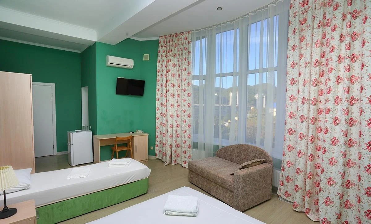 Отдыхали семьёй, 2 взрослых и 2 детей с 01.09.2025 по 06.09.2025. Впечатления от отеля прекрасные: номер двухкомнатный комфортный, 4-х местный с балконом. Номер чистый, вид с балкона шикарный на море и горы. На балконе есть столик и стулья, есть возможность провести отлично вечер. В номере 2 кондиционера, холодильник. На территории отличная столовая, очень вкусная еда. До моря минут 15-20 неспешным шагом, дорога к морю через рынок, в принципе нас не напрягала, ходили по 2 раза в день к морю и обратно, магазин Магнит в шаговой доступности. У отеля есть своя парковка за отдельную плату. На территории строят бассейн, планируют ввести в эксплуатацию в следующем году Рекомендую данный отель. По возможности проведем отпуск в данном отеле в следующем году.