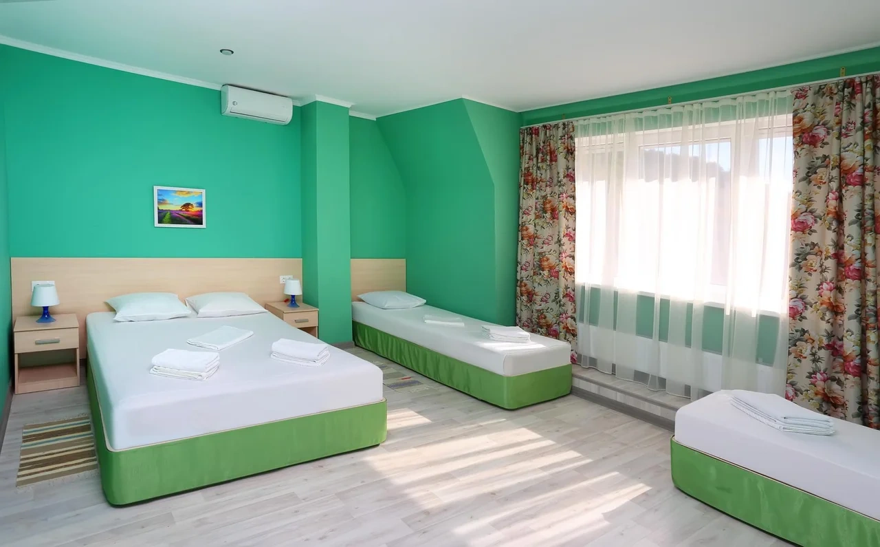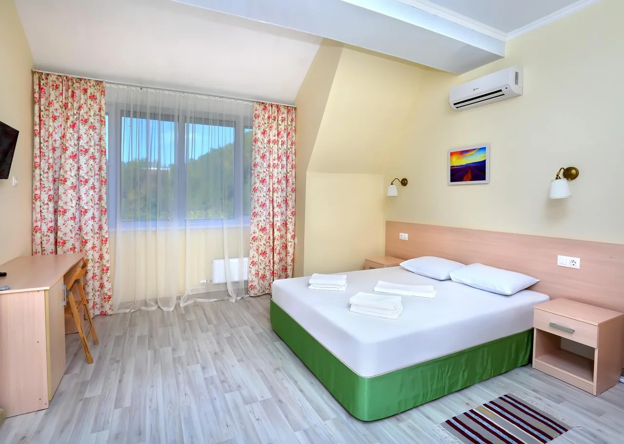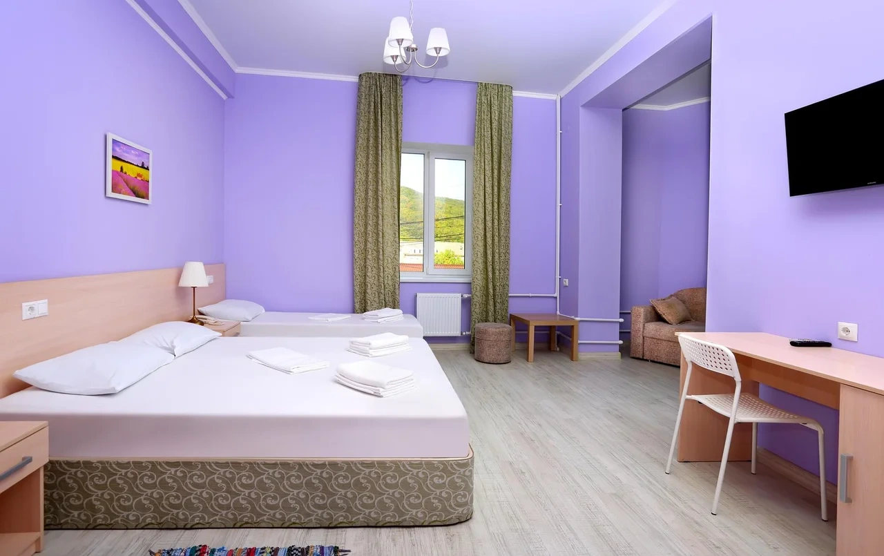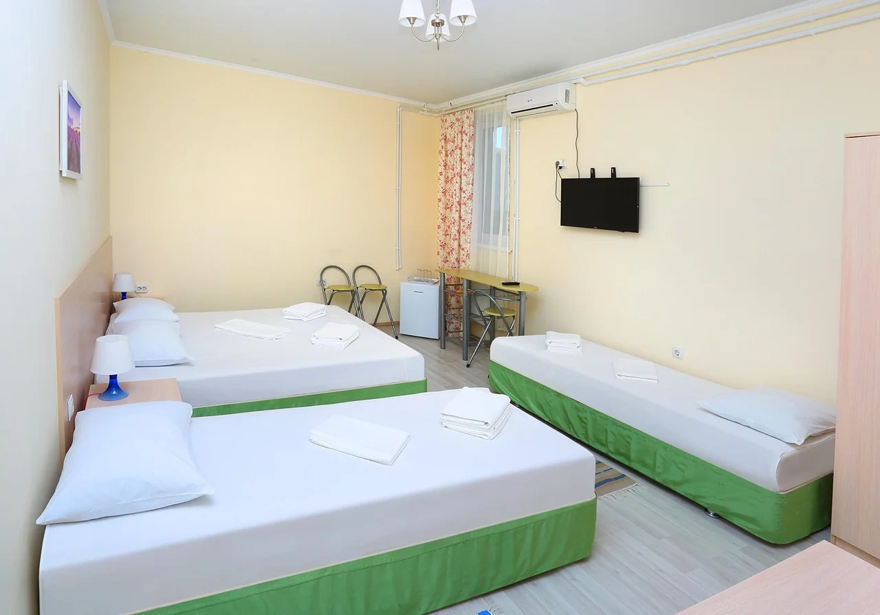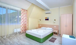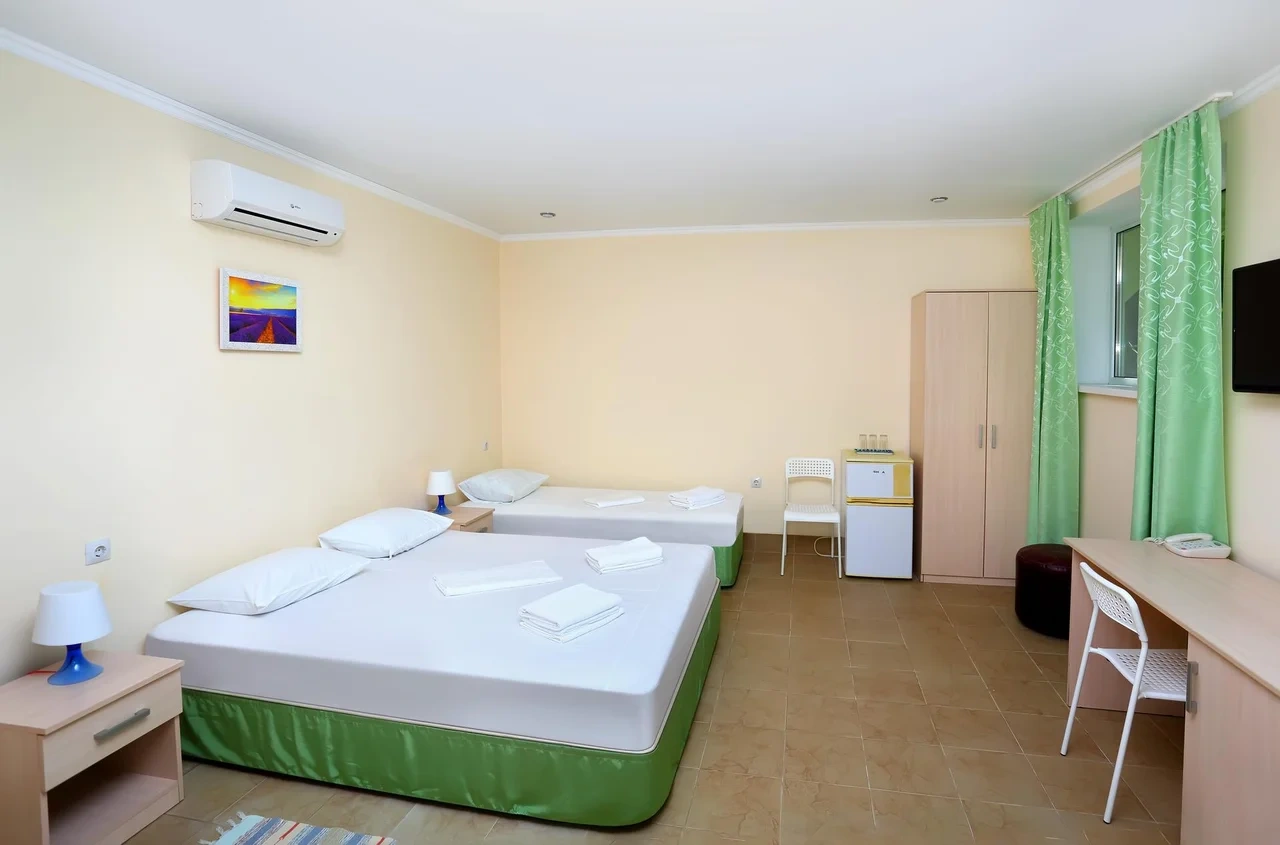 Отдыхали семьёй, 2 взрослых и 2 детей с 01.09.2025 по 06.09.2025. Впечатления от отеля прекрасные: номер двухкомнатный комфортный, 4-х местный с балконом. Номер чистый, вид с балкона шикарный на море и горы. На балконе есть столик и стулья, есть возможность провести отлично вечер. В номере 2 кондиционера, холодильник. На территории отличная столовая, очень вкусная еда. До моря минут 15-20 неспешным шагом, дорога к морю через рынок, в принципе нас не напрягала, ходили по 2 раза в день к морю и обратно, магазин Магнит в шаговой доступности. У отеля есть своя парковка за отдельную плату. На территории строят бассейн, планируют ввести в эксплуатацию в следующем году Рекомендую данный отель. По возможности проведем отпуск в данном отеле в следующем году.