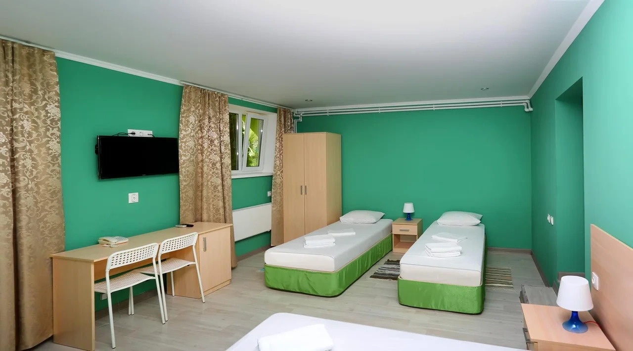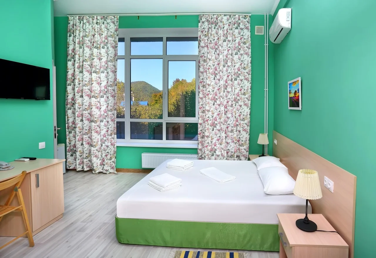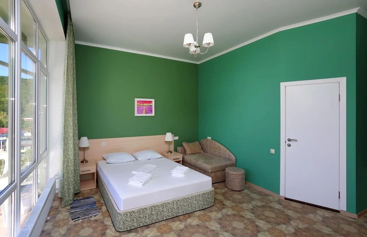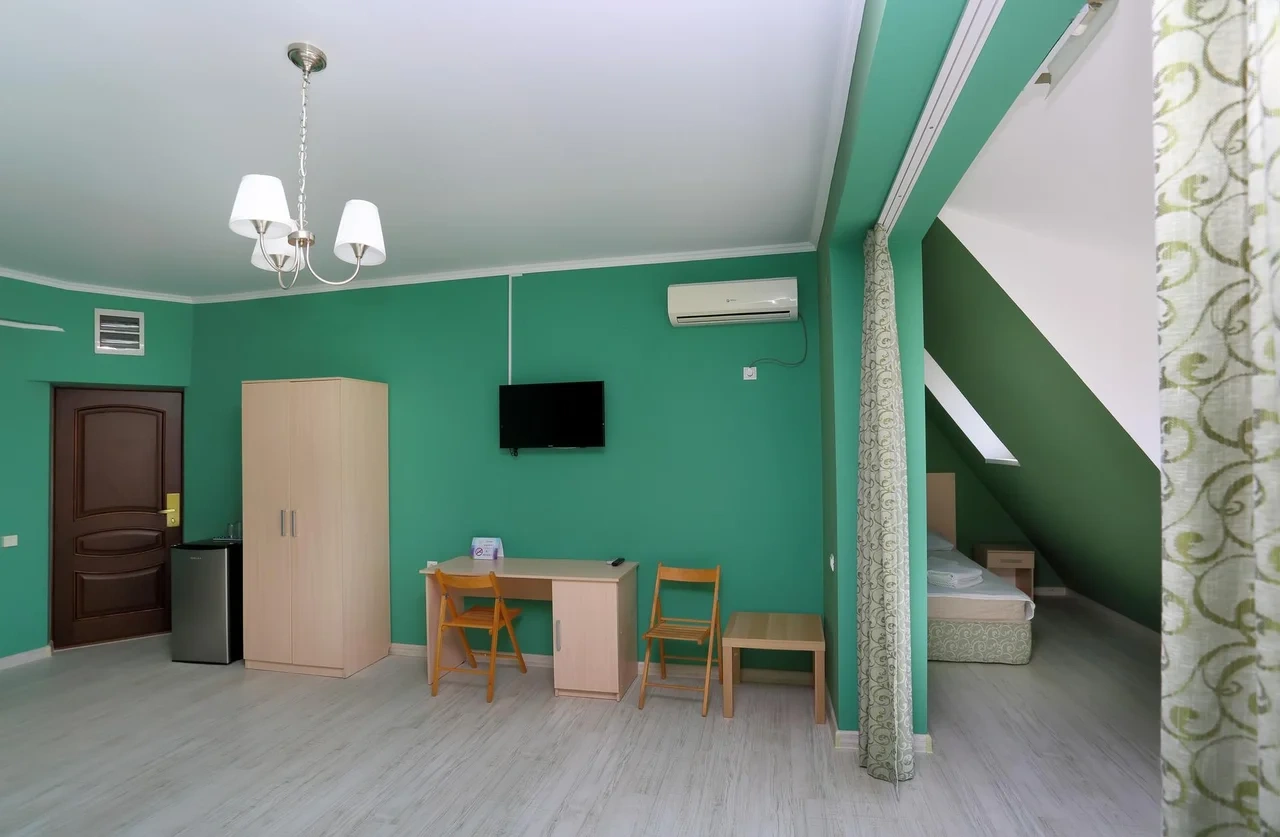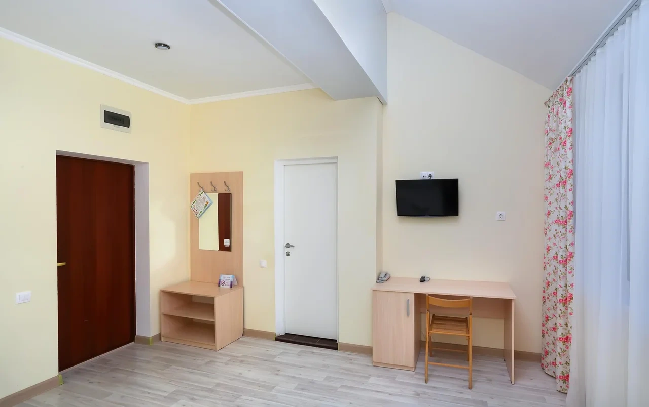 Отдыхали семьёй, 2 взрослых и 2 детей с 01.09.2025 по 06.09.2025. Впечатления от отеля прекрасные: номер двухкомнатный комфортный, 4-х местный с балконом. Номер чистый, вид с балкона шикарный на море и горы. На балконе есть столик и стулья, есть возможность провести отлично вечер. В номере 2 кондиционера, холодильник. На территории отличная столовая, очень вкусная еда. До моря минут 15-20 неспешным шагом, дорога к морю через рынок, в принципе нас не напрягала, ходили по 2 раза в день к морю и обратно, магазин Магнит в шаговой доступности. У отеля есть своя парковка за отдельную плату. На территории строят бассейн, планируют ввести в эксплуатацию в следующем году Рекомендую данный отель. По возможности проведем отпуск в данном отеле в следующем году.