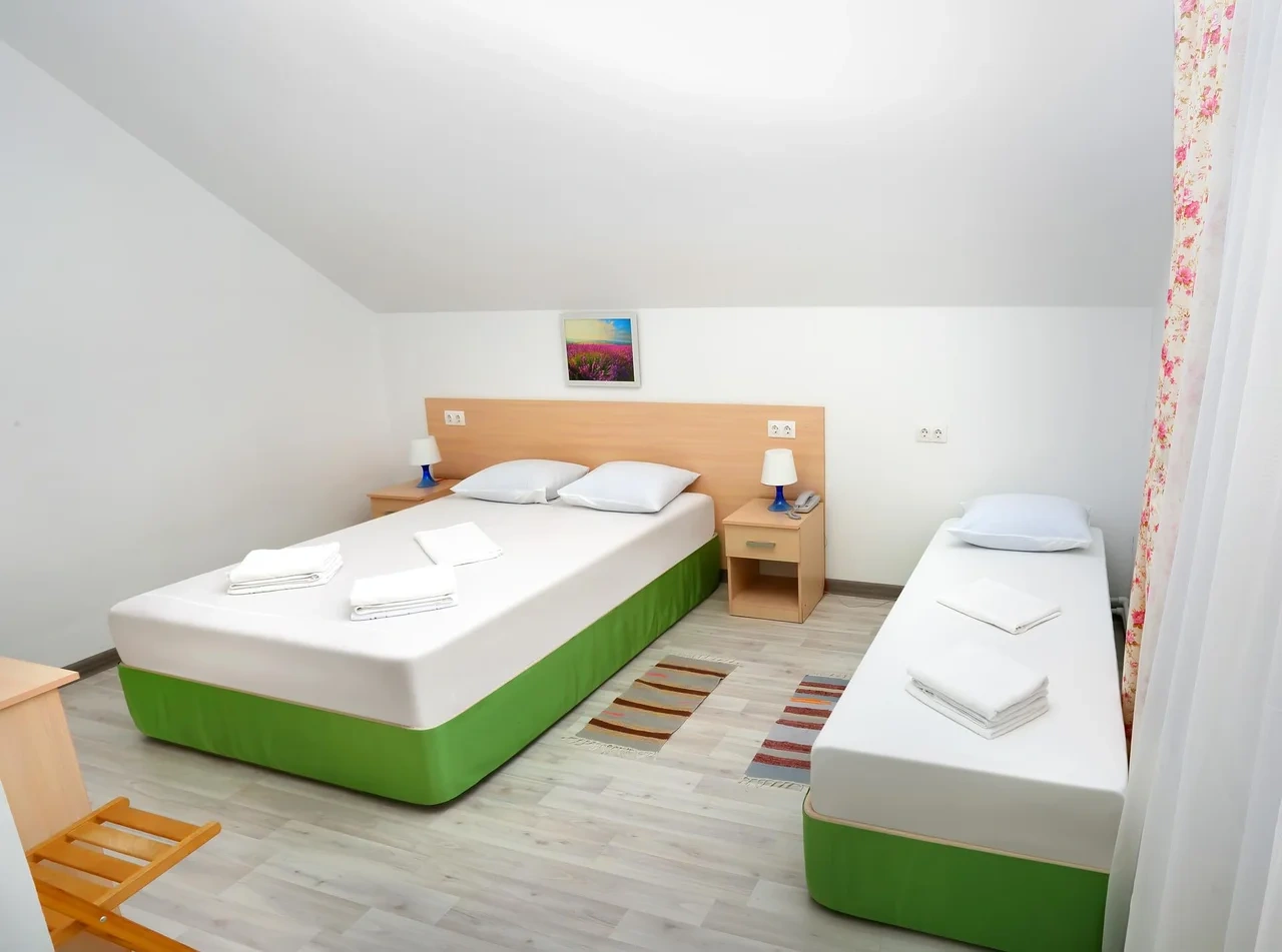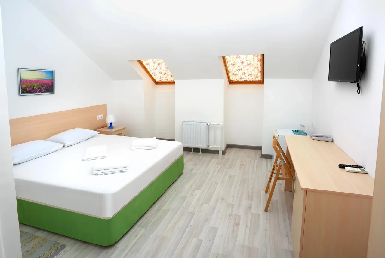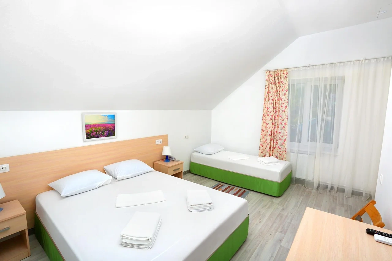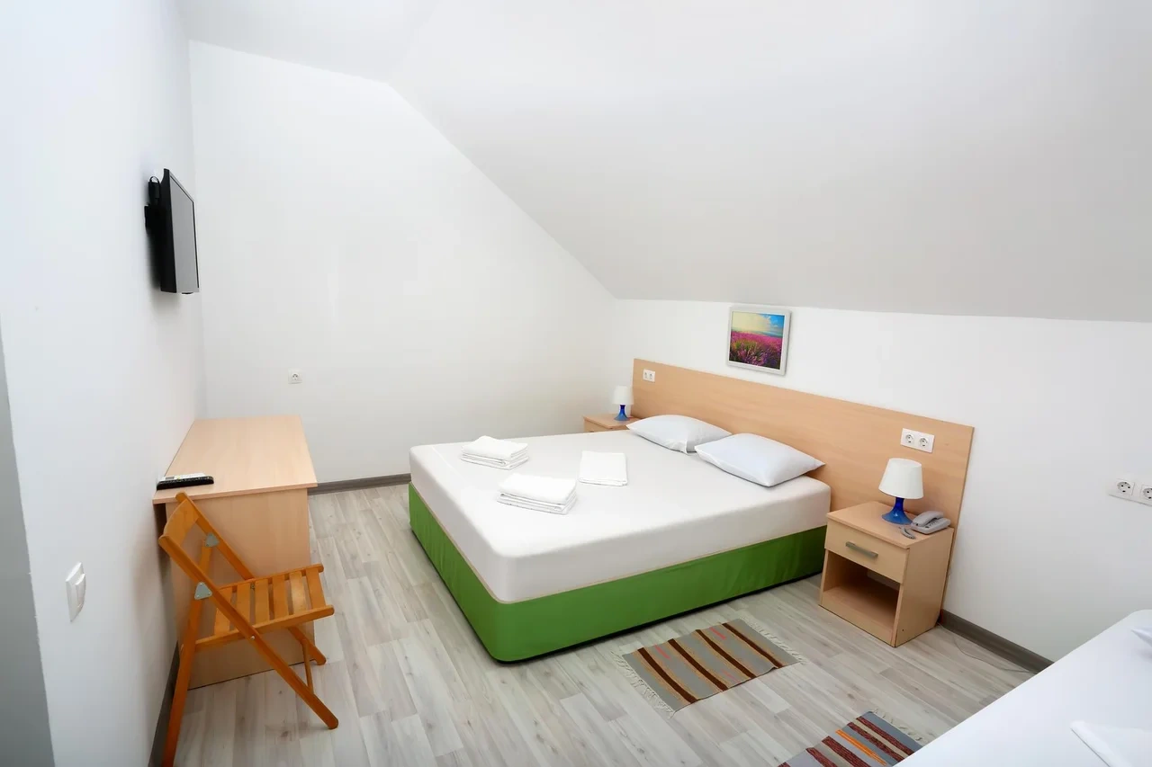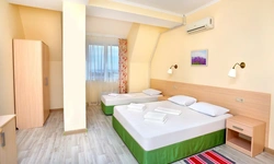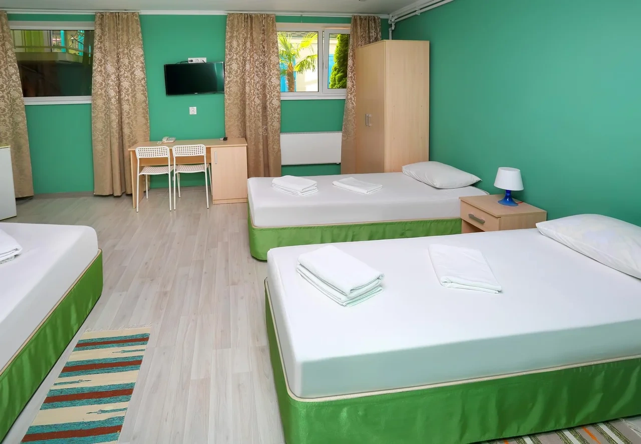 Отдыхали семьёй, 2 взрослых и 2 детей с 01.09.2025 по 06.09.2025. Впечатления от отеля прекрасные: номер двухкомнатный комфортный, 4-х местный с балконом. Номер чистый, вид с балкона шикарный на море и горы. На балконе есть столик и стулья, есть возможность провести отлично вечер. В номере 2 кондиционера, холодильник. На территории отличная столовая, очень вкусная еда. До моря минут 15-20 неспешным шагом, дорога к морю через рынок, в принципе нас не напрягала, ходили по 2 раза в день к морю и обратно, магазин Магнит в шаговой доступности. У отеля есть своя парковка за отдельную плату. На территории строят бассейн, планируют ввести в эксплуатацию в следующем году Рекомендую данный отель. По возможности проведем отпуск в данном отеле в следующем году.