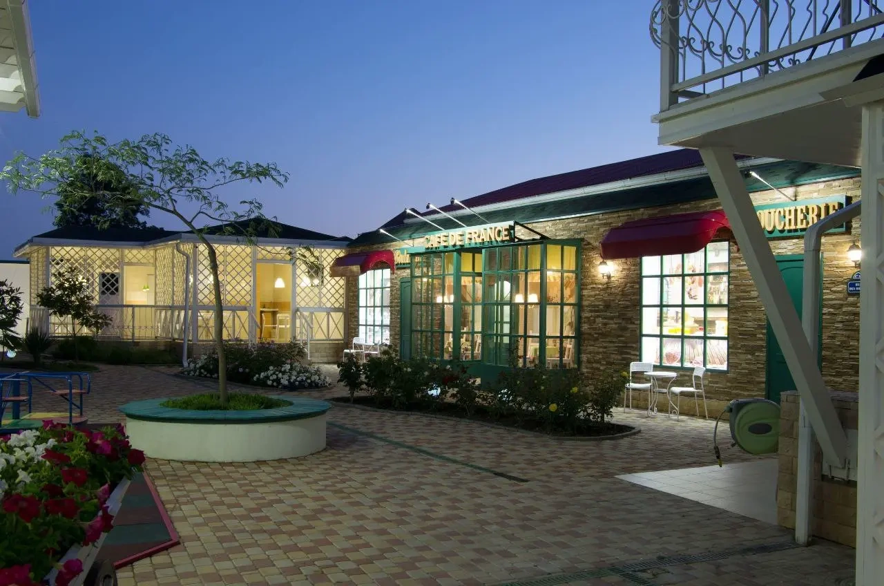 Останавливались в данном отеле на неделю. Отель соответствует всем фото на различных сервисах. Очень ухоженная и красивая территория в стиле прованс. Номер был 4 х местный с балконом на 3 этаже. Номер большой,все необходимое есть. Номер очень чистый,белье свежее,белое. На территории отеля есть столовая,меню не большое,но все свежее и вкусное(супы 120 руб.,пюре,рис,греча 90 руб.,вкусная выпечка 50 руб. и т.д......) Есть кафе лимонады по 180 руб, венские вафли от 180 руб.. в зависимости от наполнения(пекутся там же).Также есть помещения для самостоятельной готовки. Детская площадка большая,целый игровой комплекс,горка и 2 карусели. До моря мин 30 пешком вдоль реки ,через мост. С детьми тяжеловато,мы ездили на авто(стоянка есть,но платная 150 р. сутки). На ресепшене милая и отзывчивая девушка Ангелина,всегда на связи,все расскажет,покажет. Большое спасибо ей))