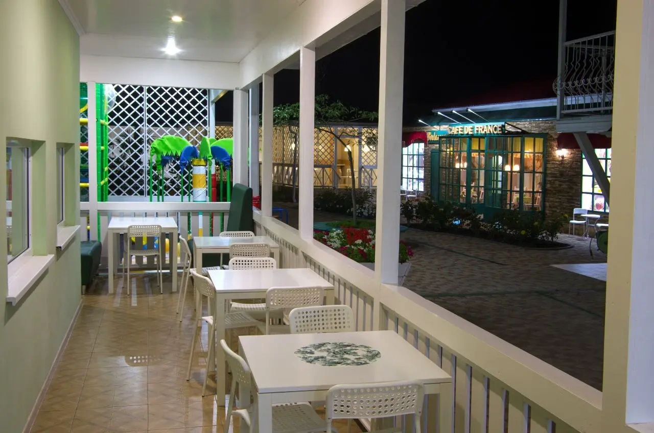 Прекрасный гостевой дом, красивая ухоженная территория. Для детей площадка, есть игрушки. По вечерам была детская анимация.Смена белья, полотенец и уборка в номере проводилась регулярно. На территории есть столовая. Также общая кухня, где можно готовить самостоятельно. Мангальная зона обустроена всем необходимым. По вечерам была детская анимация. В шаговой доступности магазины. Дорога к морю занимала минут 15. Персонал отличный. Нам всё очень понравилось.