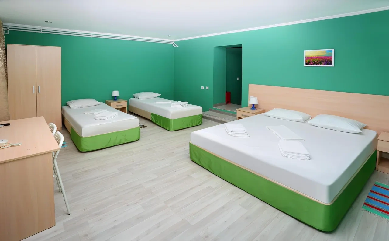 Доступность хорошая, на территории есть столовая (еда правда там однообразная, но свежая), разбит красивый мини - парк на территории, красивый интерьер внутреннего дворика, детская площадка, большая общая кухня, постель меняют каждые 3 дня.