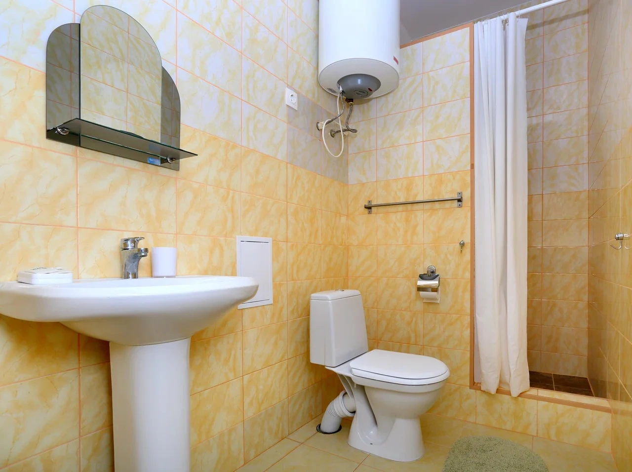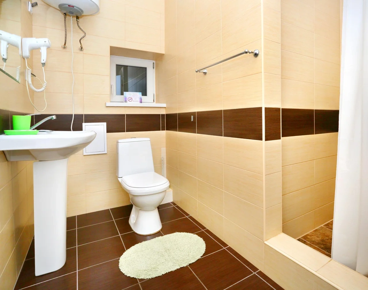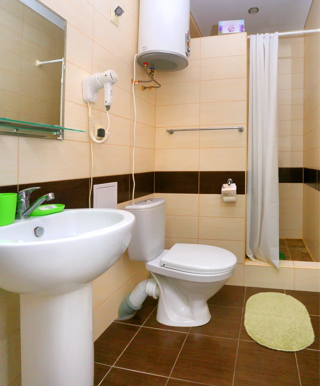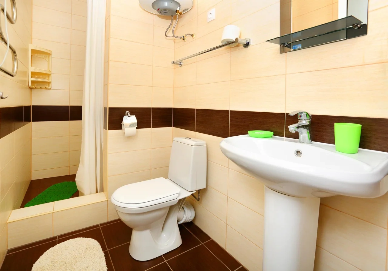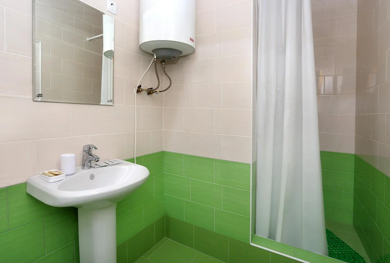 В номерах бойлер. Может вечером закончится горячая вода, если в номере 4 человека.